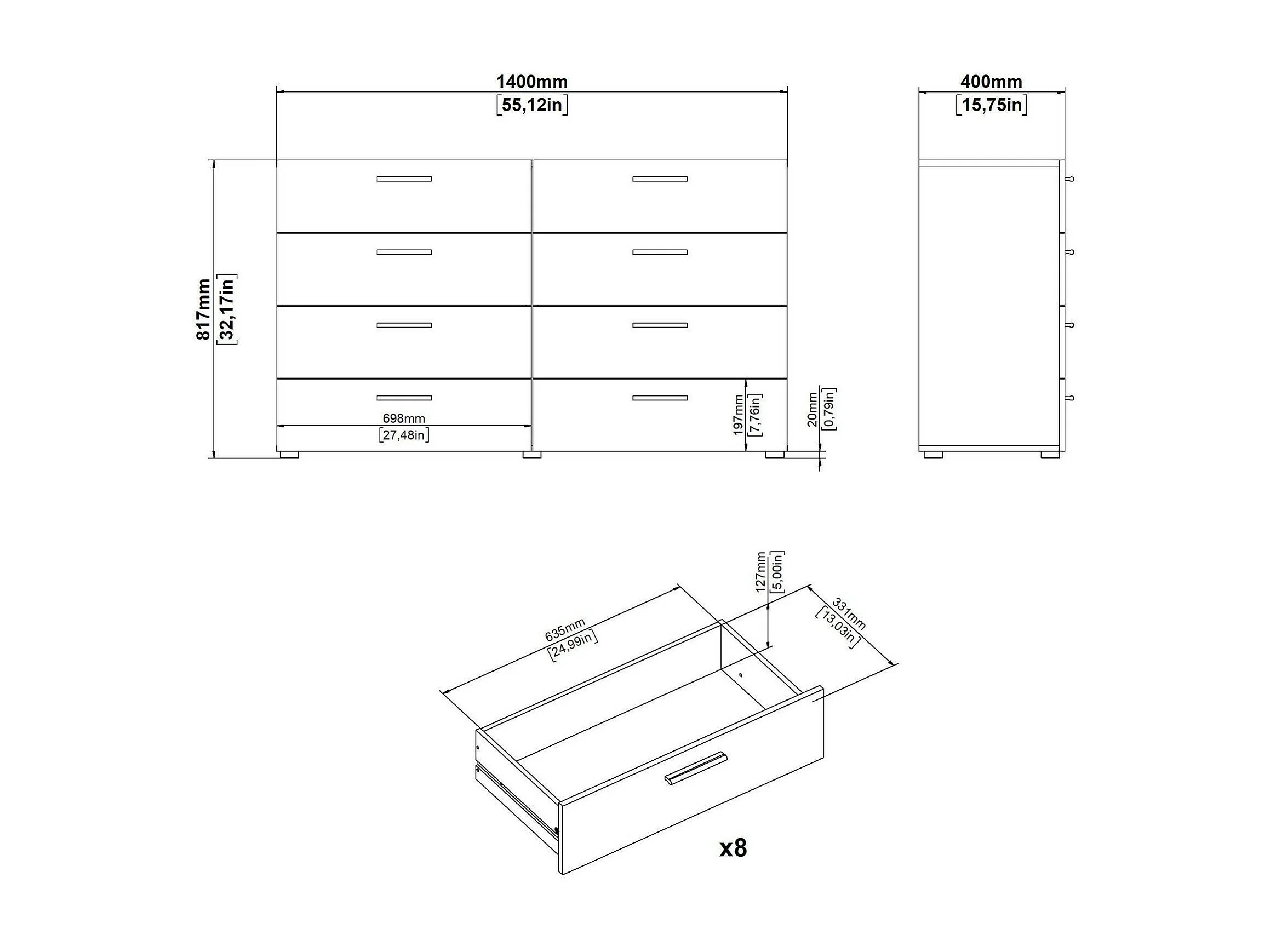 Dsattol dressoir, Woonkamerbuffet, Woonkamerdressoir, Keukenkast, 140x40 h82 cm, Eiken