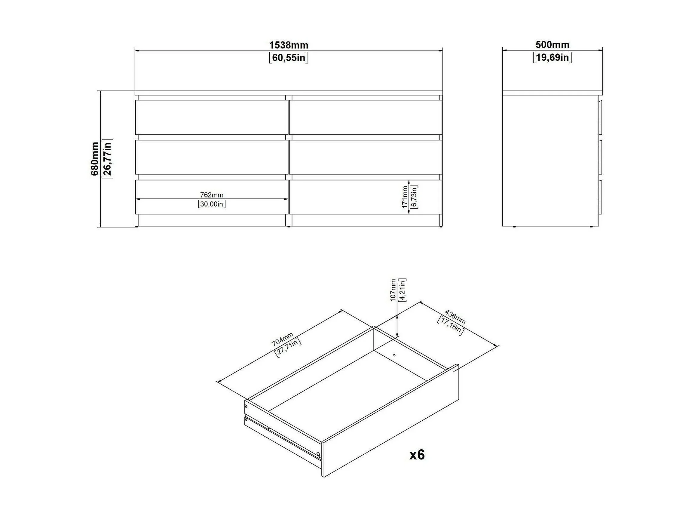Dsaurin dressoir, Woonkamerbuffet, Woonkamerdressoir, Keukenkast, 154x50 h68 cm, Wit