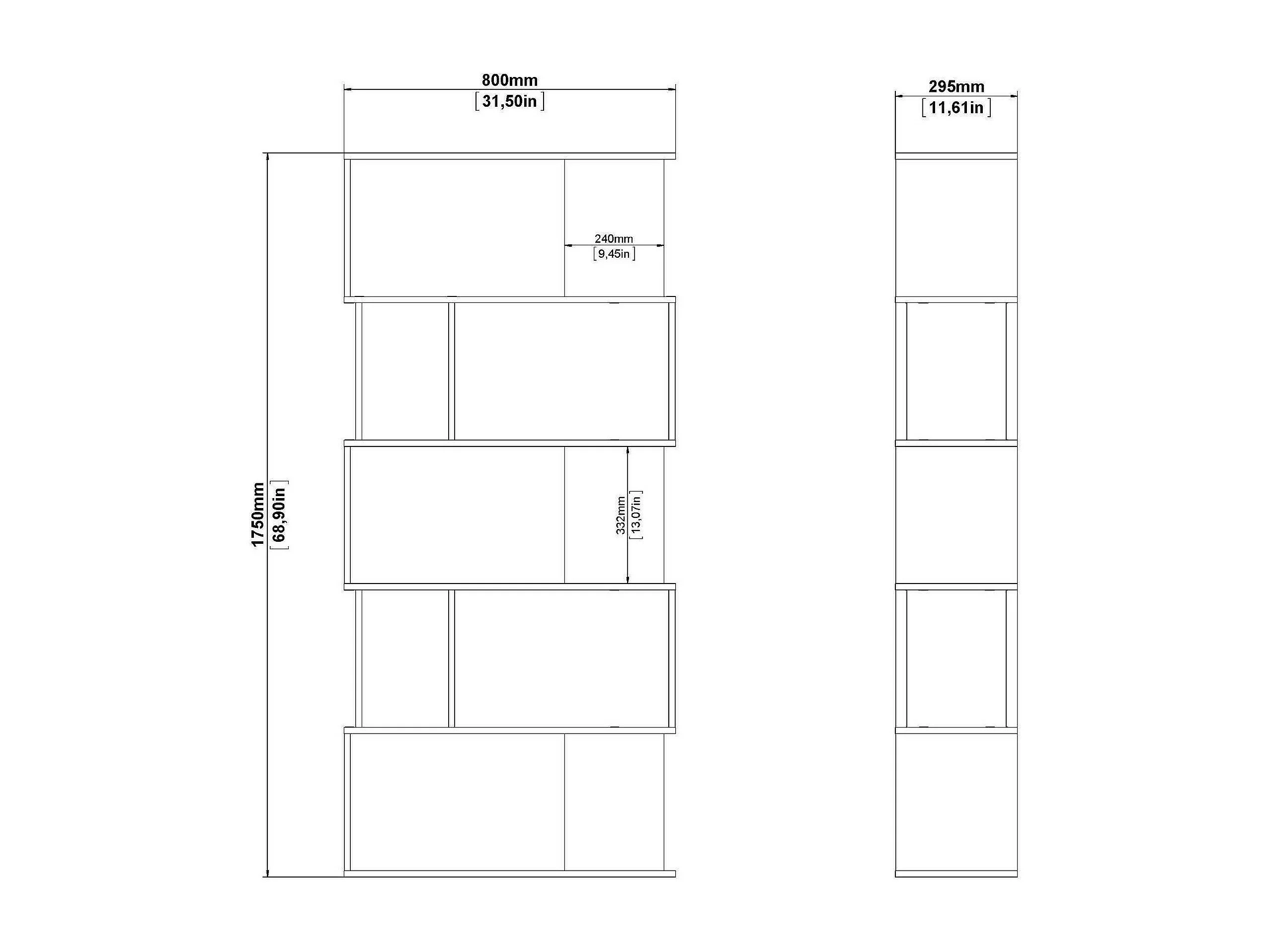 Dmora Boekenkast Lucio 25x80x192h cm Grijs 5 Planken Wandmontage, Zigzag Structuur Made in Italy