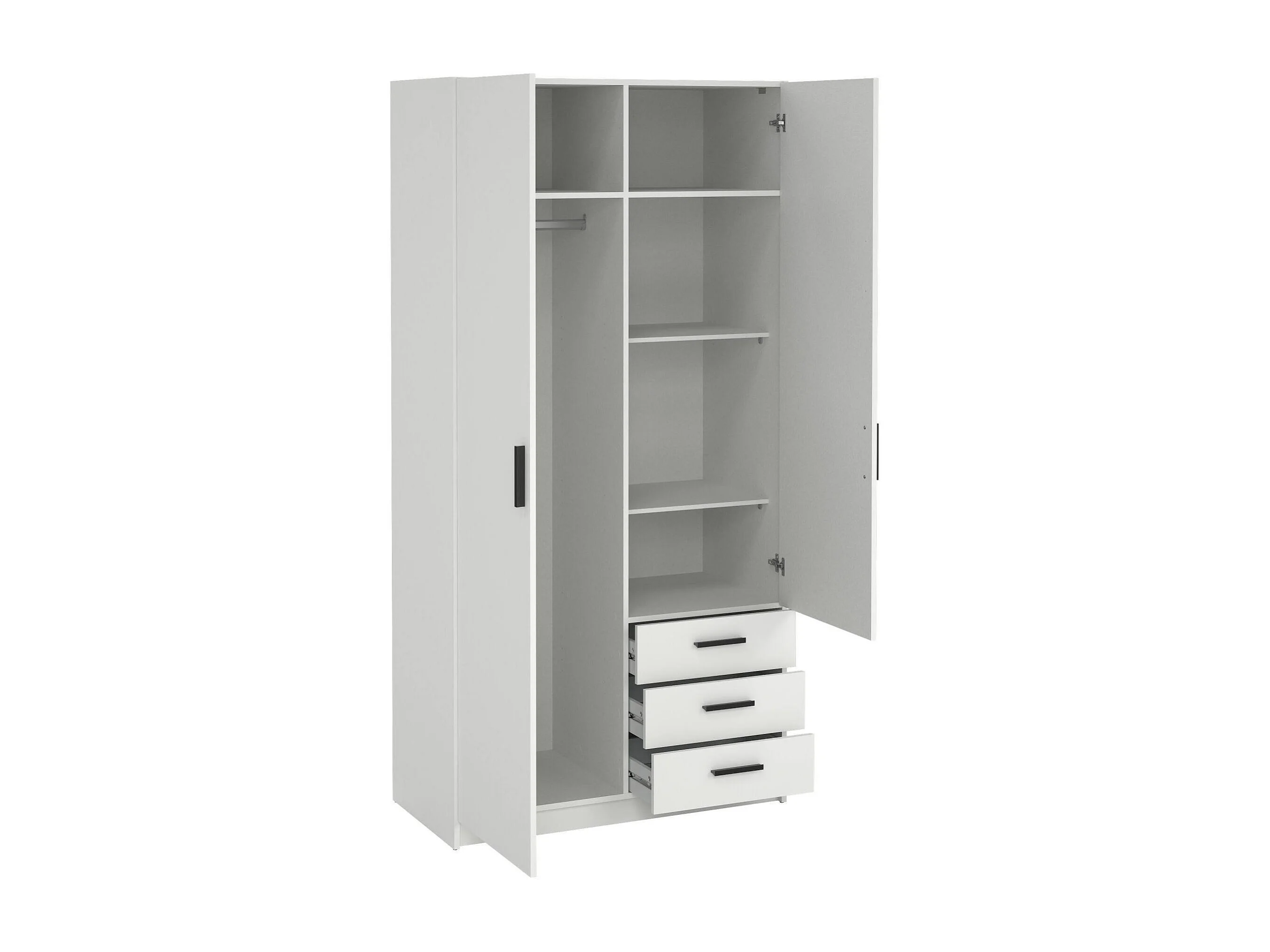 Dscopon 2-deurskast, Slaapkamermeubel, Inloopkast, Kledingkast, 99x50 h200 cm, Wit