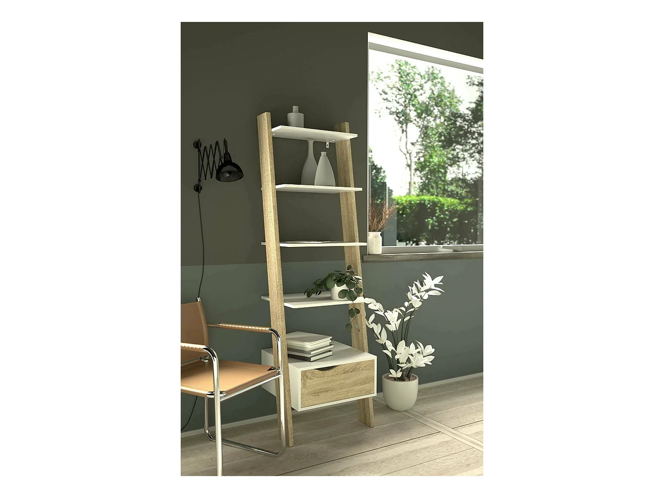 Dsol boekenkast, Kantoorplank, Boekenkast, Bibliotheek, 55x48 h180 cm, Wit en Eiken