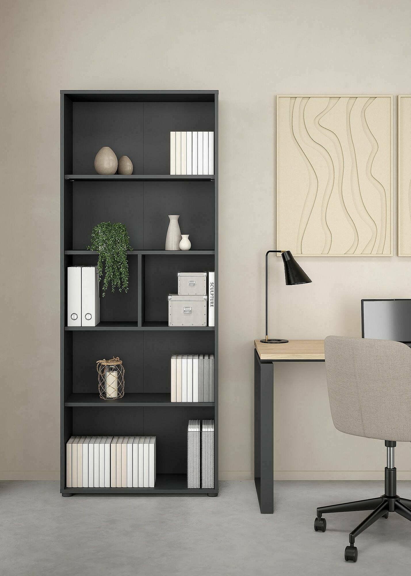 Dsori boekenkast, Kantoorplank, Boekenkast, Bibliotheek, 80x34 h124 cm, Grijs