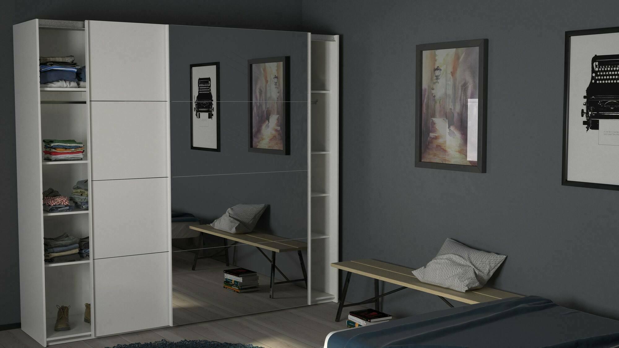Dstefan 2-deurskast, Slaapkamermeubel, Inloopkast, Kledingkast, 243x61 h220 cm, Wit