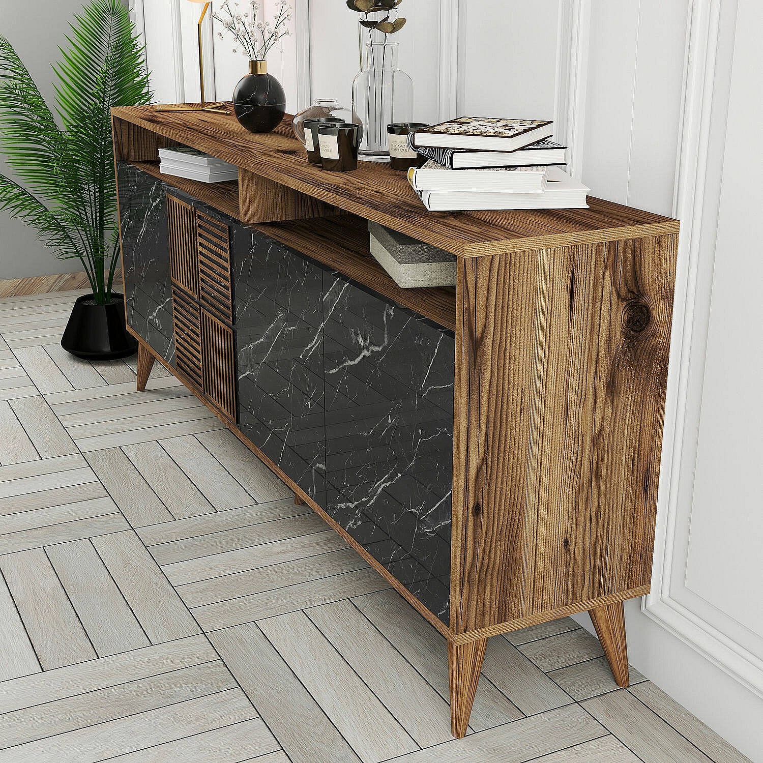 Dsavold dressoir, Woonkamerbuffet, Woonkamerdressoir, Keukenkast, 150x40 h72 cm, Zwart en Walnoot