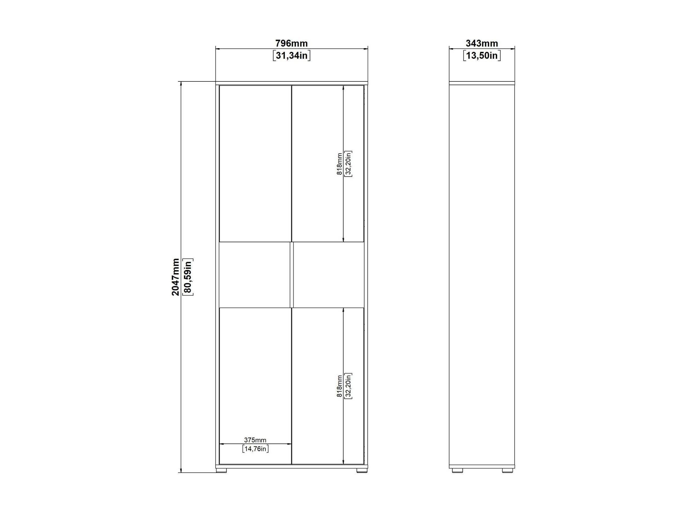 Set van 2 kinderkledingkasten 160x50x150 cm - 4 glazen deuren - met klerenhangers - verstelbare planken - wit + natuur