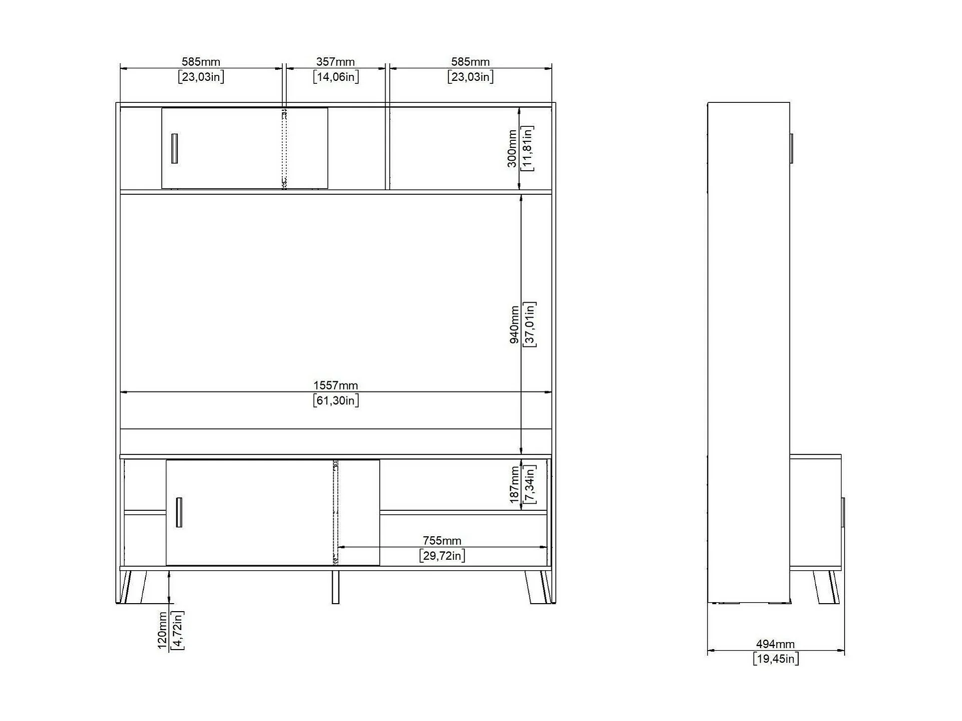 Dteston TV-meubel, Woonkamerdressoir, Lage tv-kast, Voorzien van wandbasis, 159x48 h181 cm, Eiken en Wit