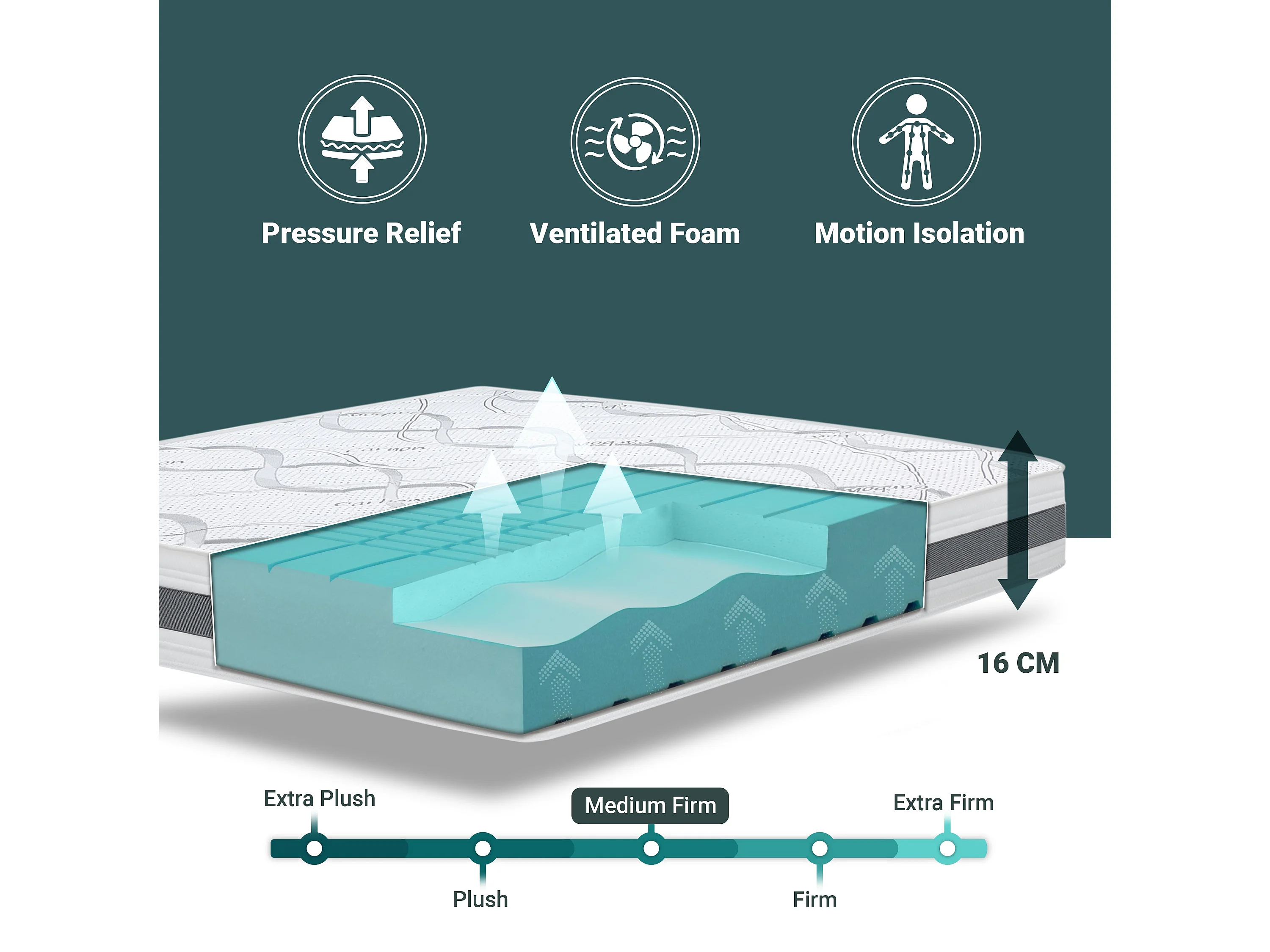 Matras 140x190 Carbon Memory Orthopedisch, antibacterieel, mijtwerend, anti-allergisch | Hoogte 16 cm | Made in Italy