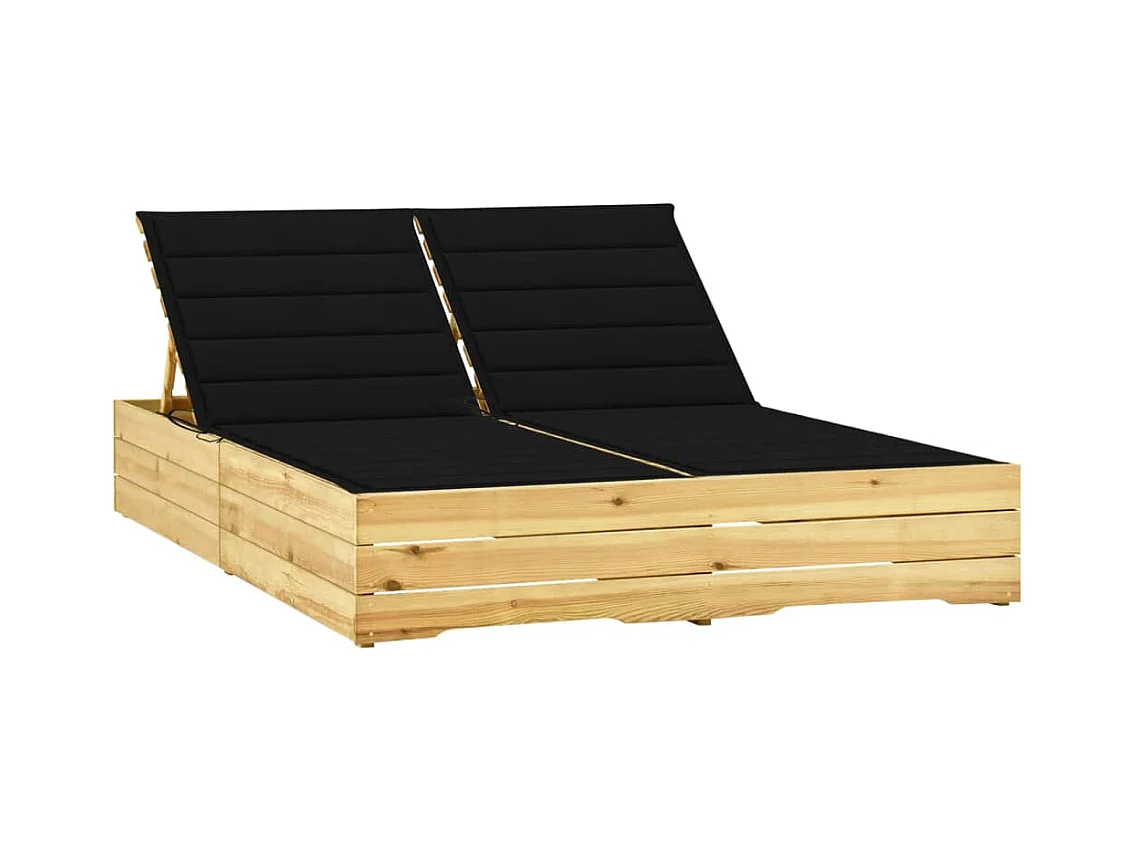 Dubbele chaise longue en kussens in zwart geïmpregneerd grenenhout