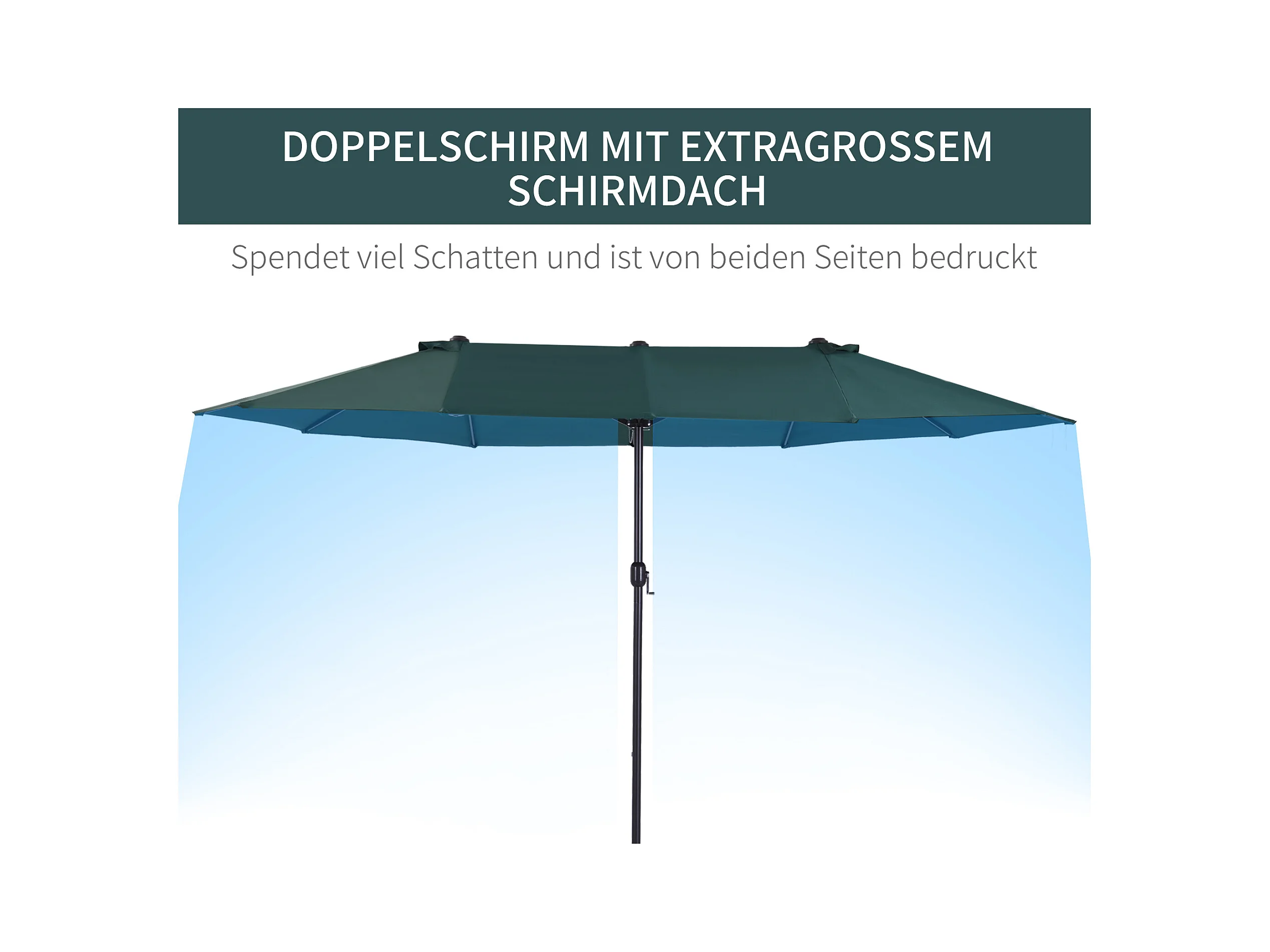 Dubbele parasol met kruisvoet, UV-bescherming, polyester, donkergroen (460x270x241 cm)