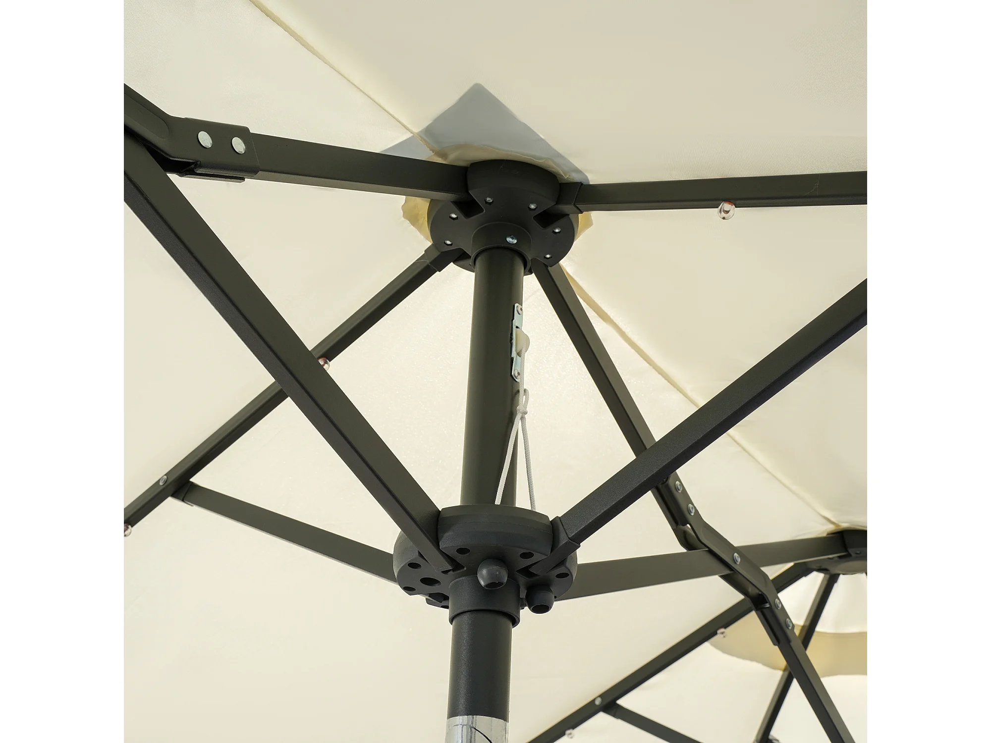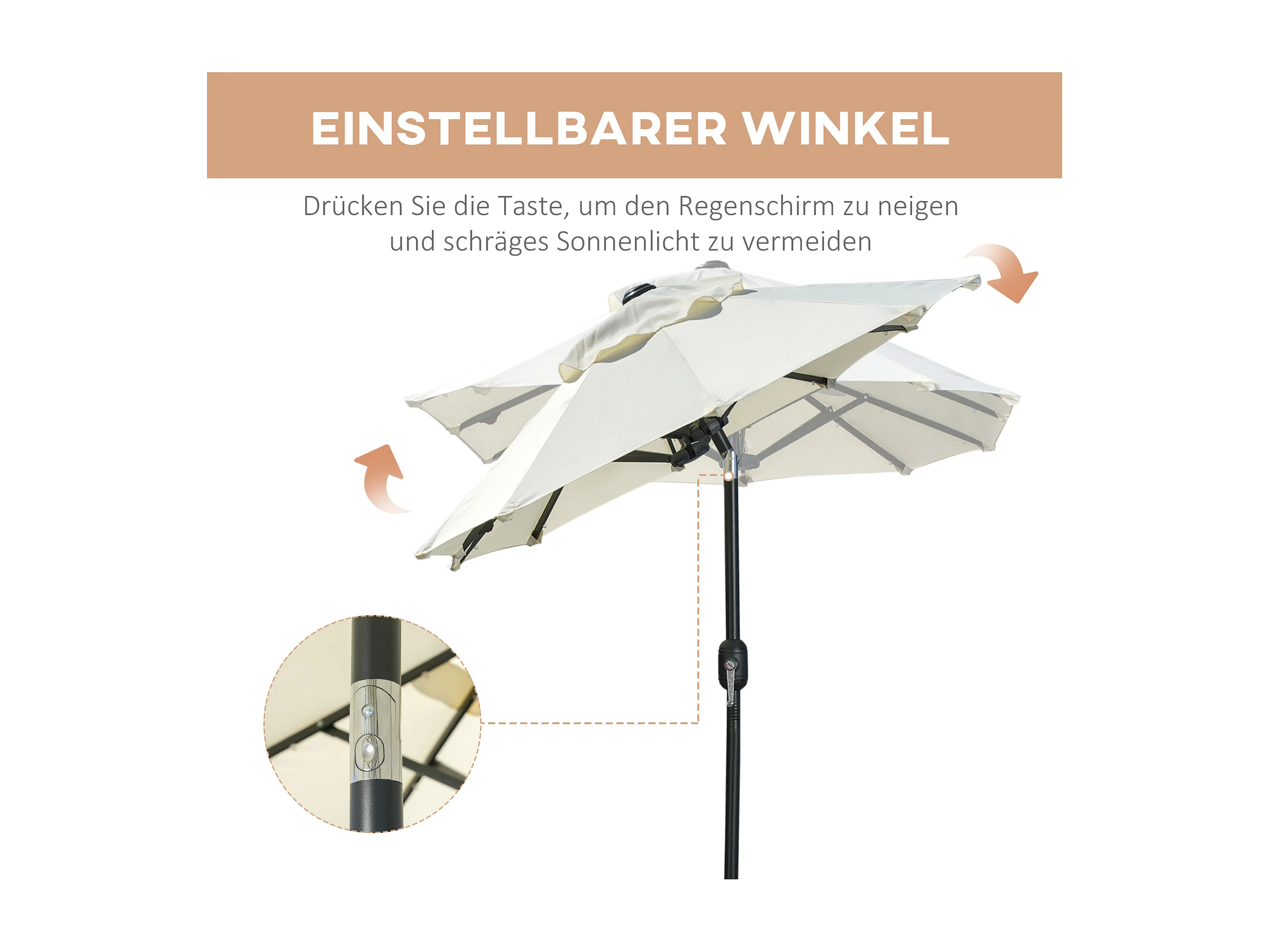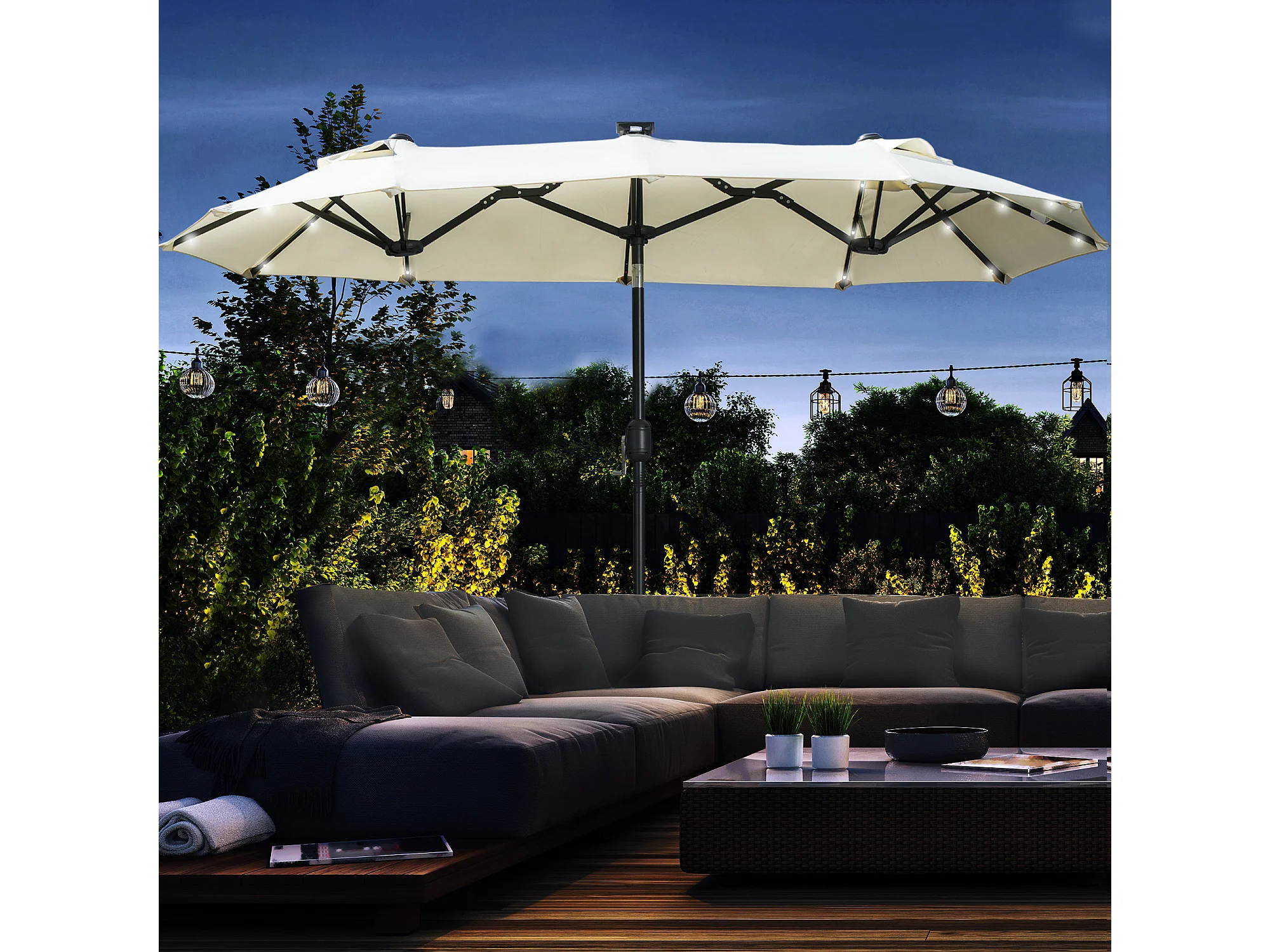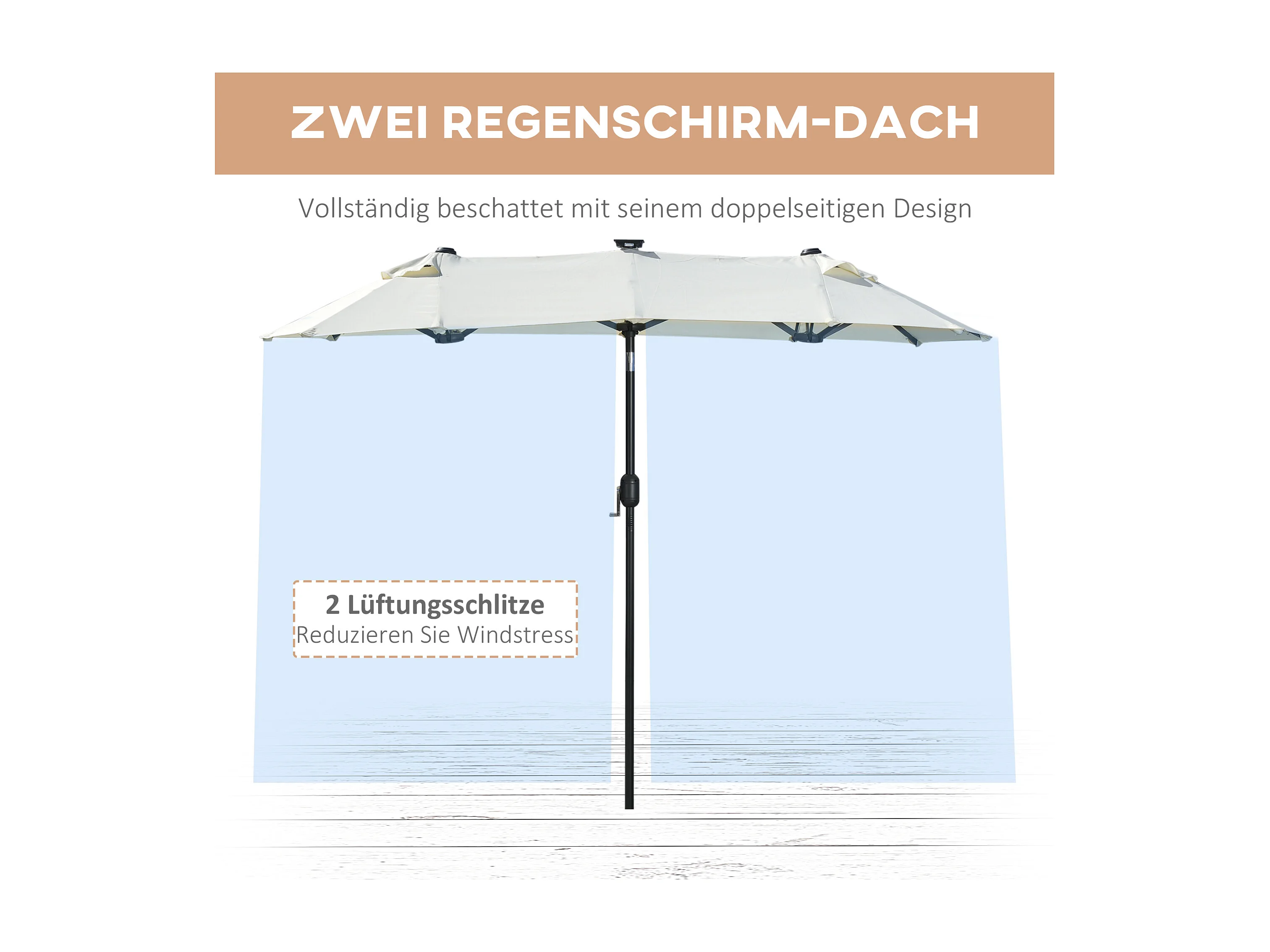 Dubbele parasol met LED en verstelbare helling, in polyester en staal, beige (292x150x218 cm)