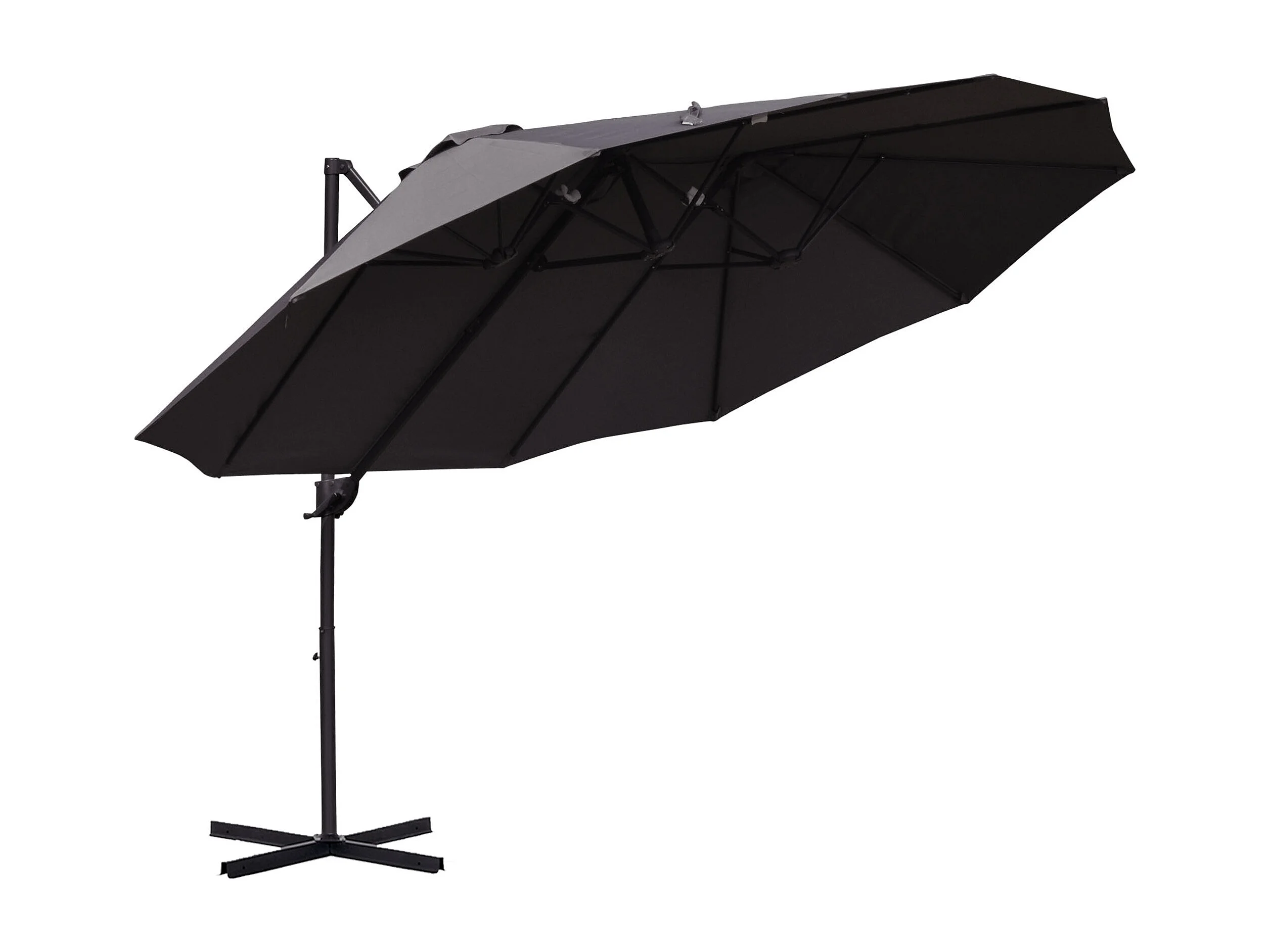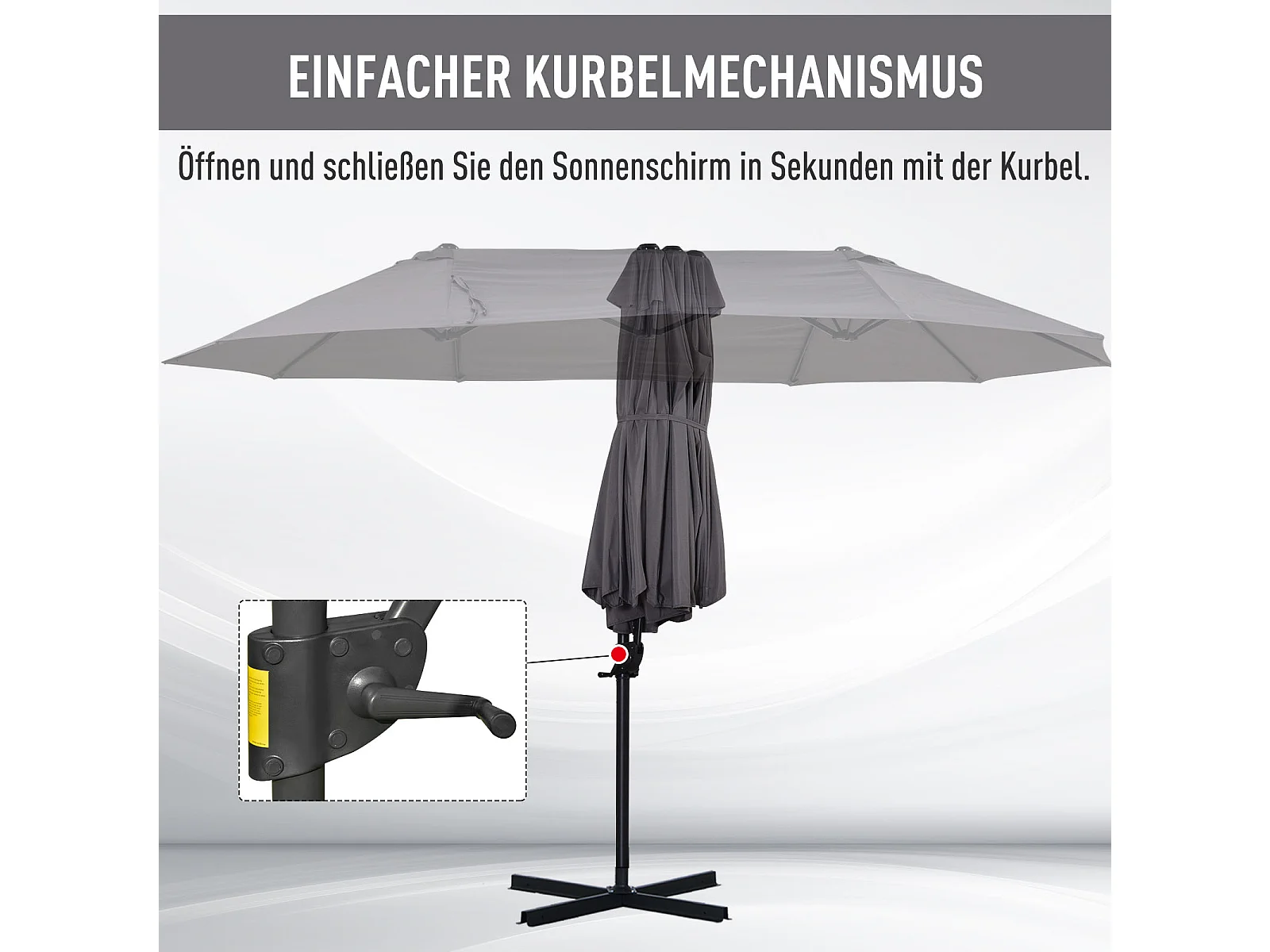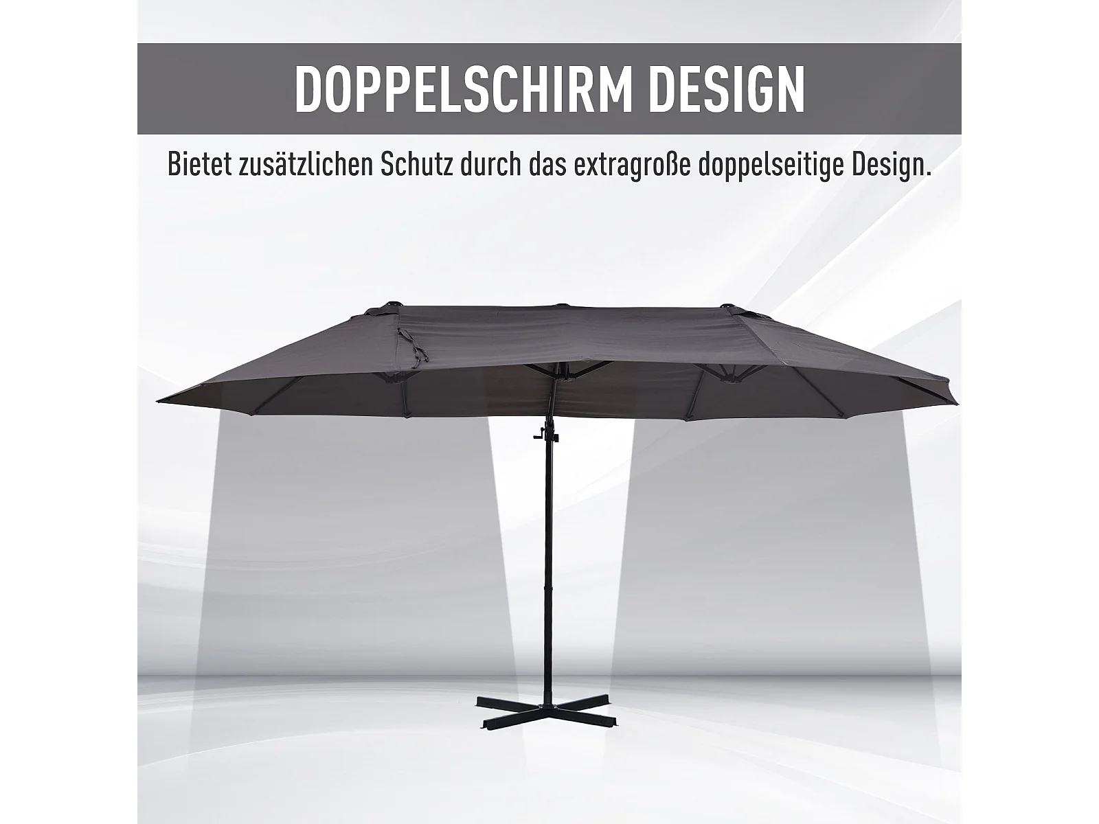 Dubbele parasol met slinger, verstelbaar, metaal, donkergrijs (440x270x250 cm)