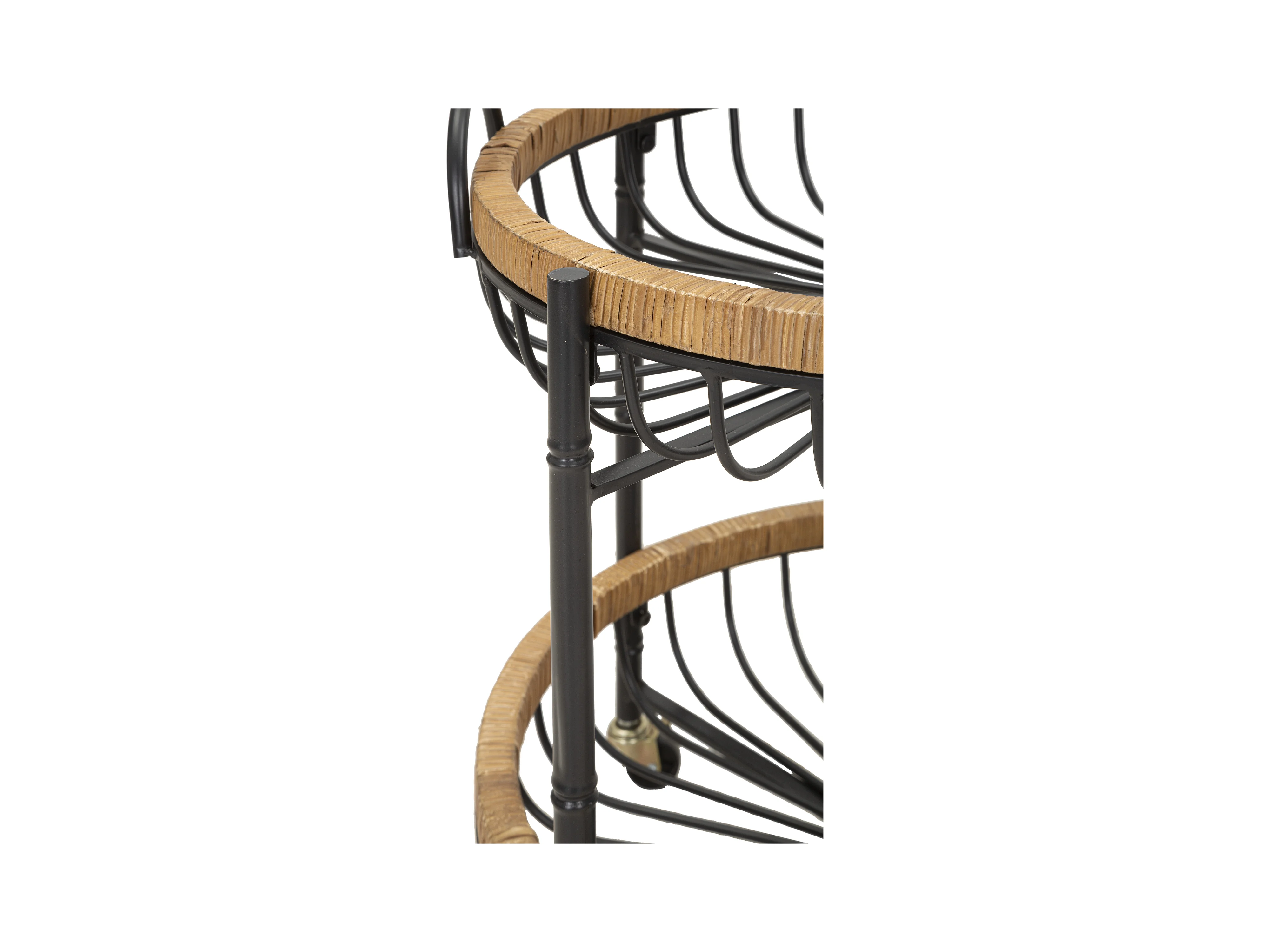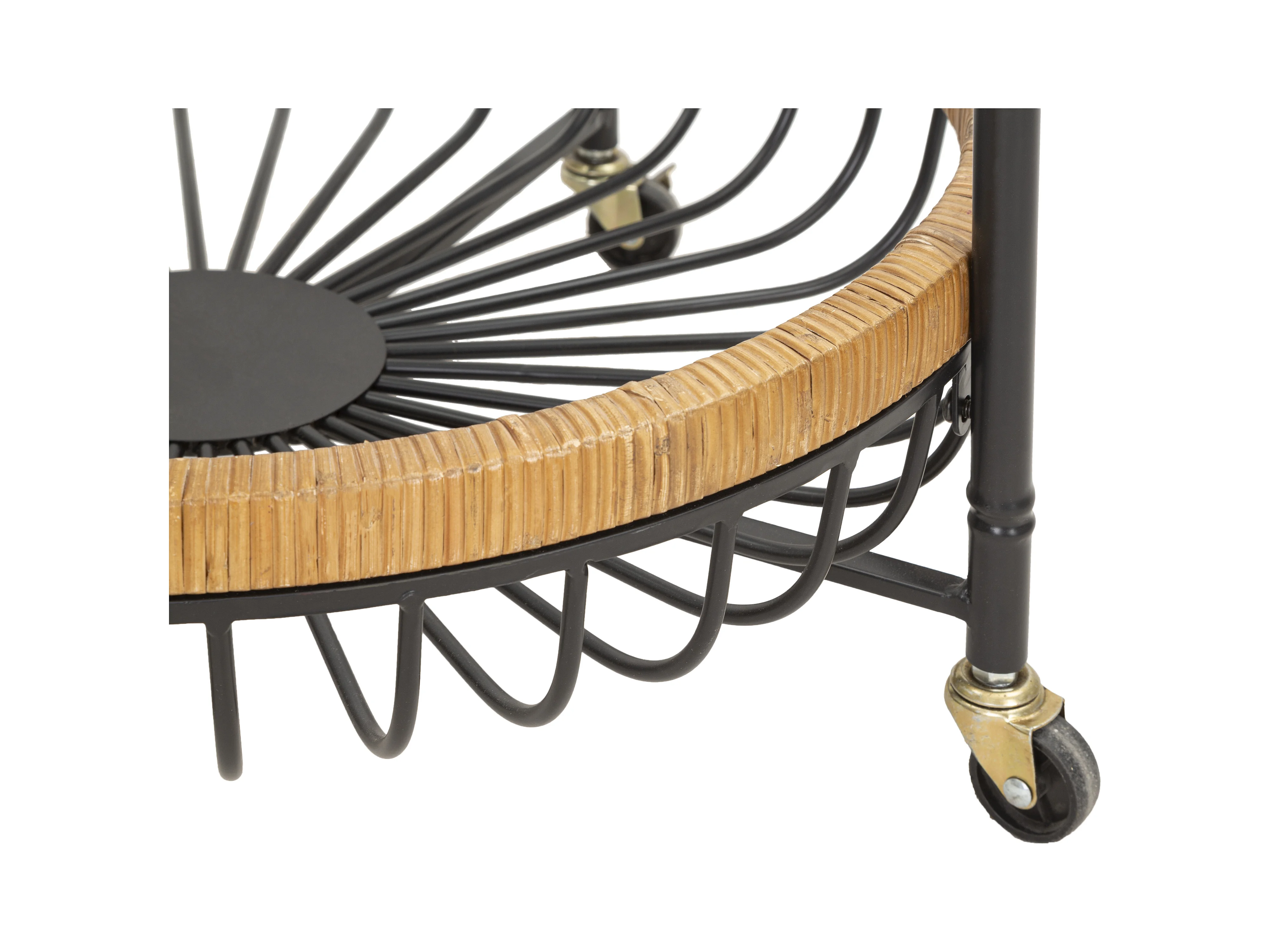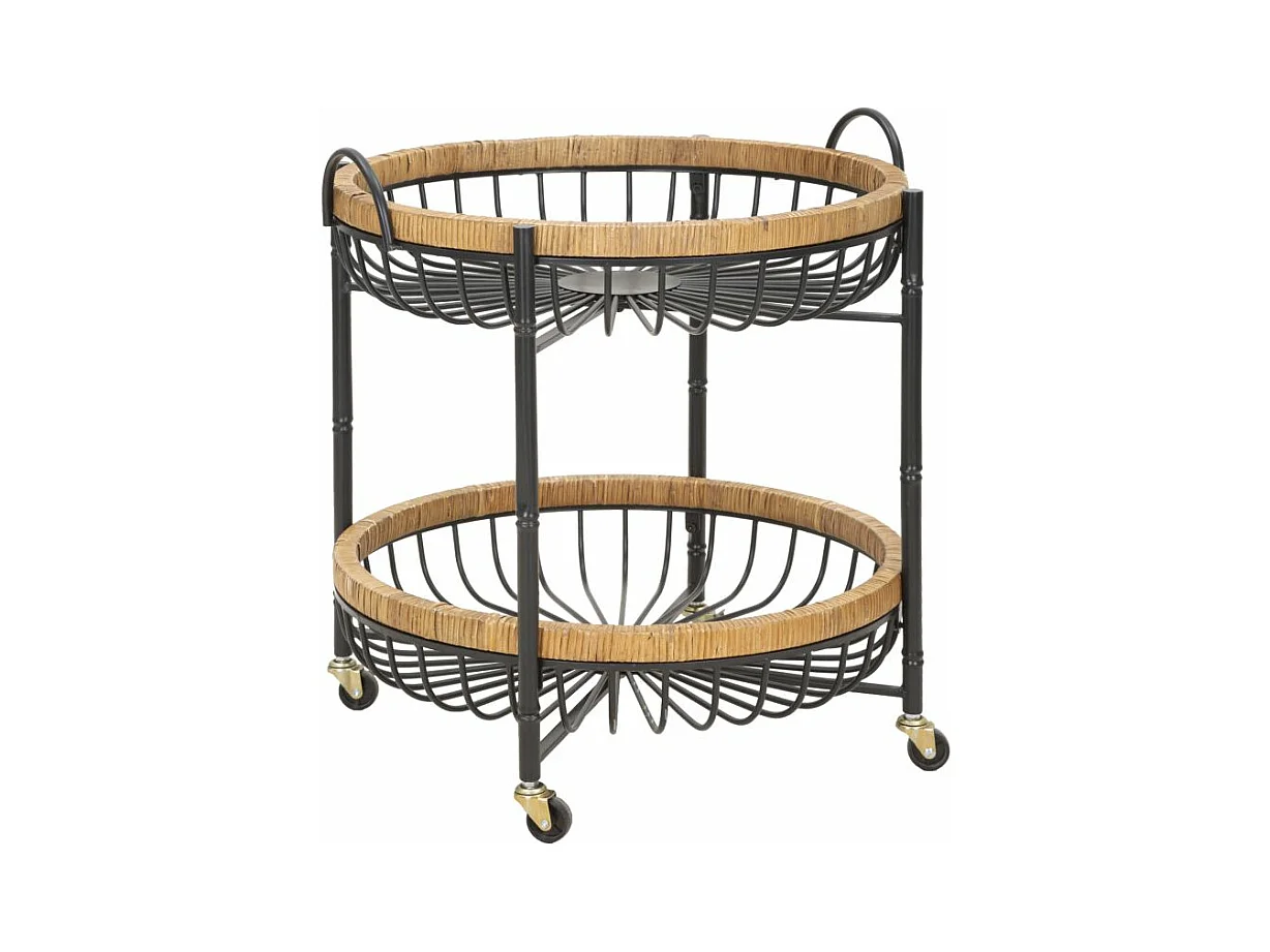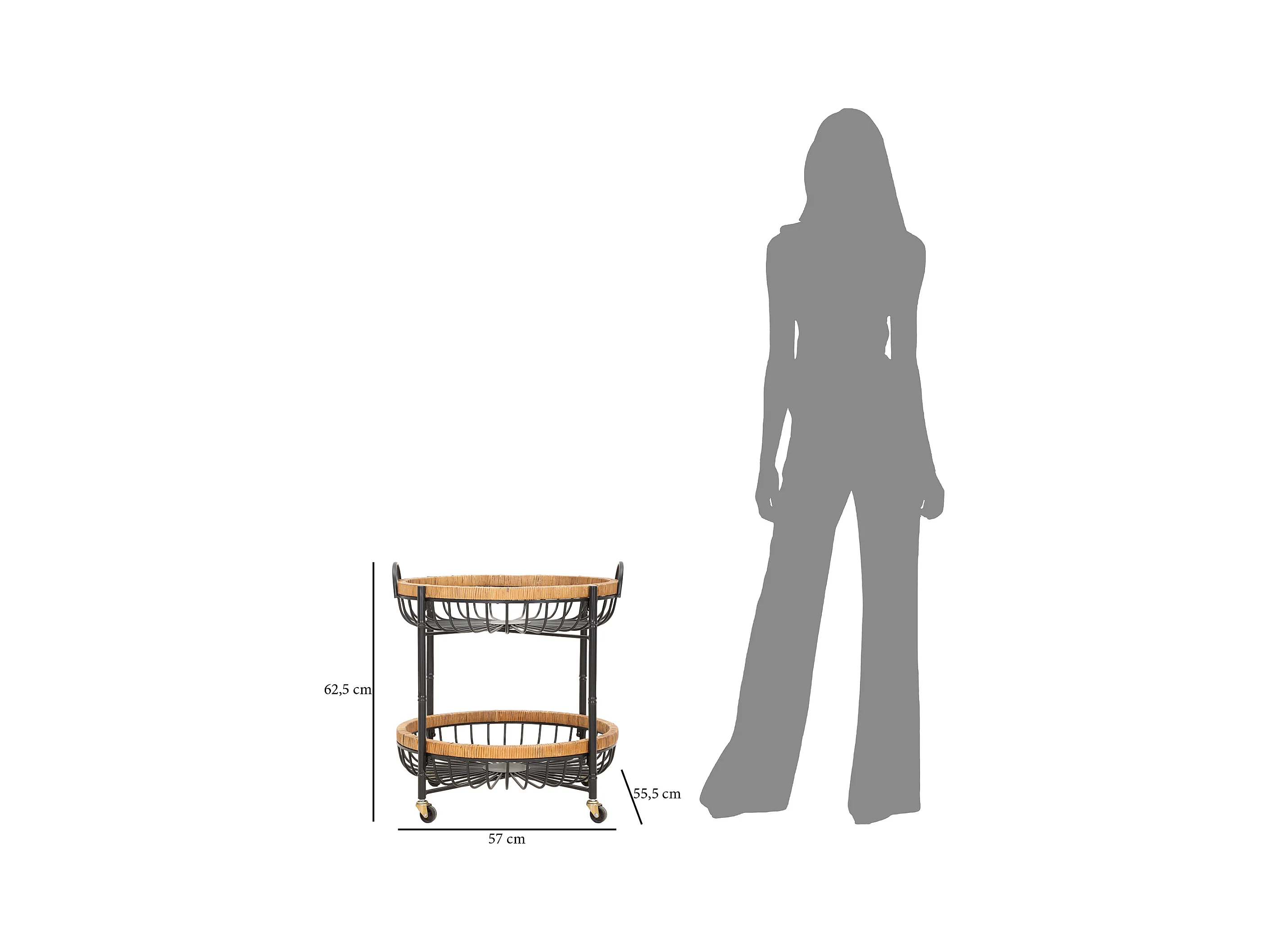 Dubbele trolley in ijzer en hout, zwart en bruin, 57x55,5x62,5 cm