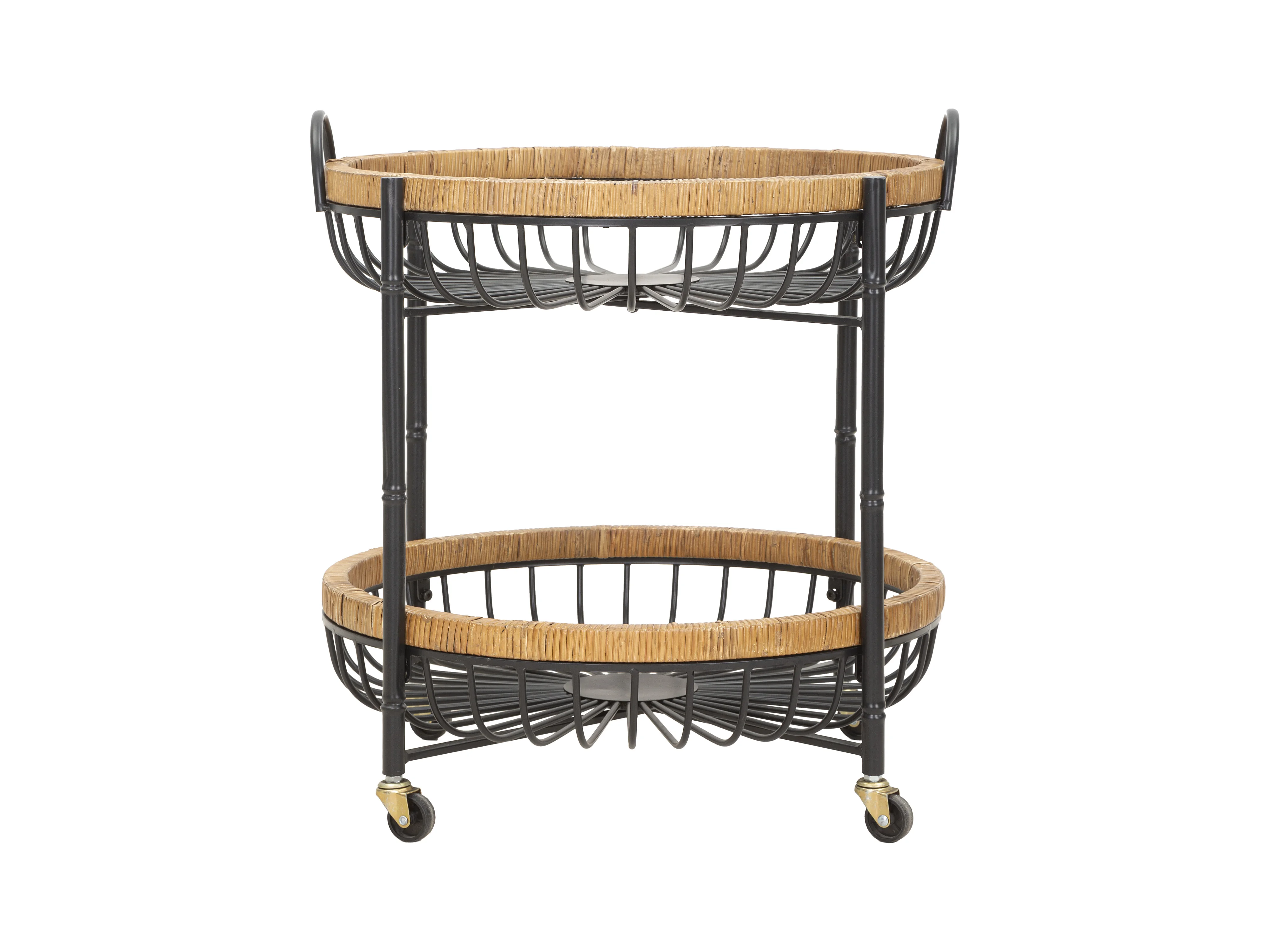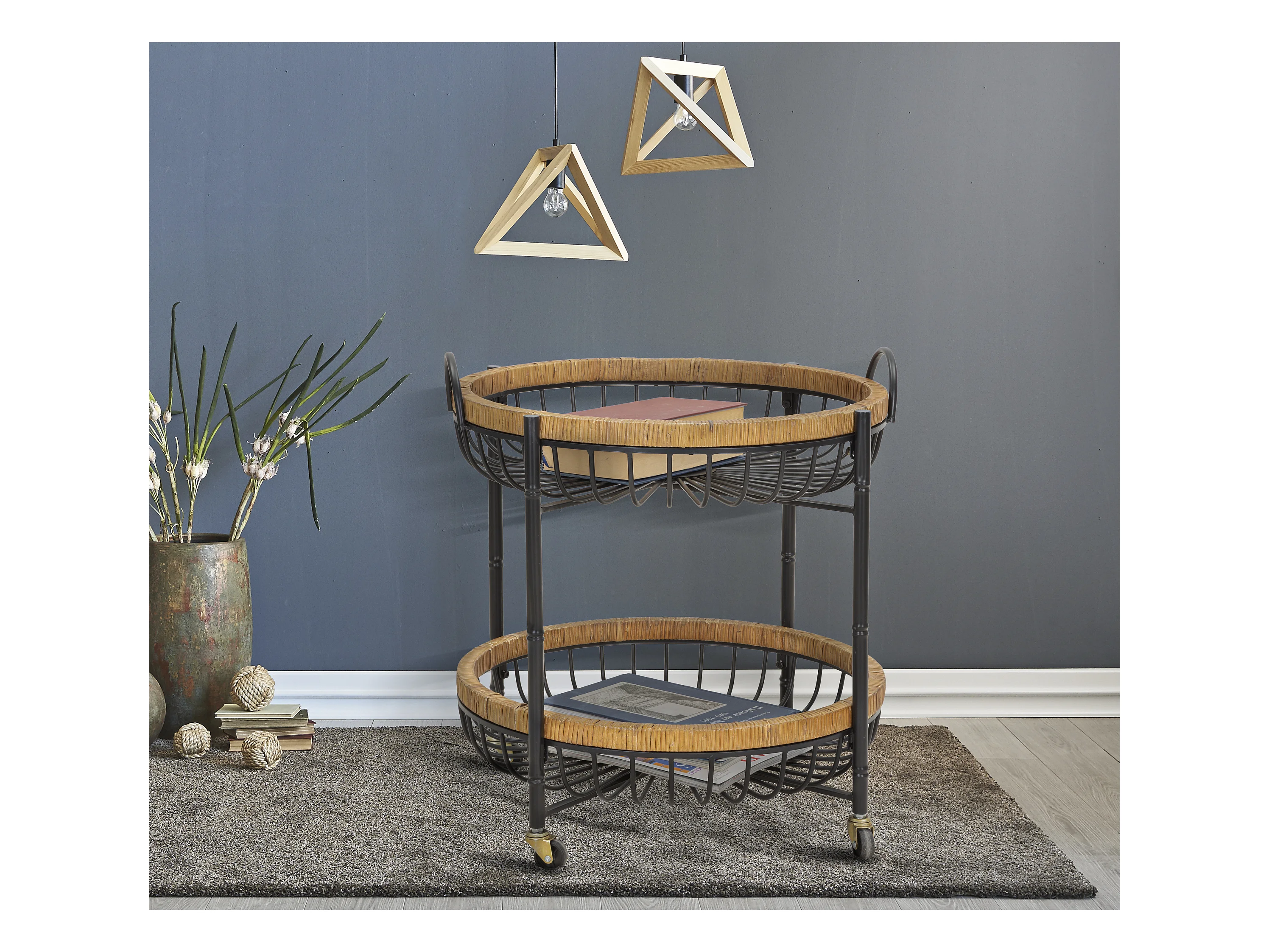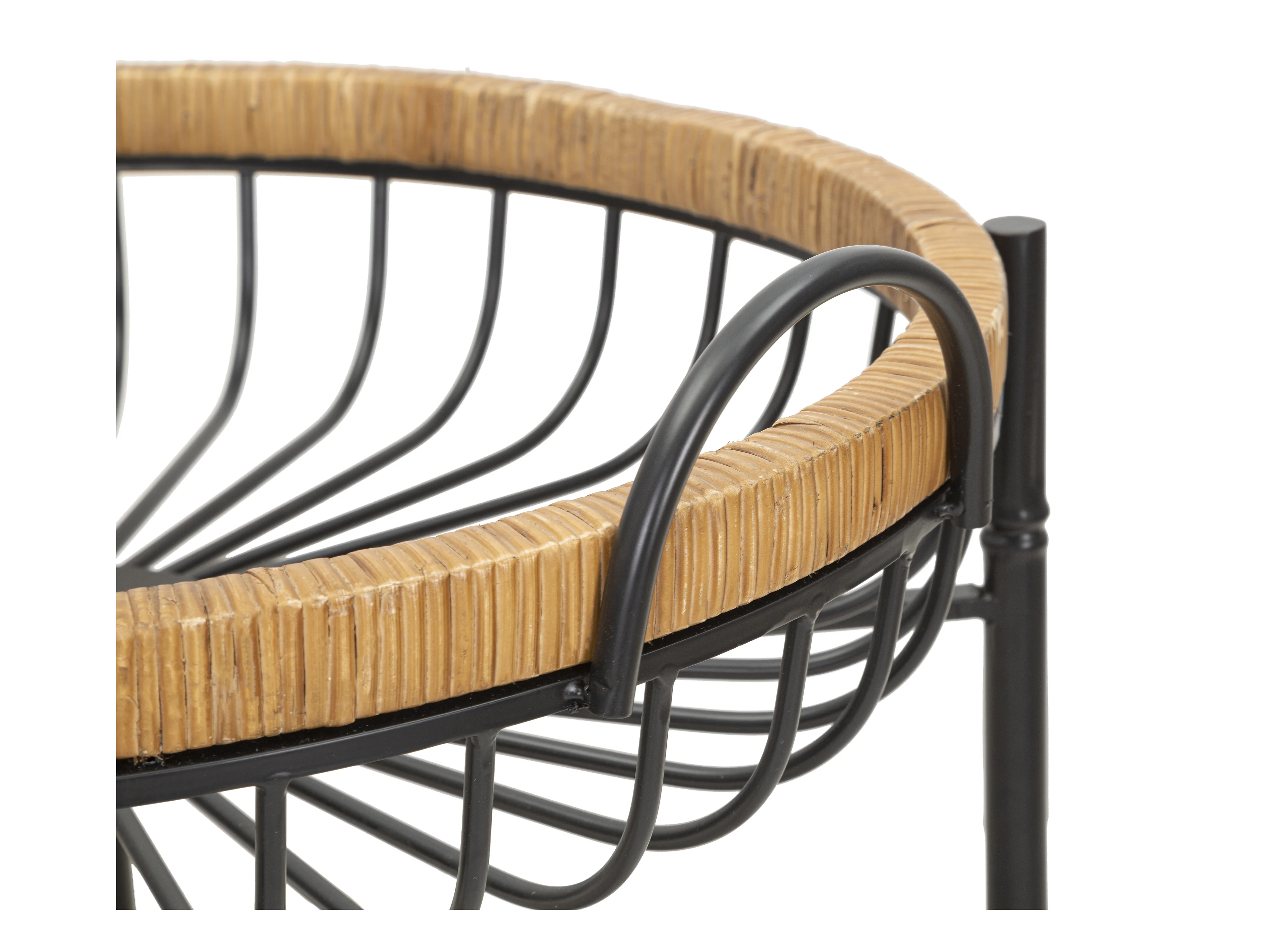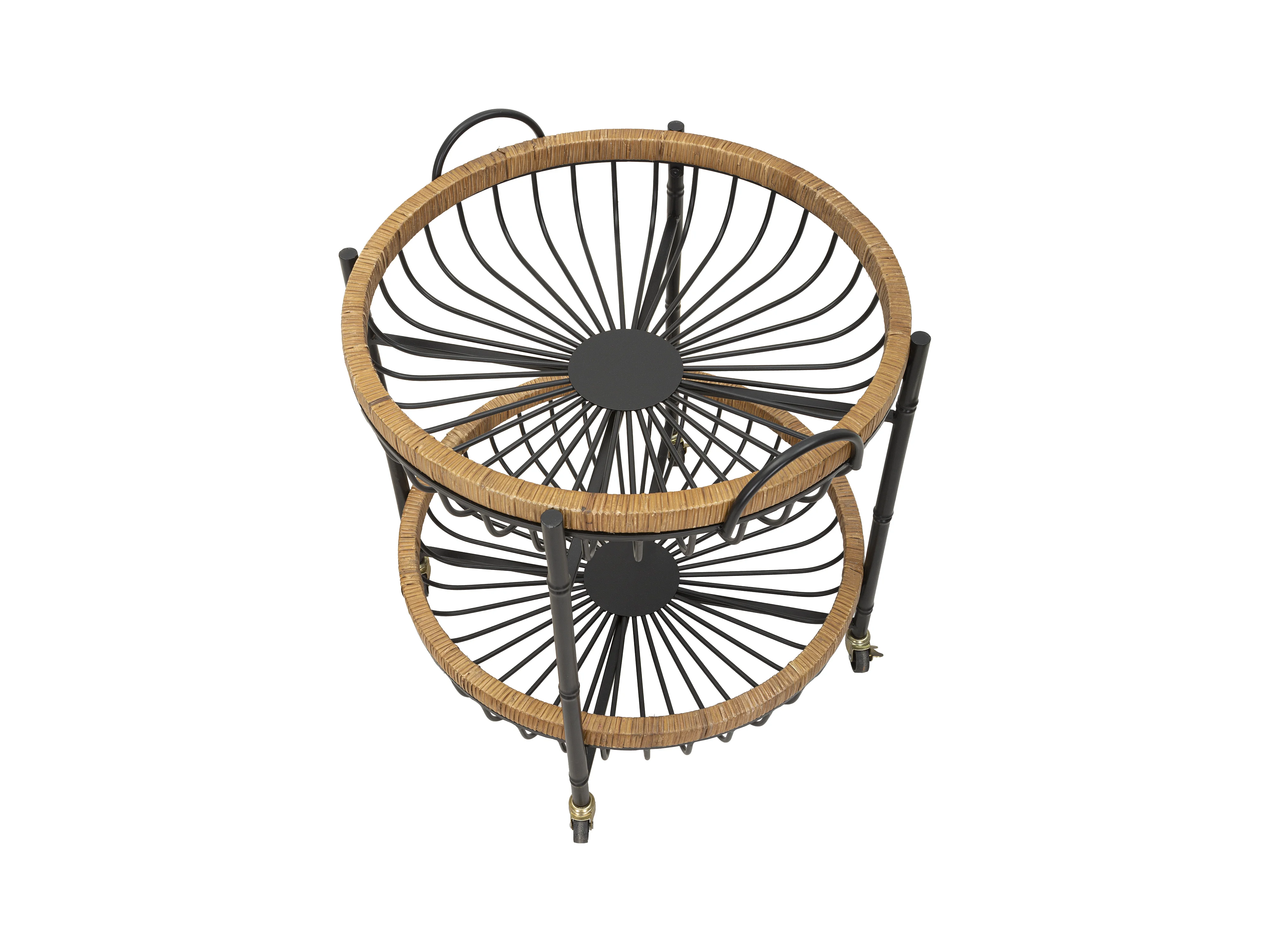 Dubbele trolley in ijzer en hout, zwart en bruin, 57x55,5x62,5 cm