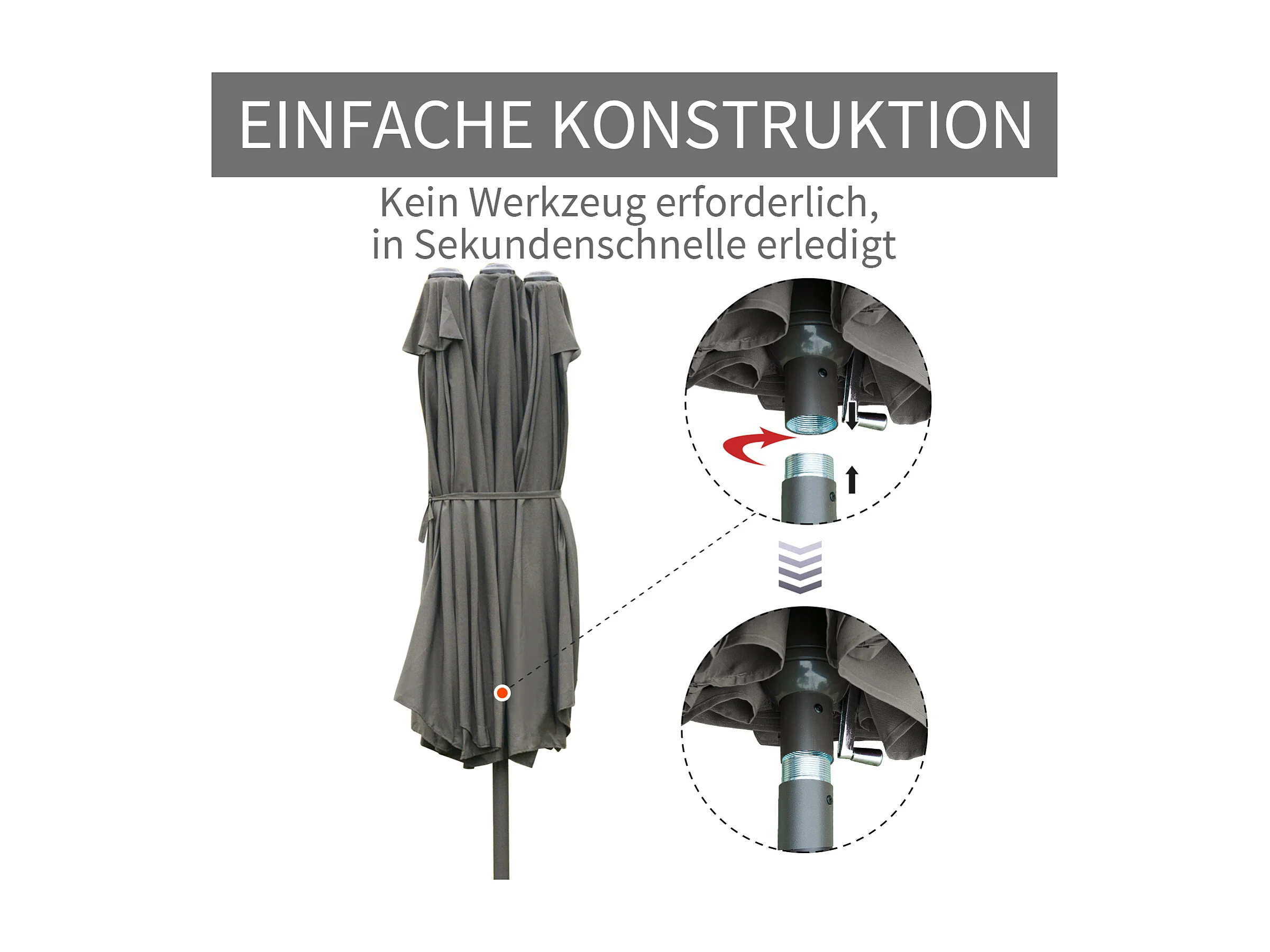 Dubbele tuinparasol met slinger, staal, donkergrijs, 460 x 270 x 240 cm (totale afmetingen)