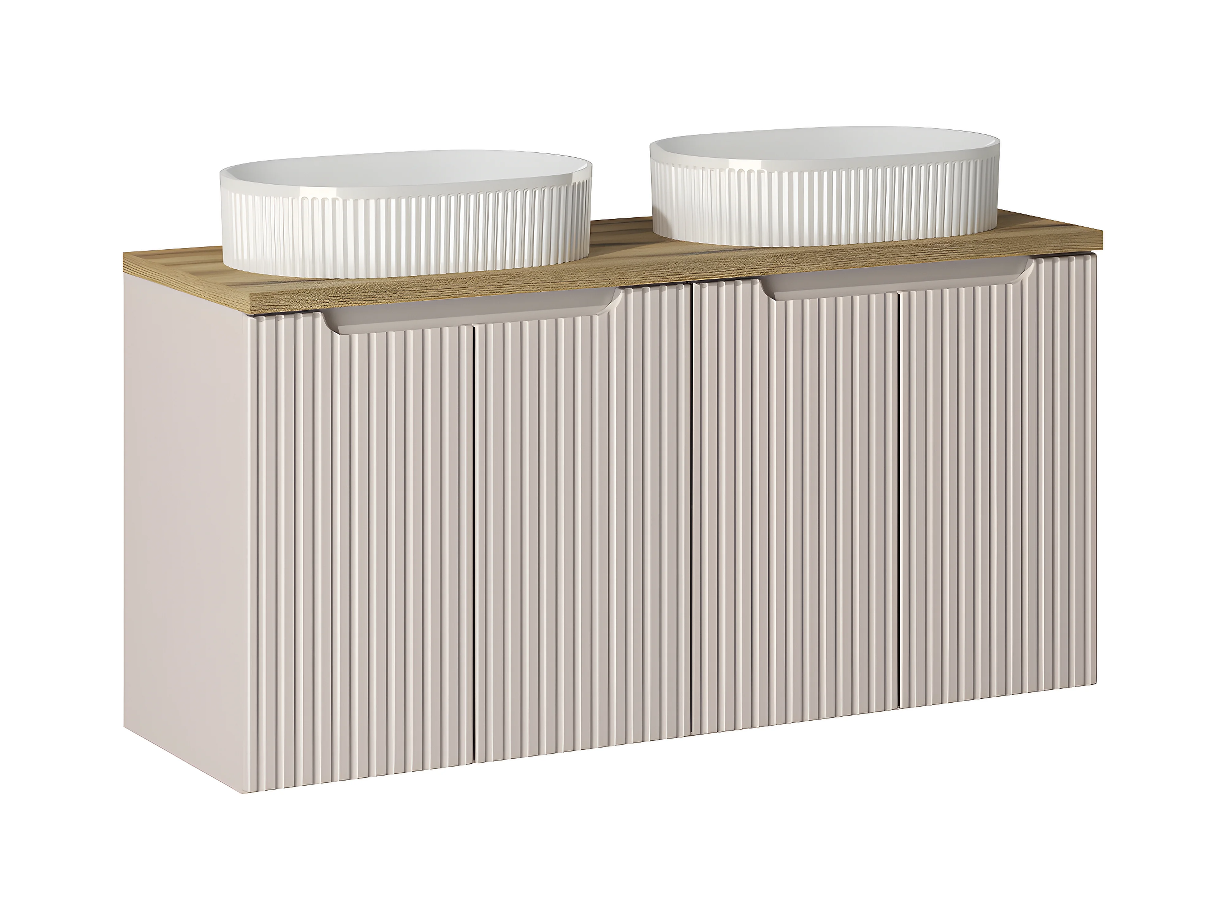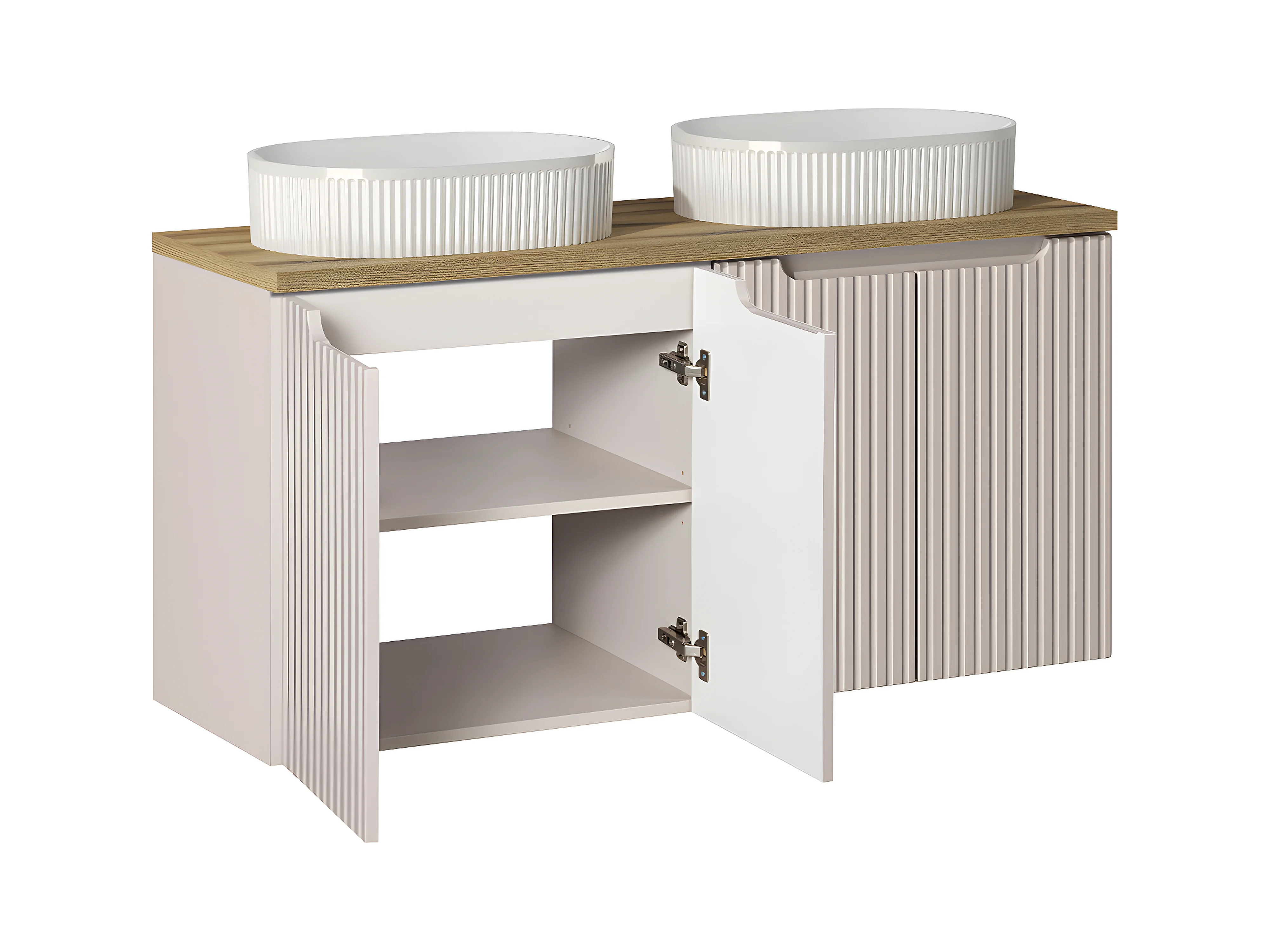 Dubbele wastafel 120cm 4 deuren Riva Kasjmier en Hout