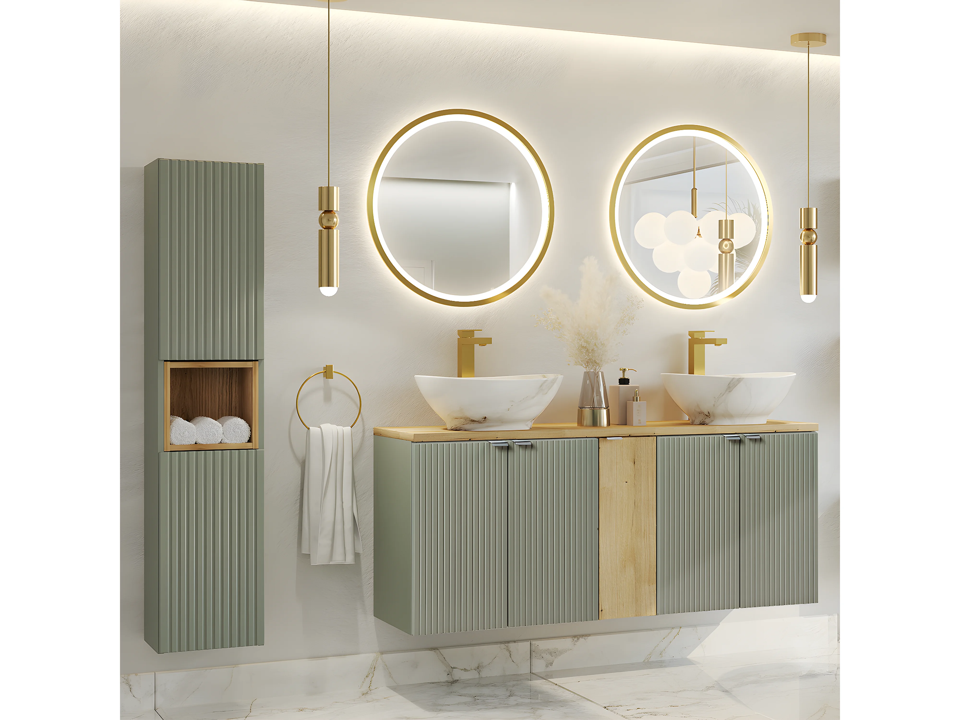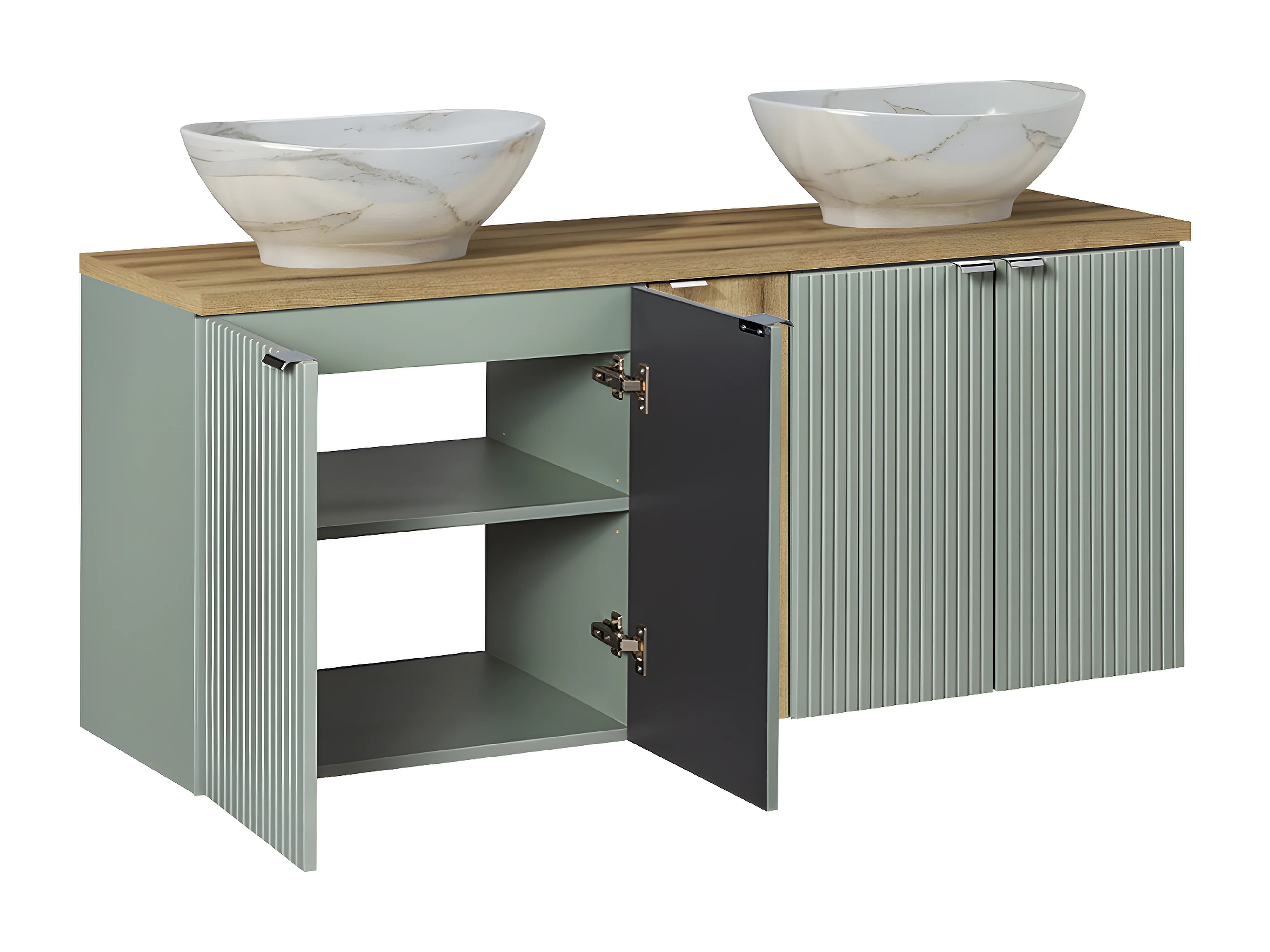 Dubbele wastafel 140cm 5 deuren Jade Groen en Hout