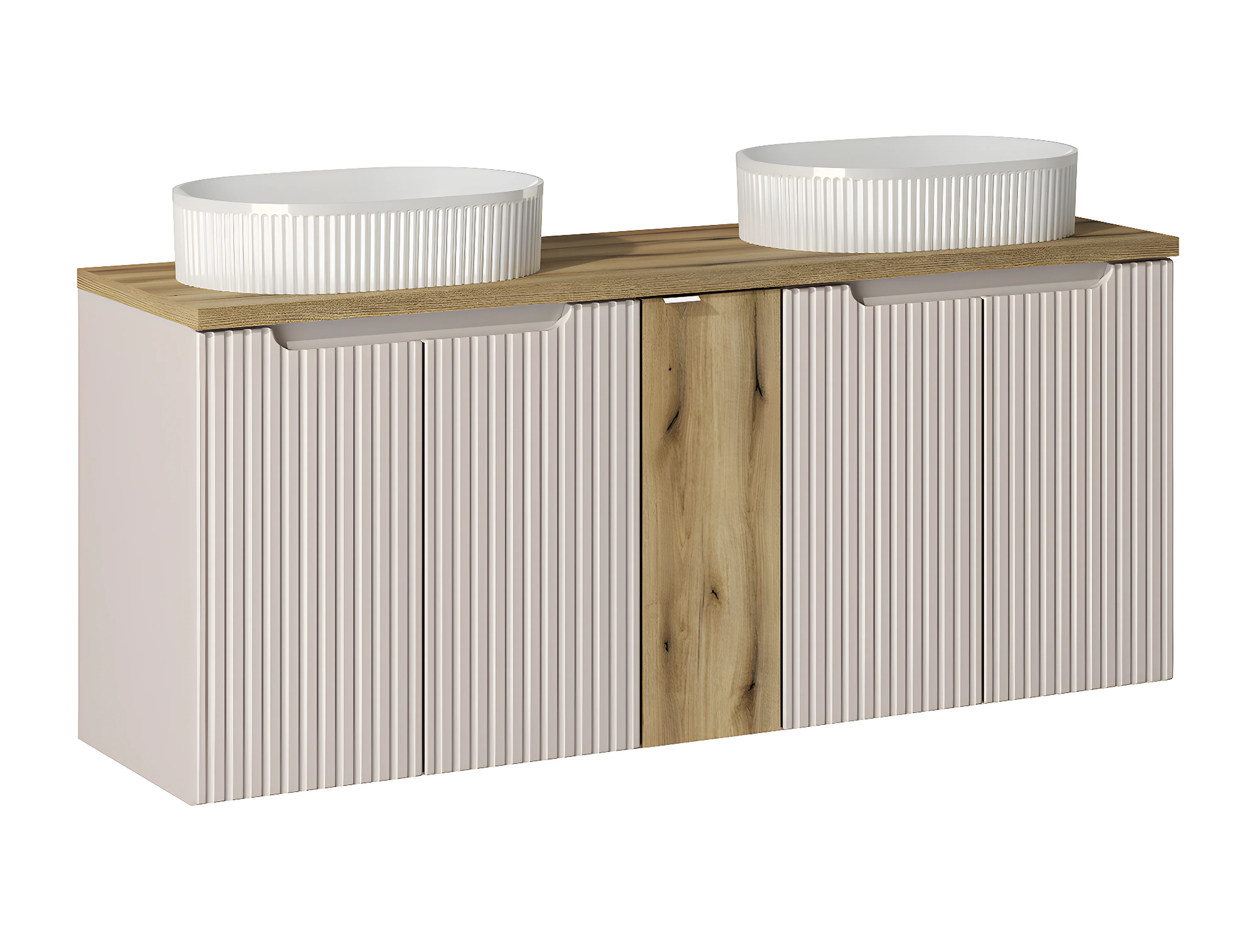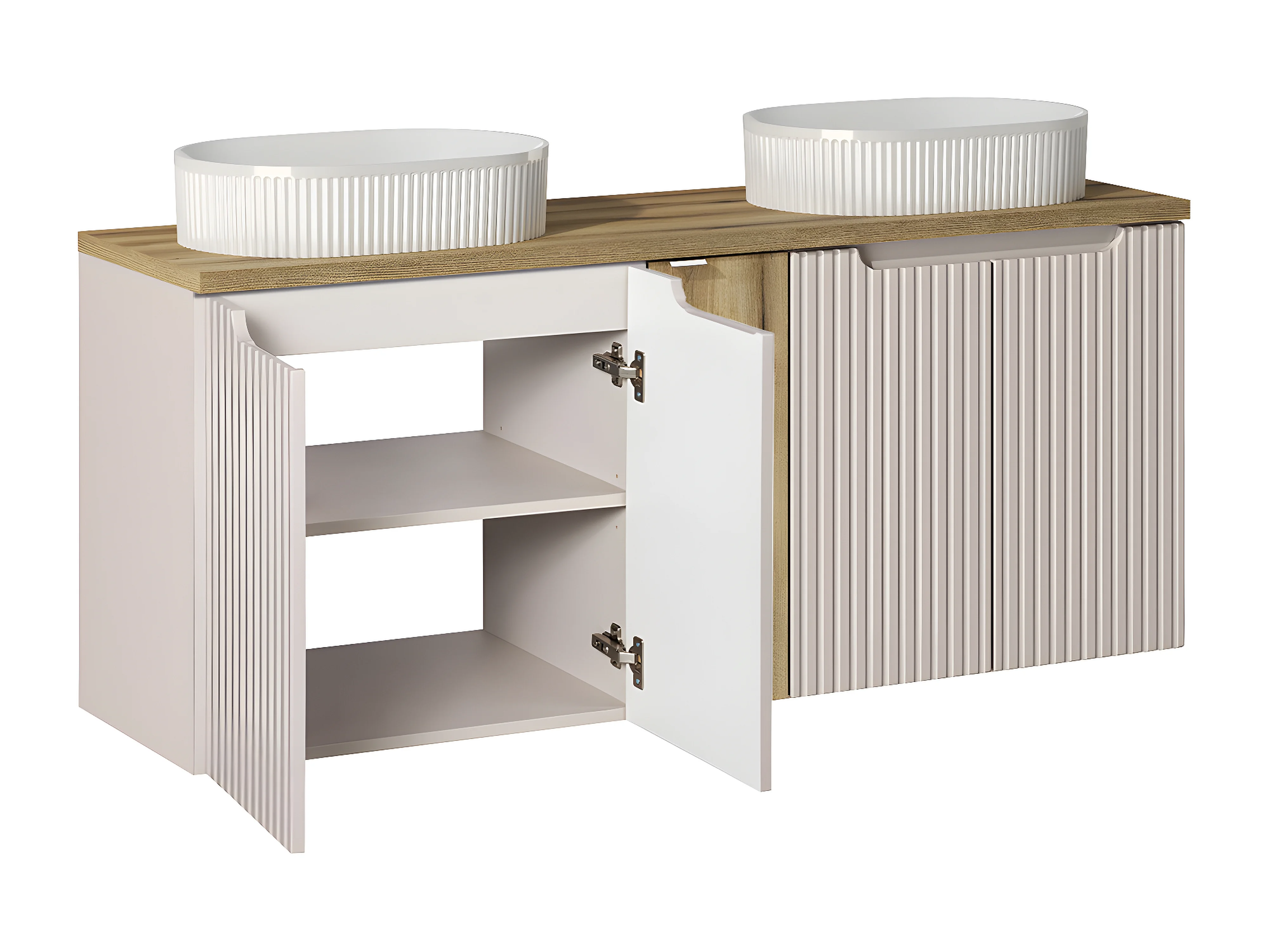 Dubbele wastafel 140cm 5 deuren Riva Kasjmier en Hout