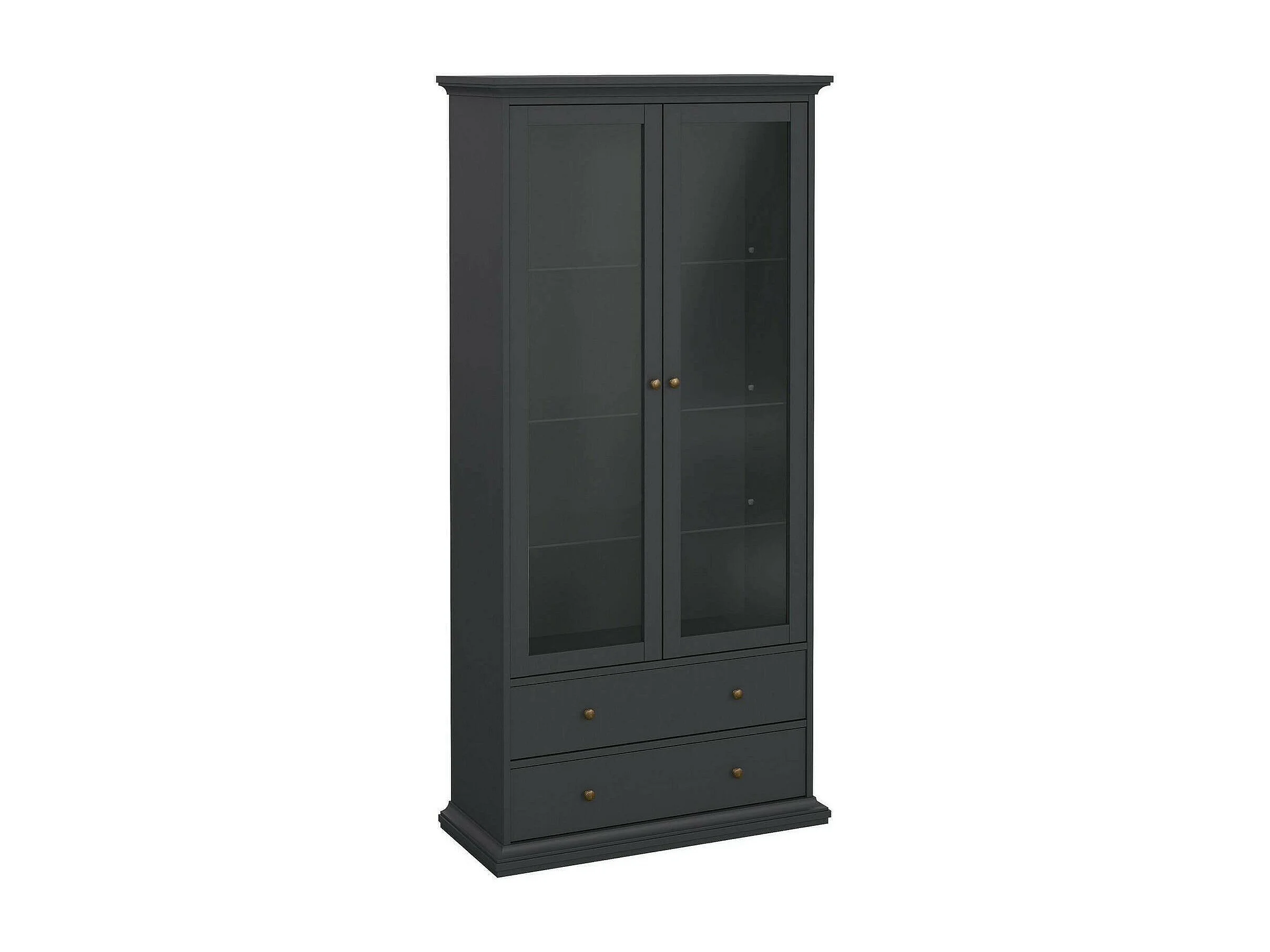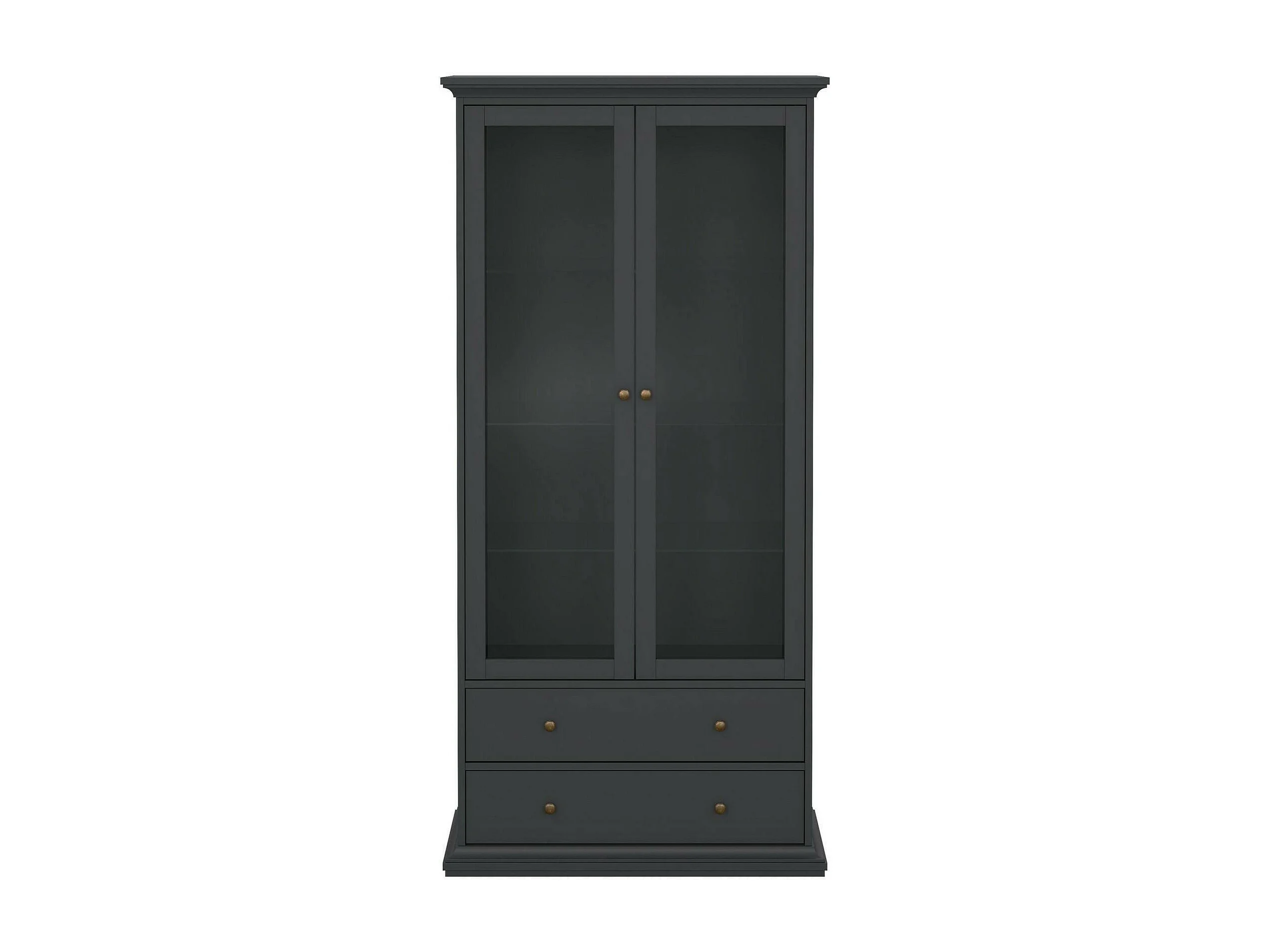 Lage vitrinekast - 85 cm - met drie planken en lades - steengrijs - STOON