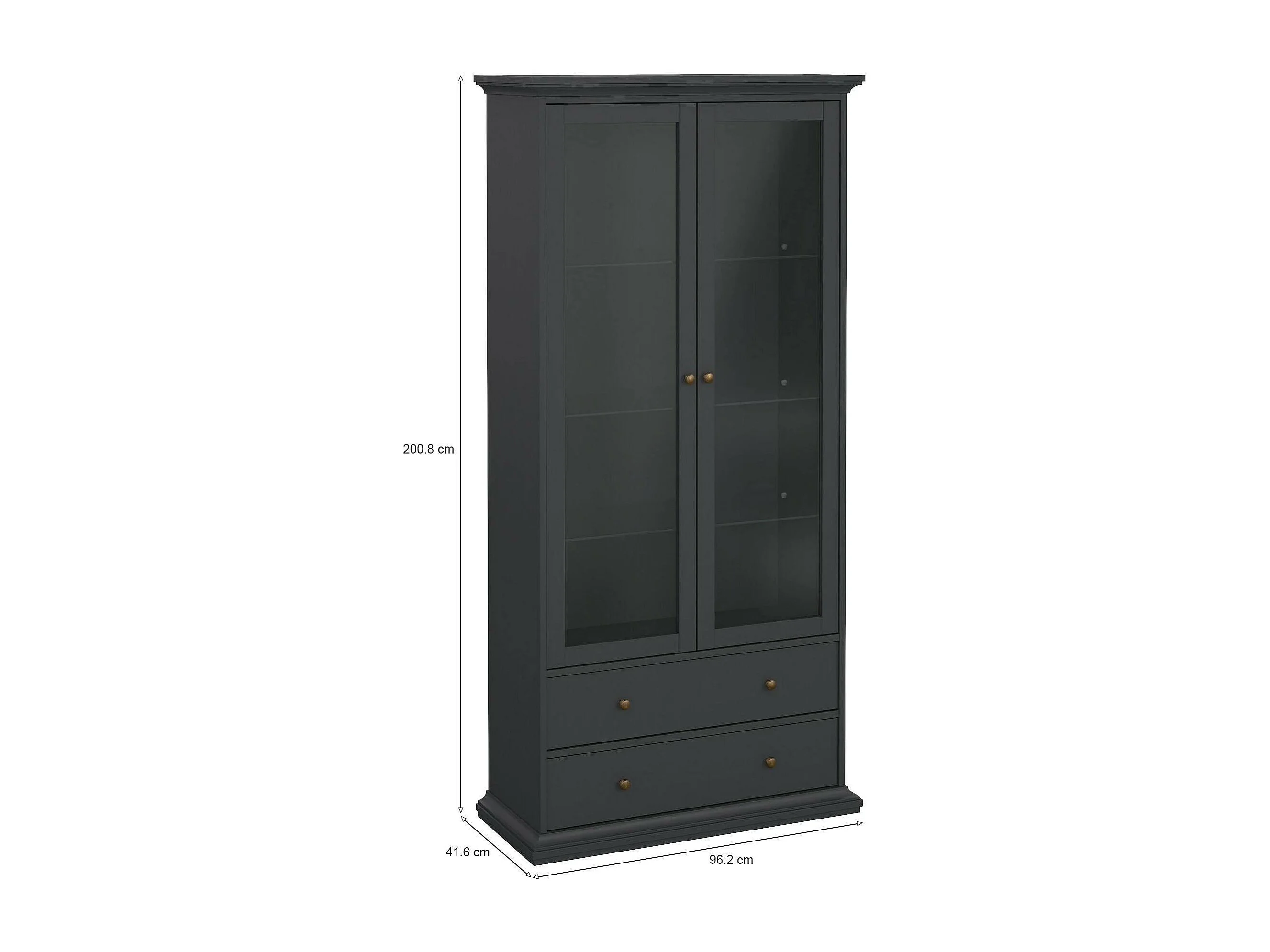 Dvatt vitrinekast, Vitrinekast, Multifunctionele vitrinekast, Woonkamerdressoir, 96x42 h201 cm, Grijs