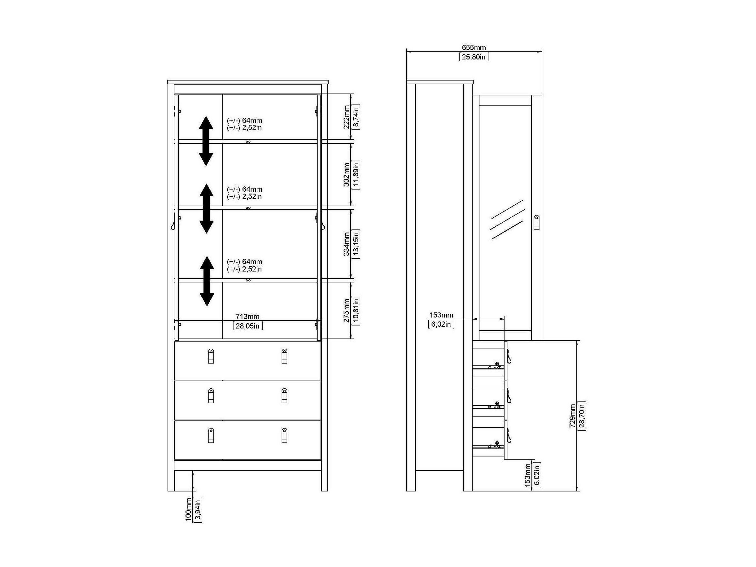 Dvecch vitrinekast, Vitrinekast, Multifunctionele vitrinekast, Woonkamerdressoir, 78x33 h199 cm, Wit