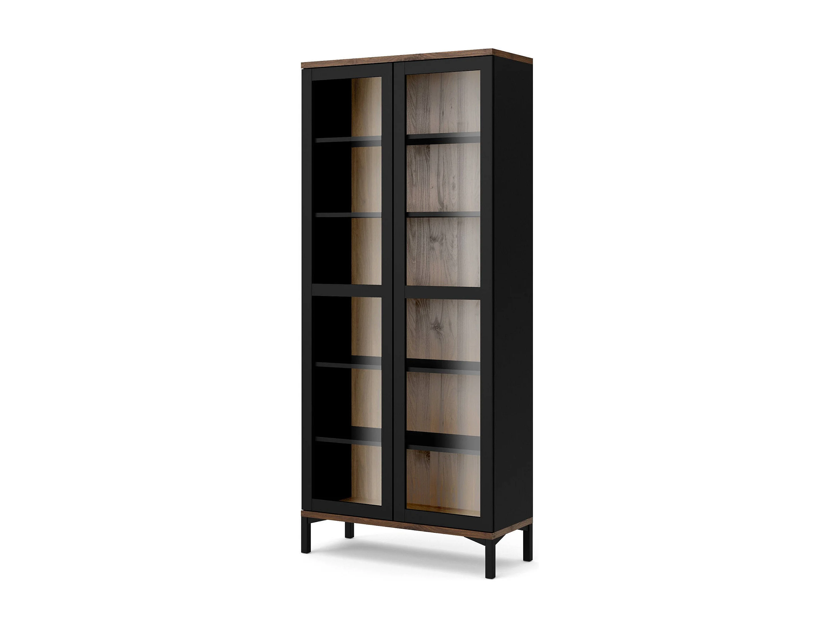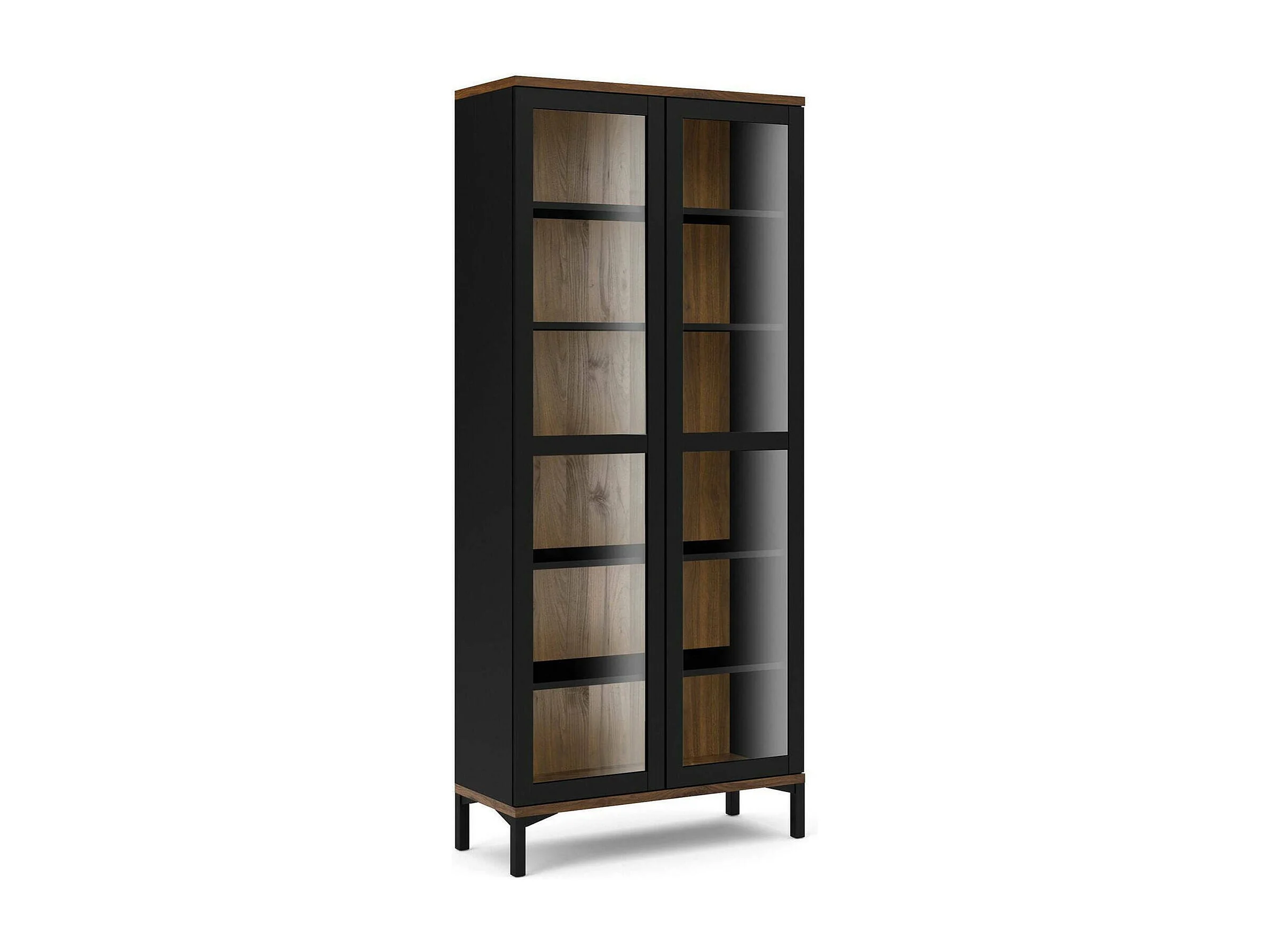 Dvecchi vitrinekast, Vitrinekast, Multifunctionele vitrinekast, Woonkamerdressoir, 89x36 h203 cm, Zwart en Walnoot