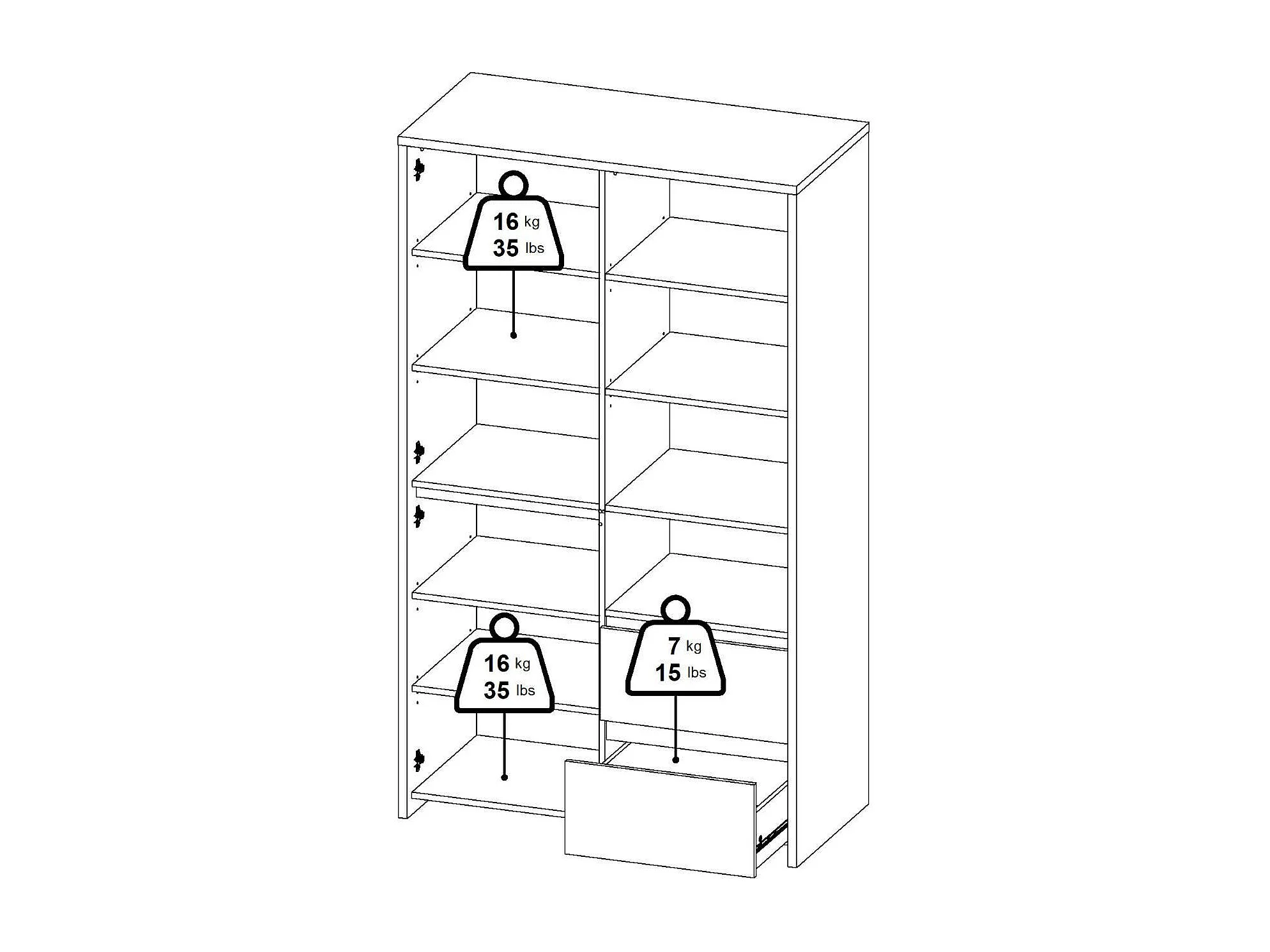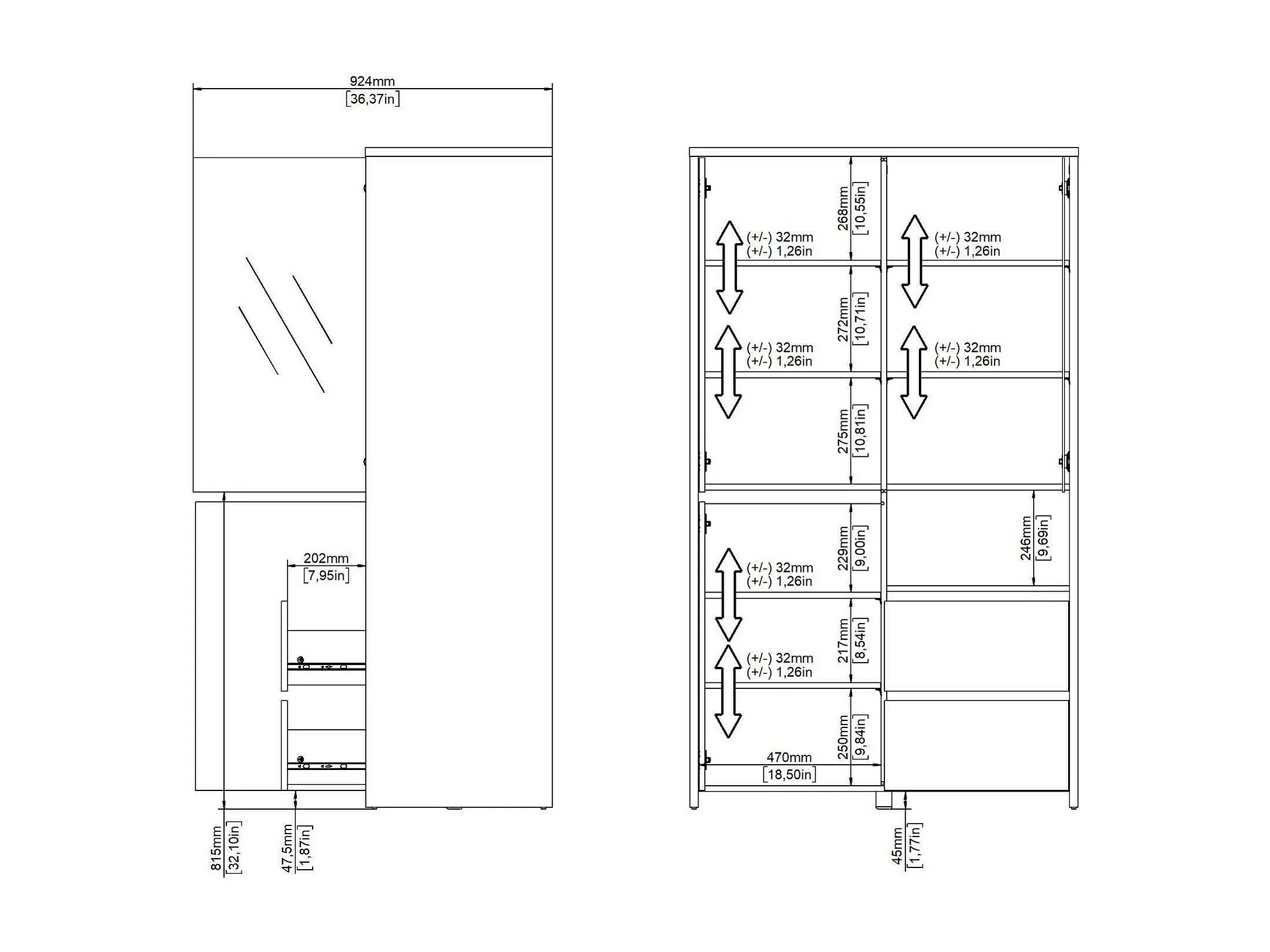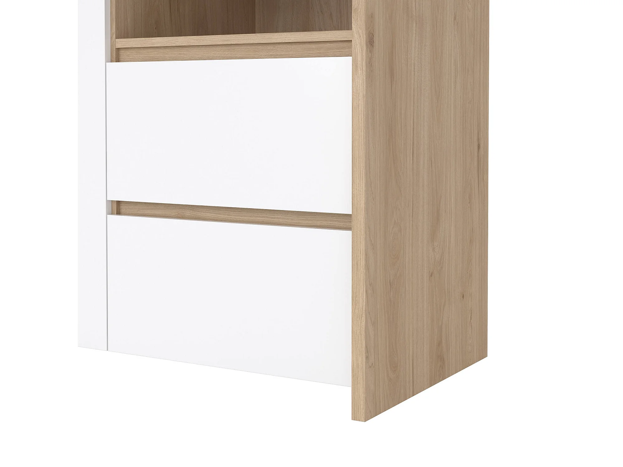 Dvecin vitrinekast, Vitrinekast, Multifunctionele vitrinekast, Woonkamerdressoir, 100x48 h170 cm, Eiken en Wit
