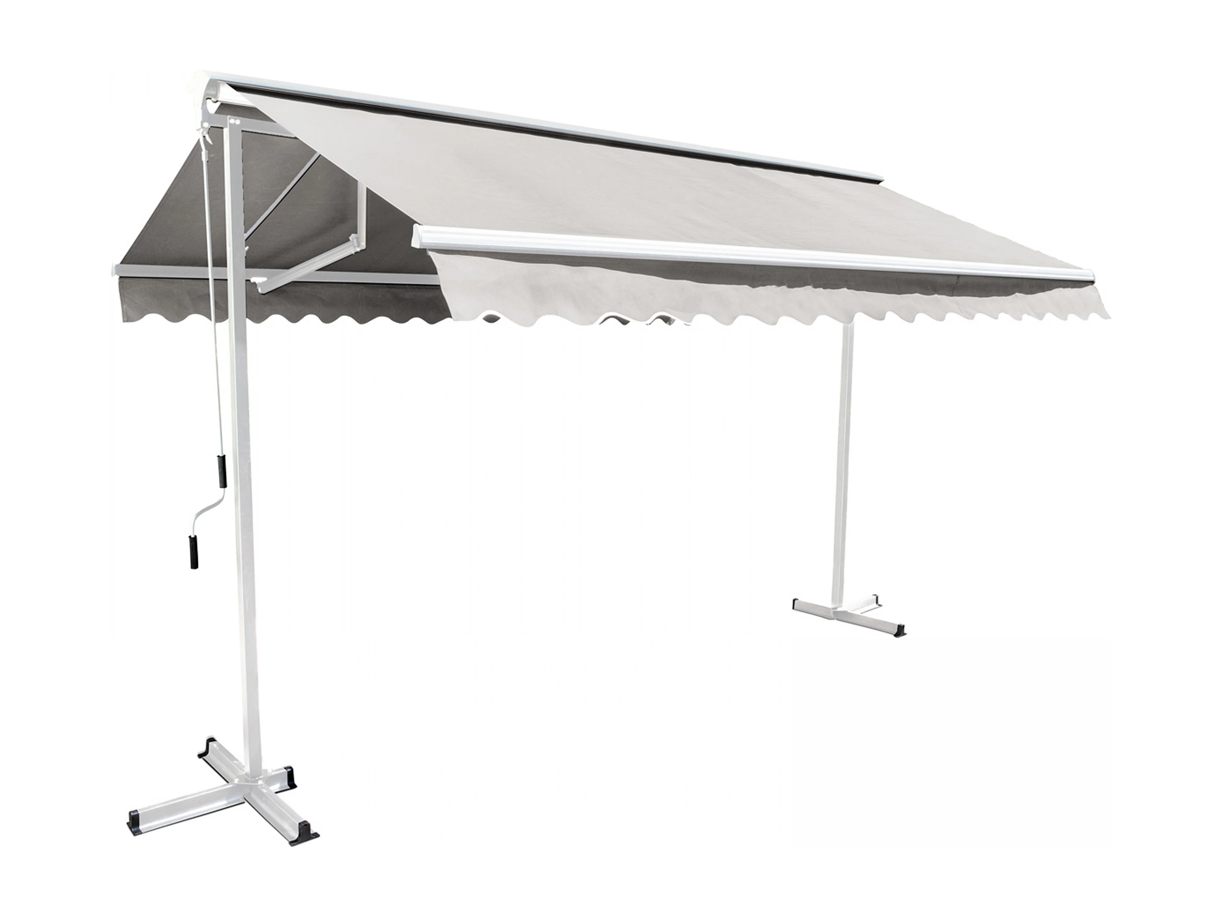 Een dubbele schuine afdak van 3x3 m met 4 crèmekleurige ballasttegels