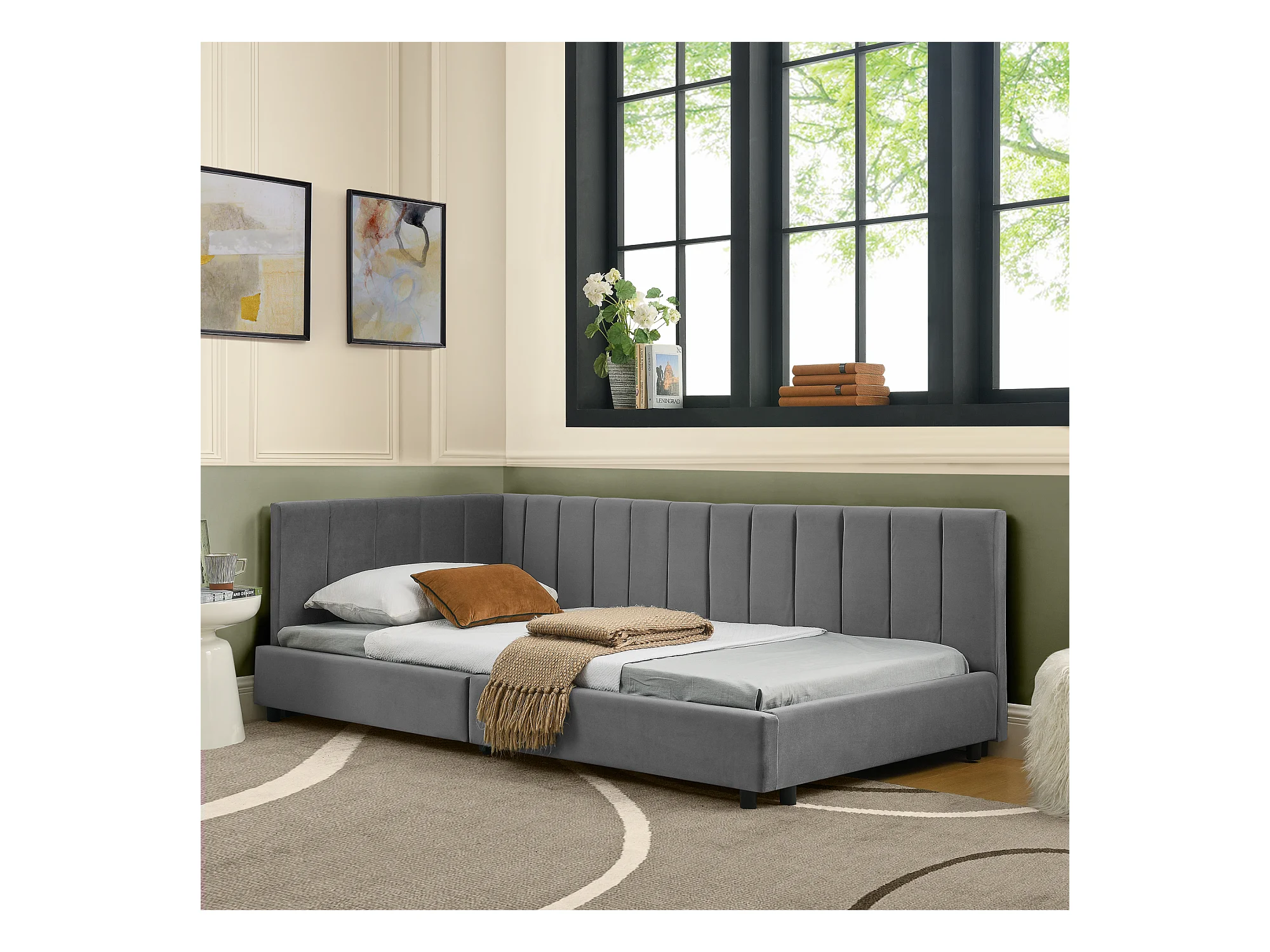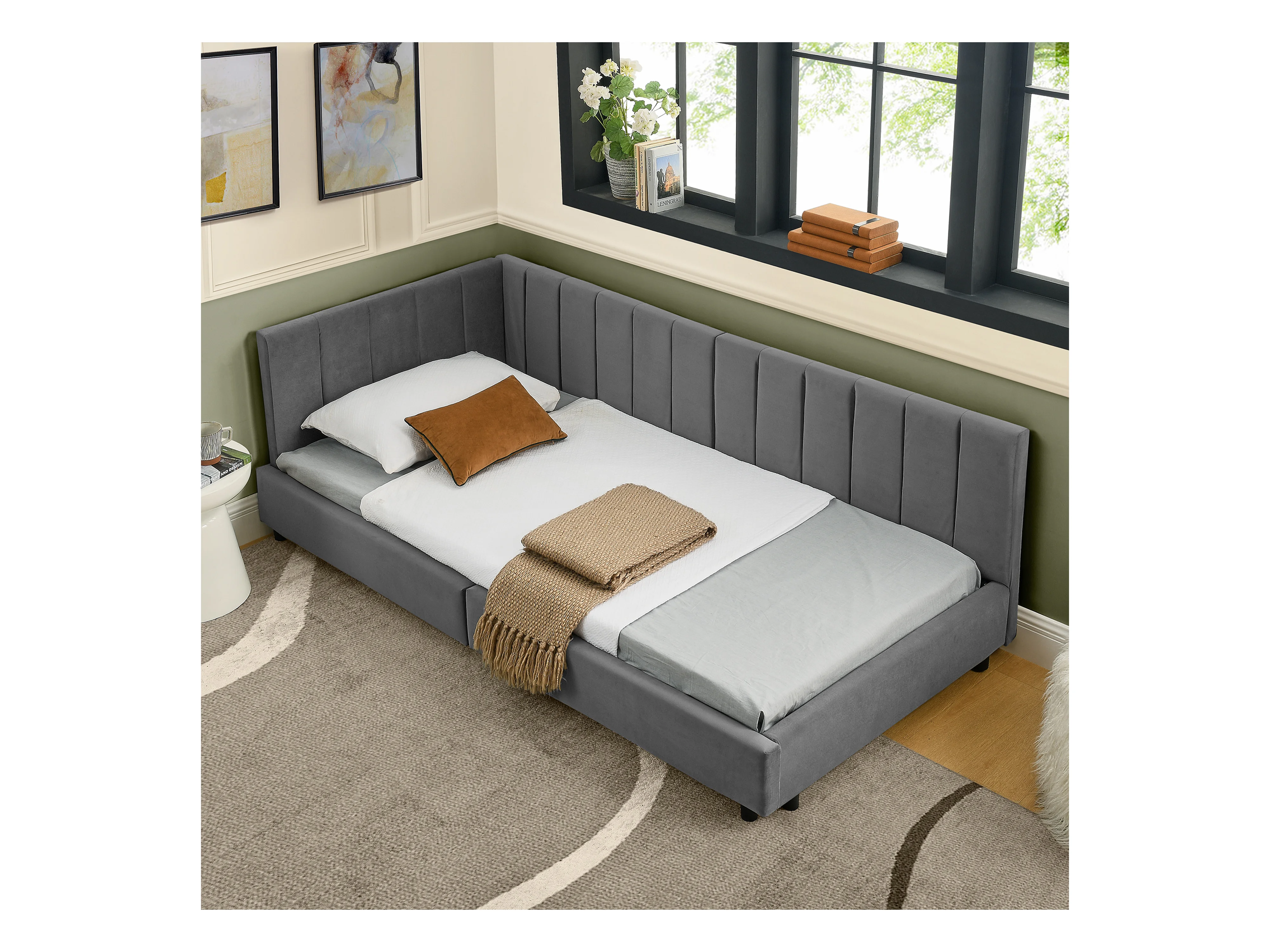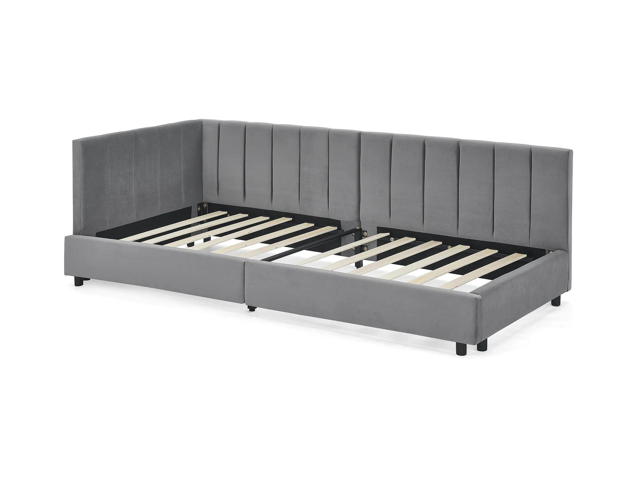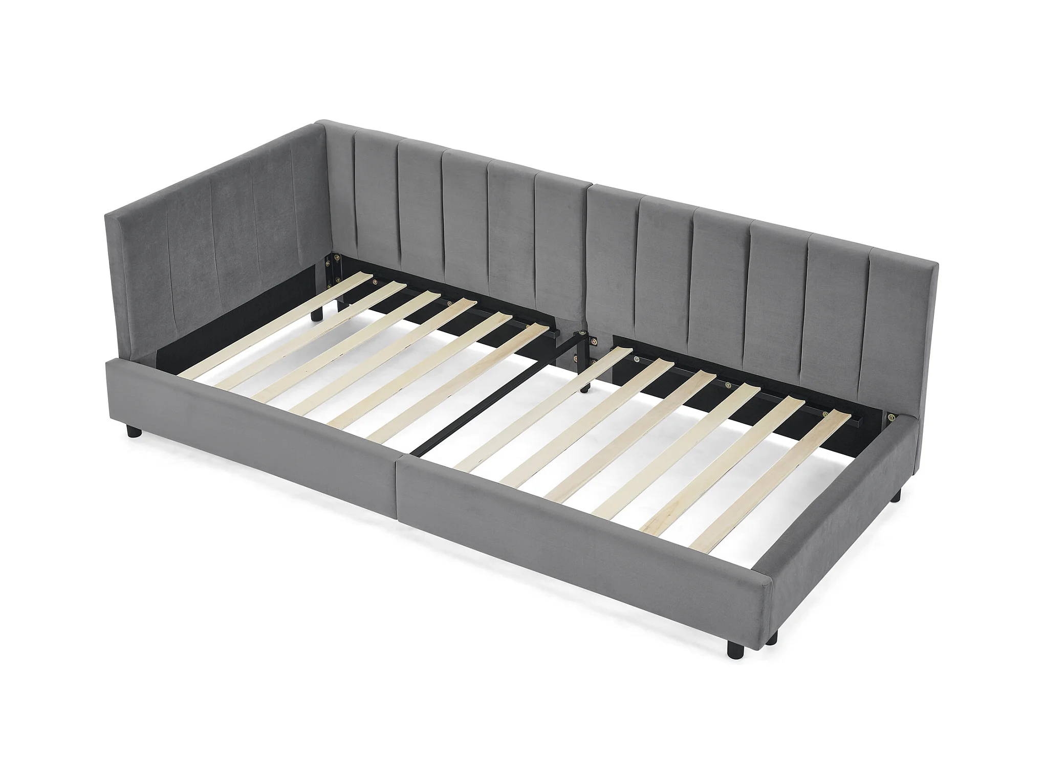 Eenpersoons slaapbank 90x200cm met hoge rugleuning, lattenbodem, grijs fluweel