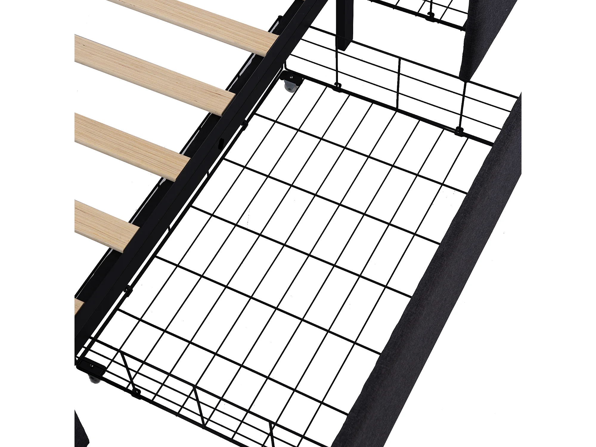 Eenpersoonsbed Gepolsterd 90x200 Cm Met LED En 2 Lades, Tête Réglable, Houten Lattenbodem, Stof Zwart, Met Matras