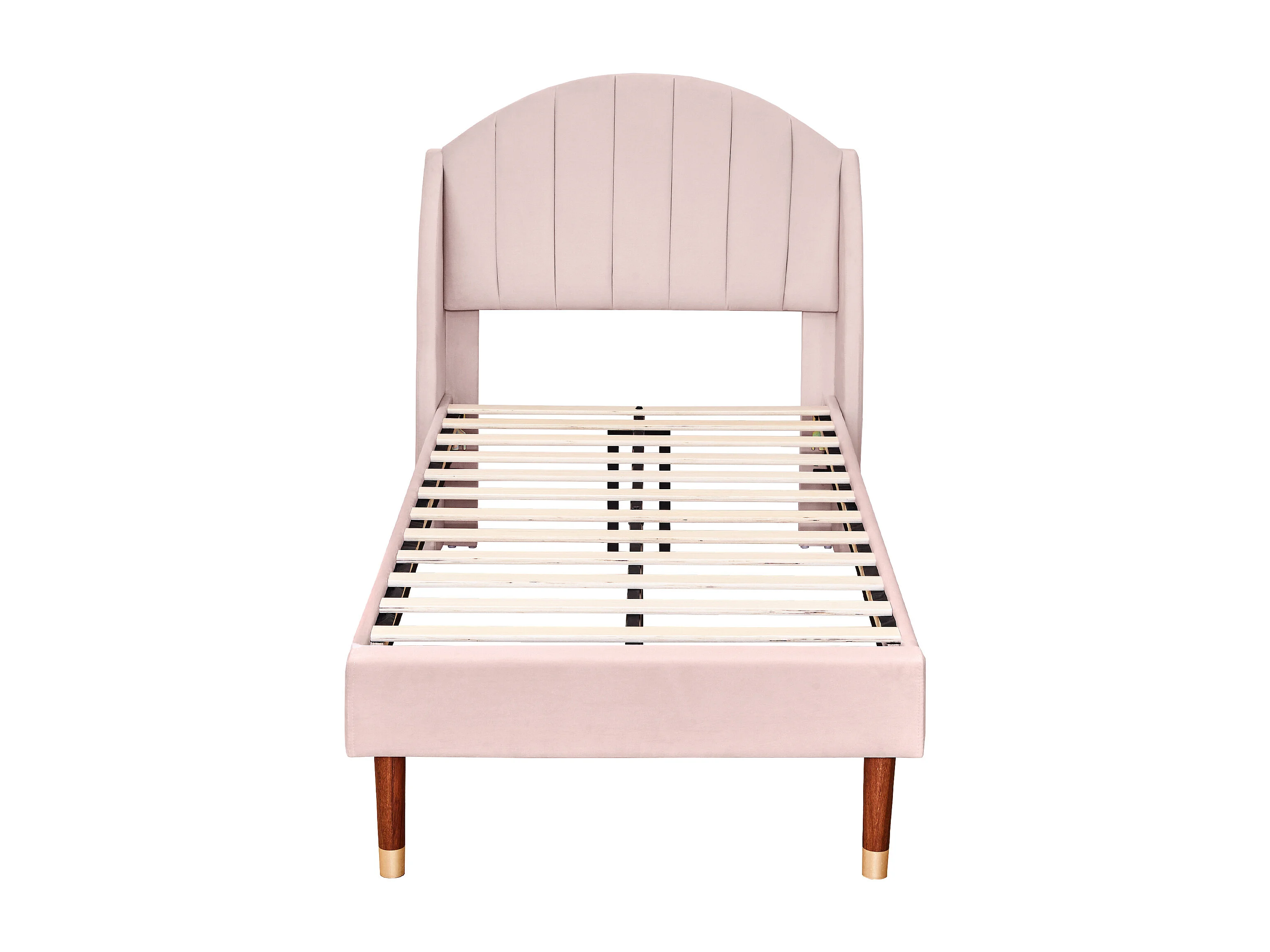 Eenpersoonsbed kinderbed 90x200 cm met lattenbodem - in hoogte verstelbaar hoofdeinde - houten bedframe - roze fluweel (zonder matras)