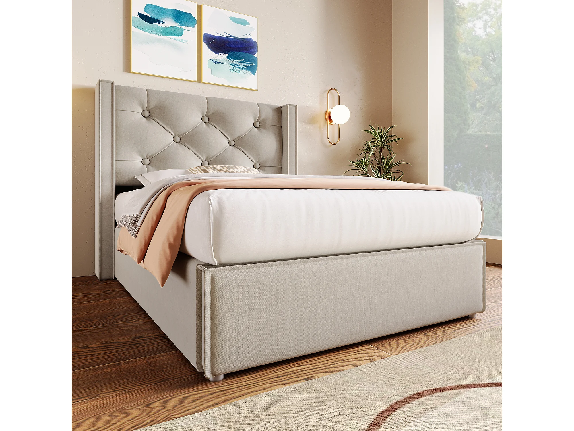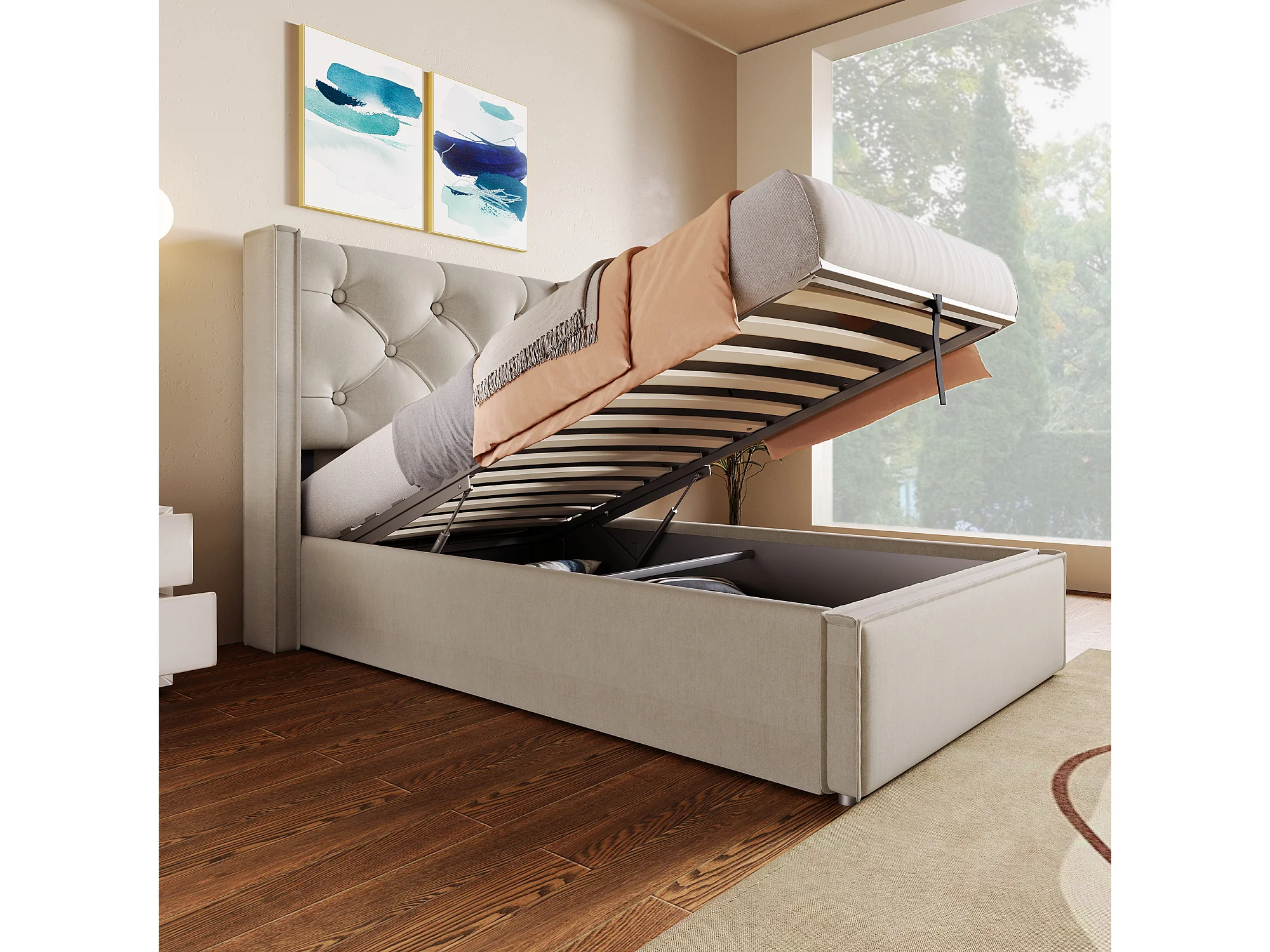 Eenpersoonsbed met hydraulische opbergruimte, modern lichtgrijs katoenen frame (203x101x110cm)