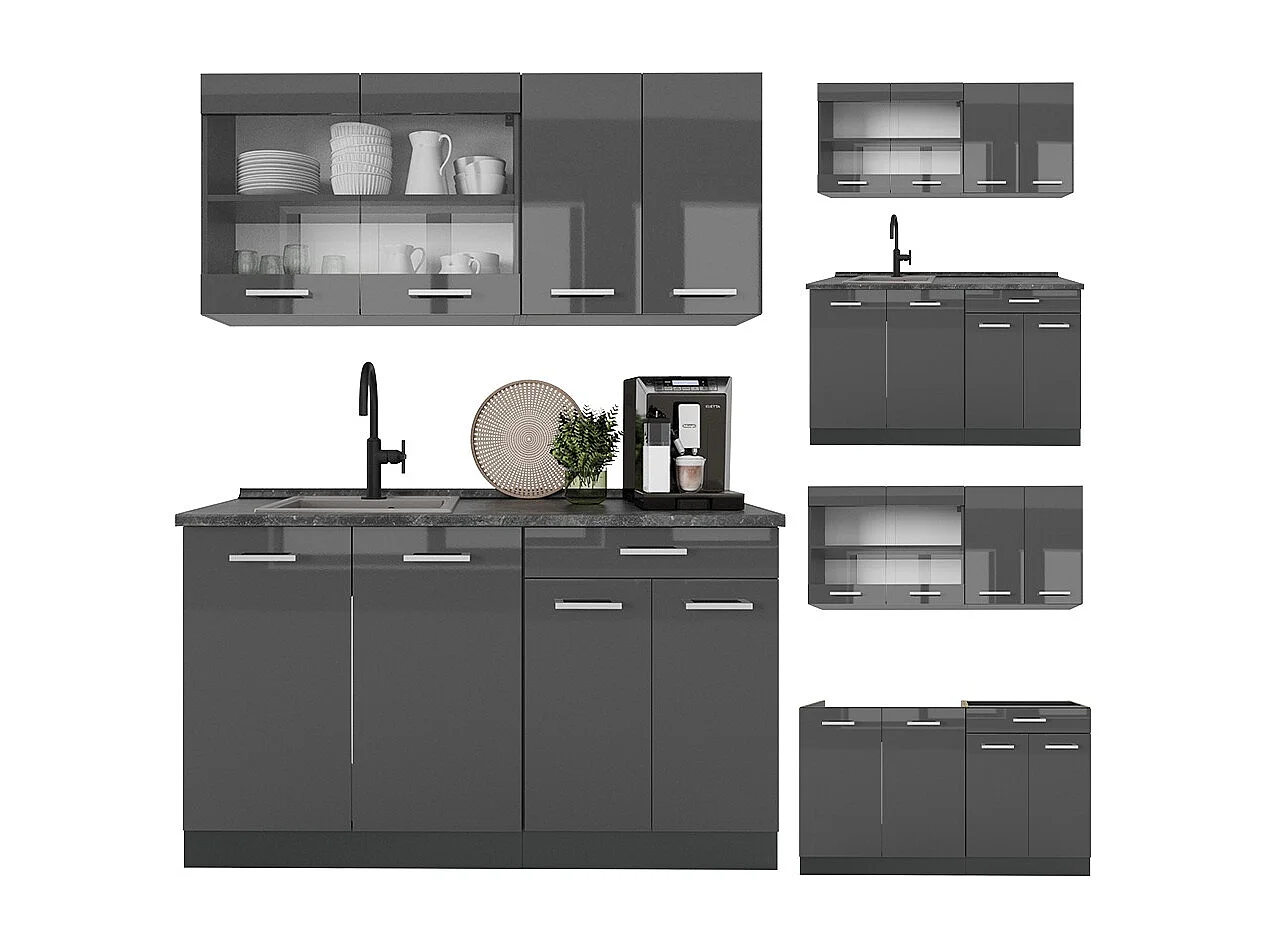 Eenpersoonskeuken antraciet hoogglans/antraciet 140x60x81.6 r-line