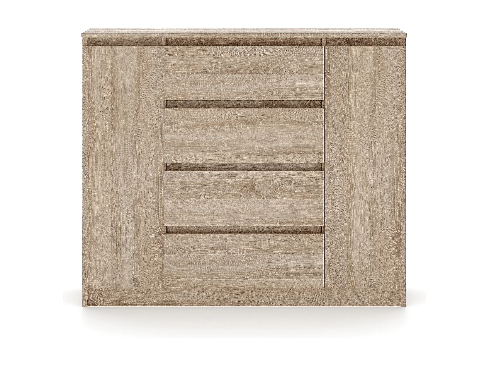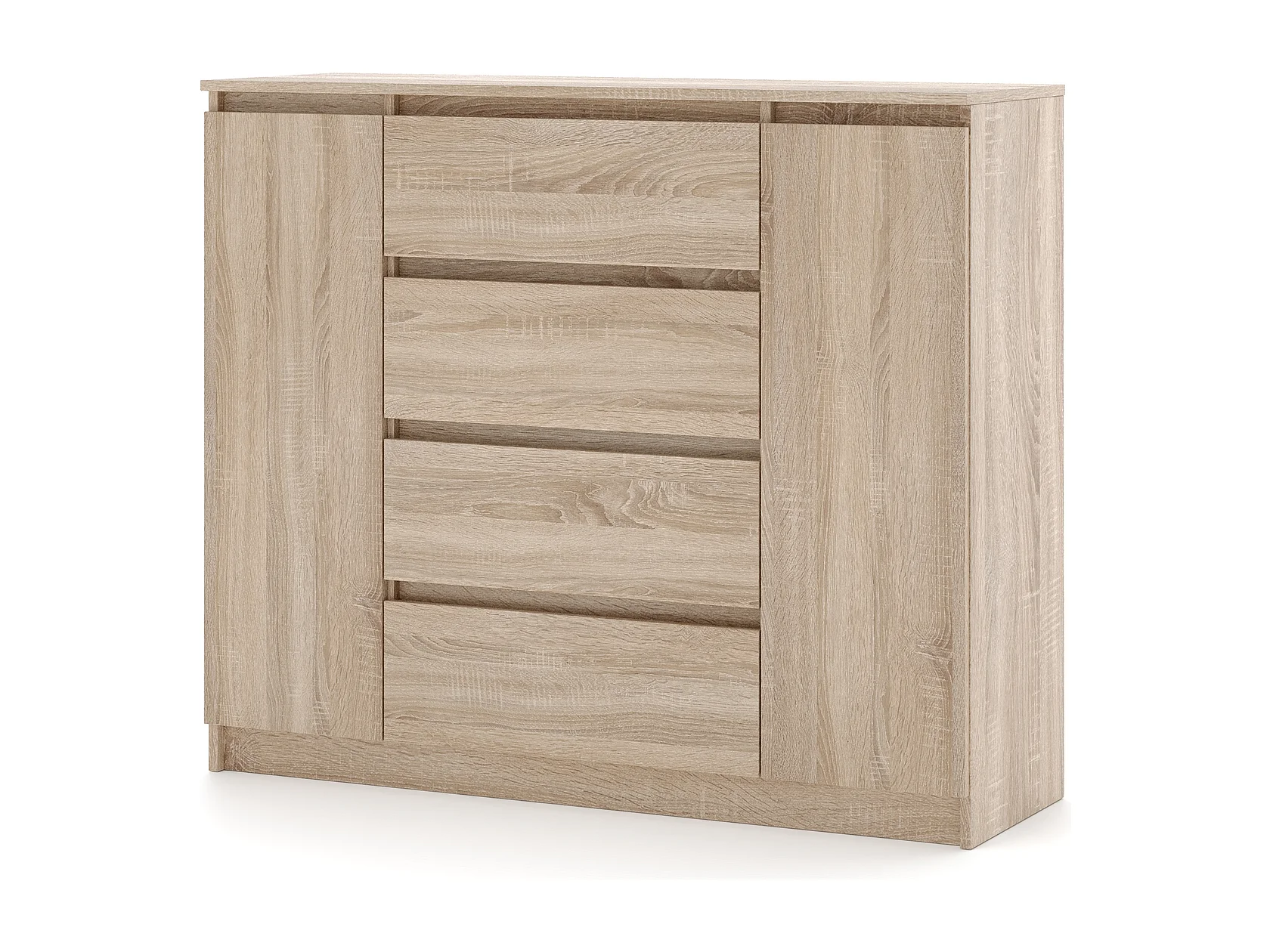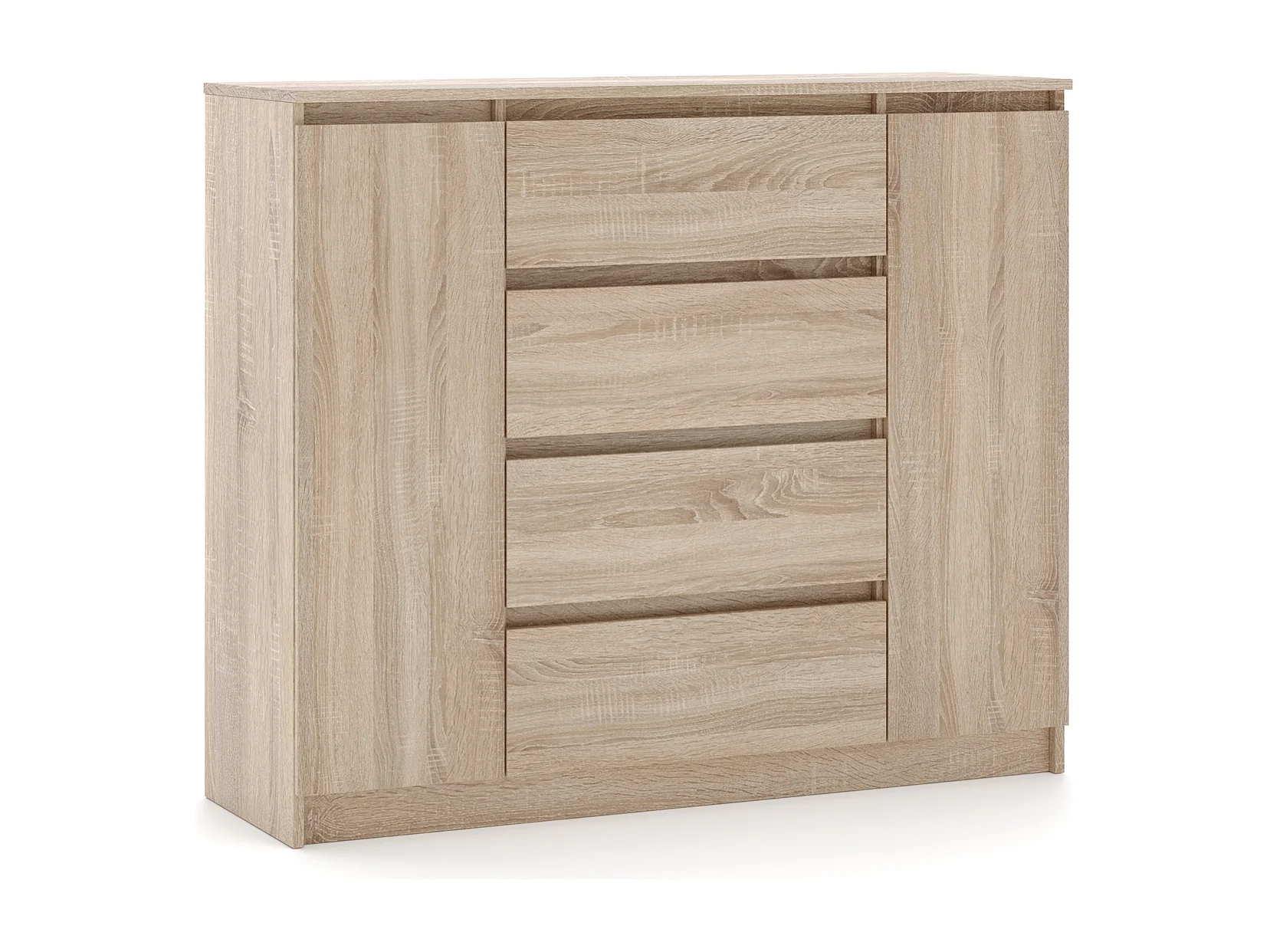 Eenvoudige ladekast 120 cm in sonoma eikenhout 2 deuren 4 lades
