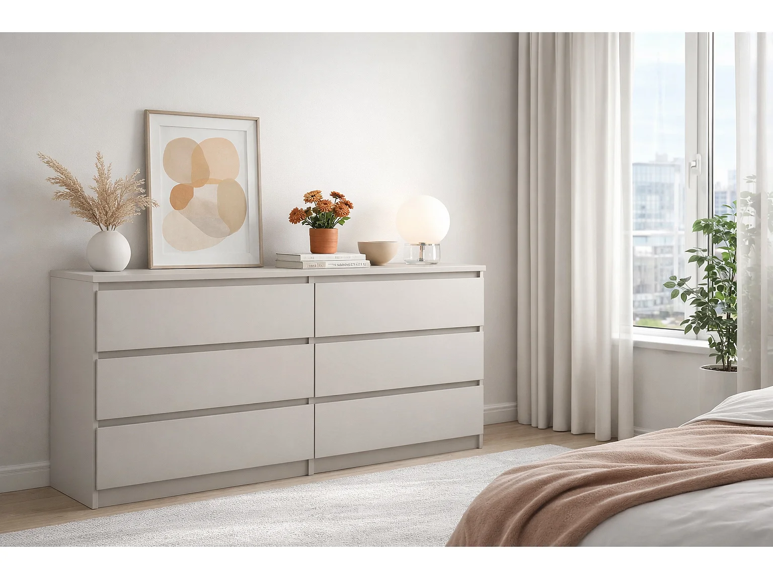 Eenvoudige ladekast 140 cm in kasjmier met 6 lades