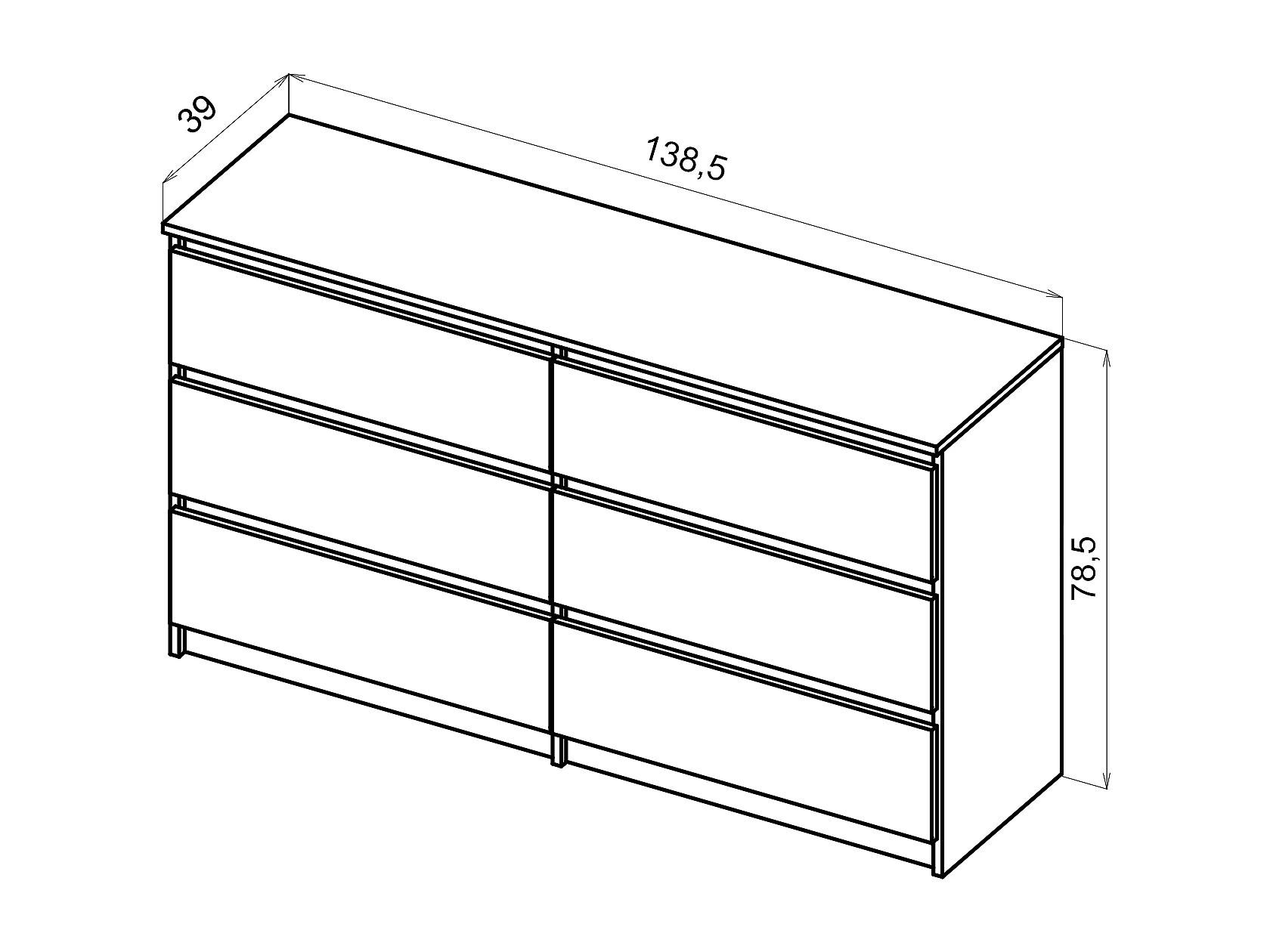 Eenvoudige ladekast 140 cm in sonoma-eik met 6 lades