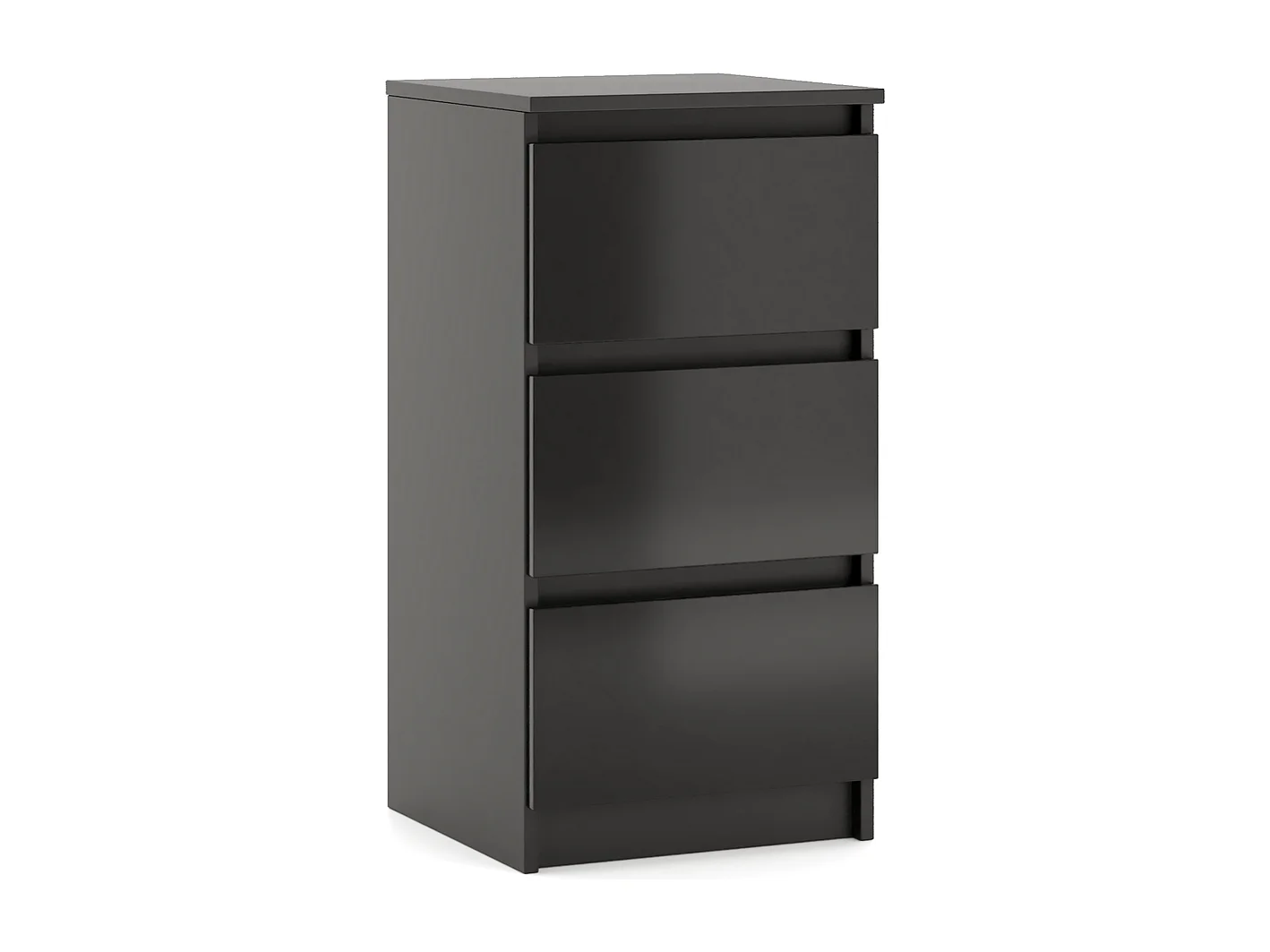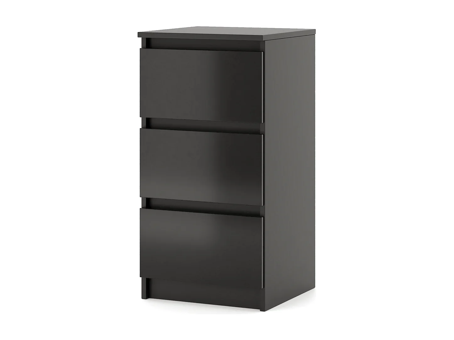 Eenvoudige ladekast 40 cm in zwart/glanzend zwart met 3 lades