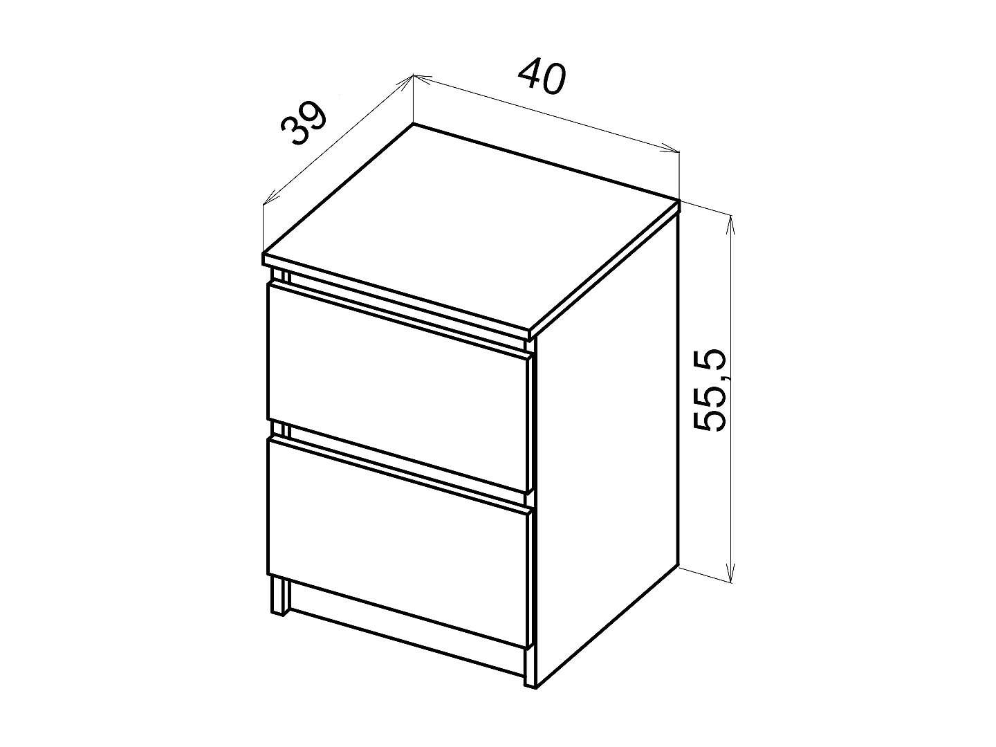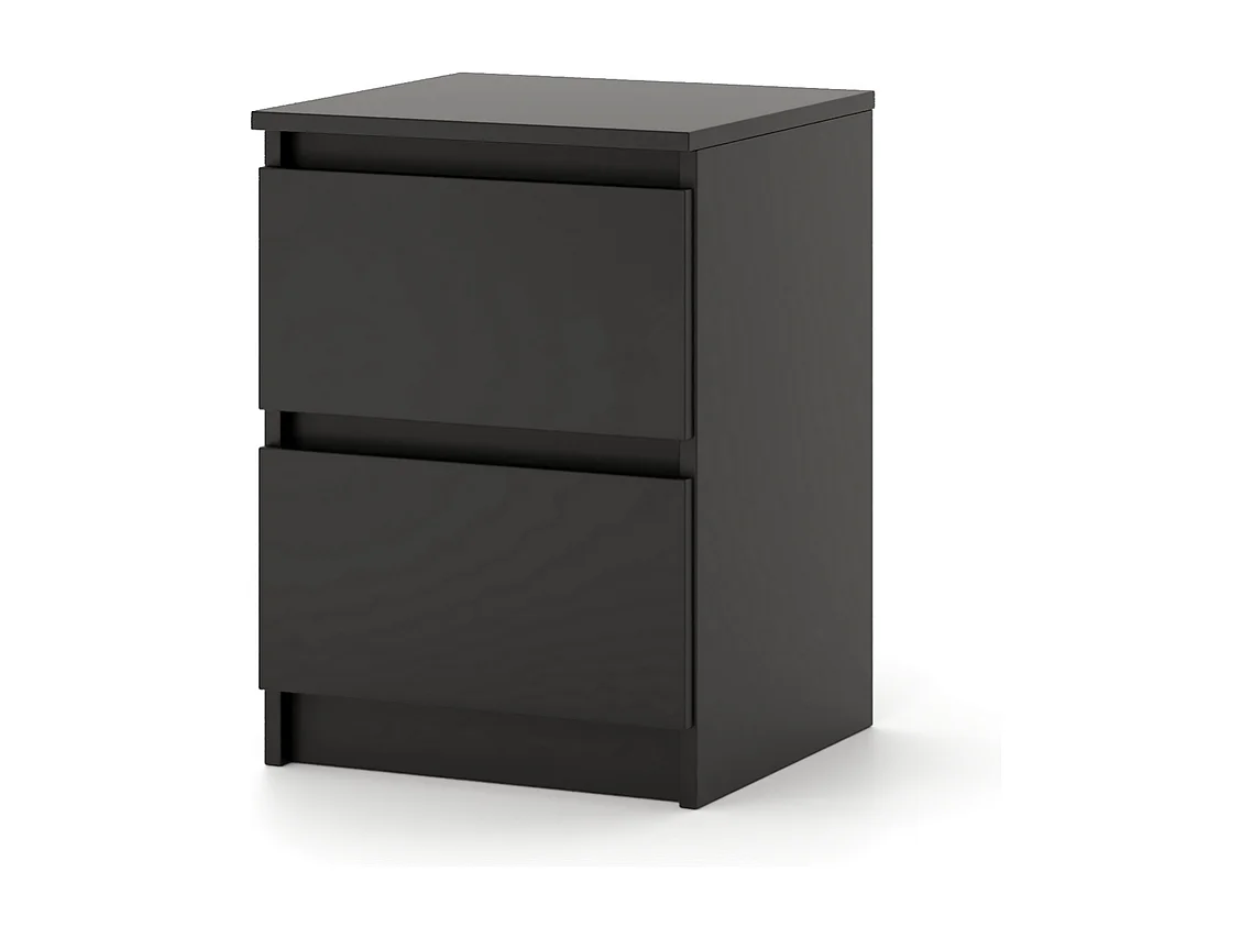 Eenvoudige ladekast 40 cm in zwart met 2 lades