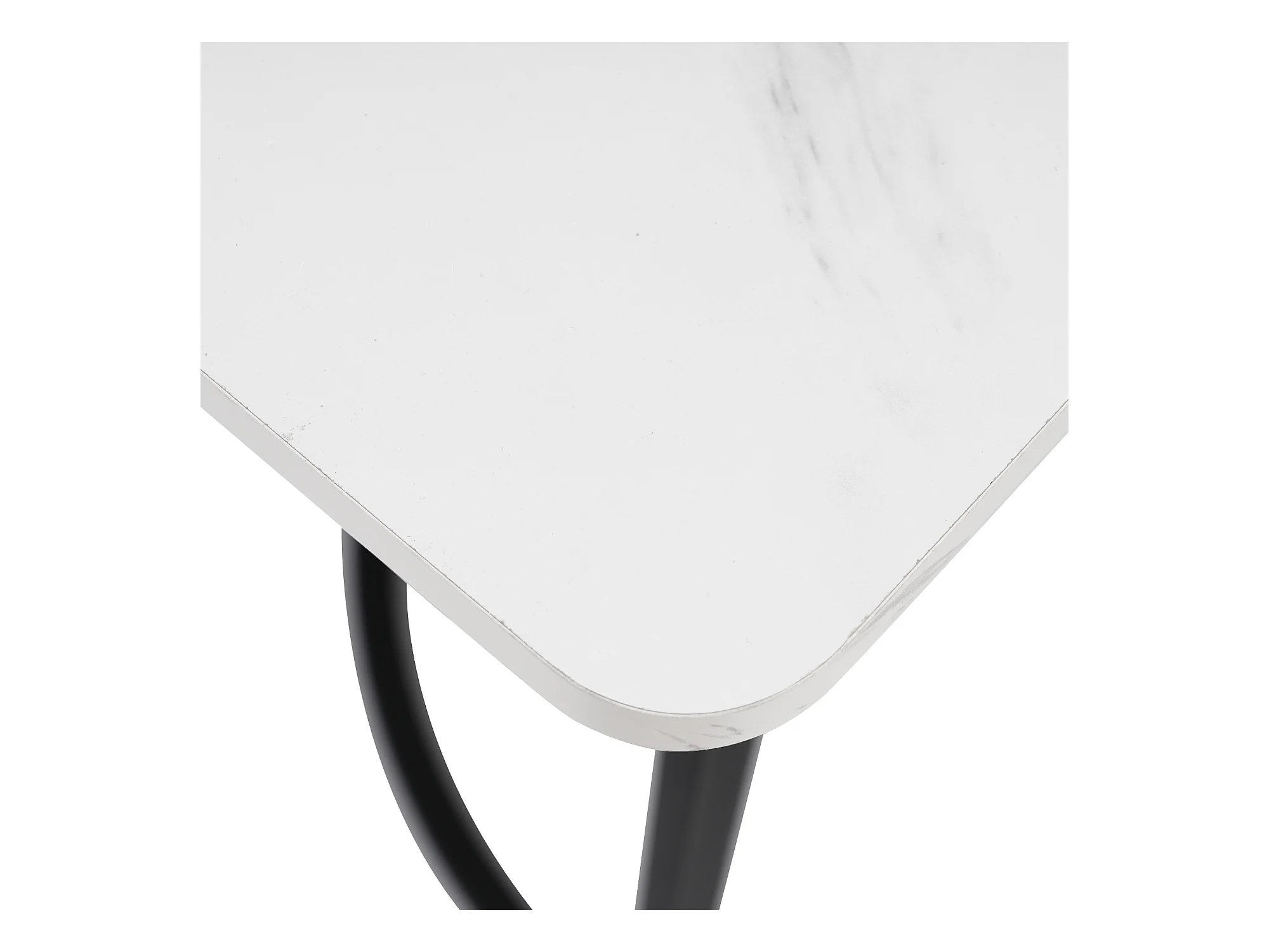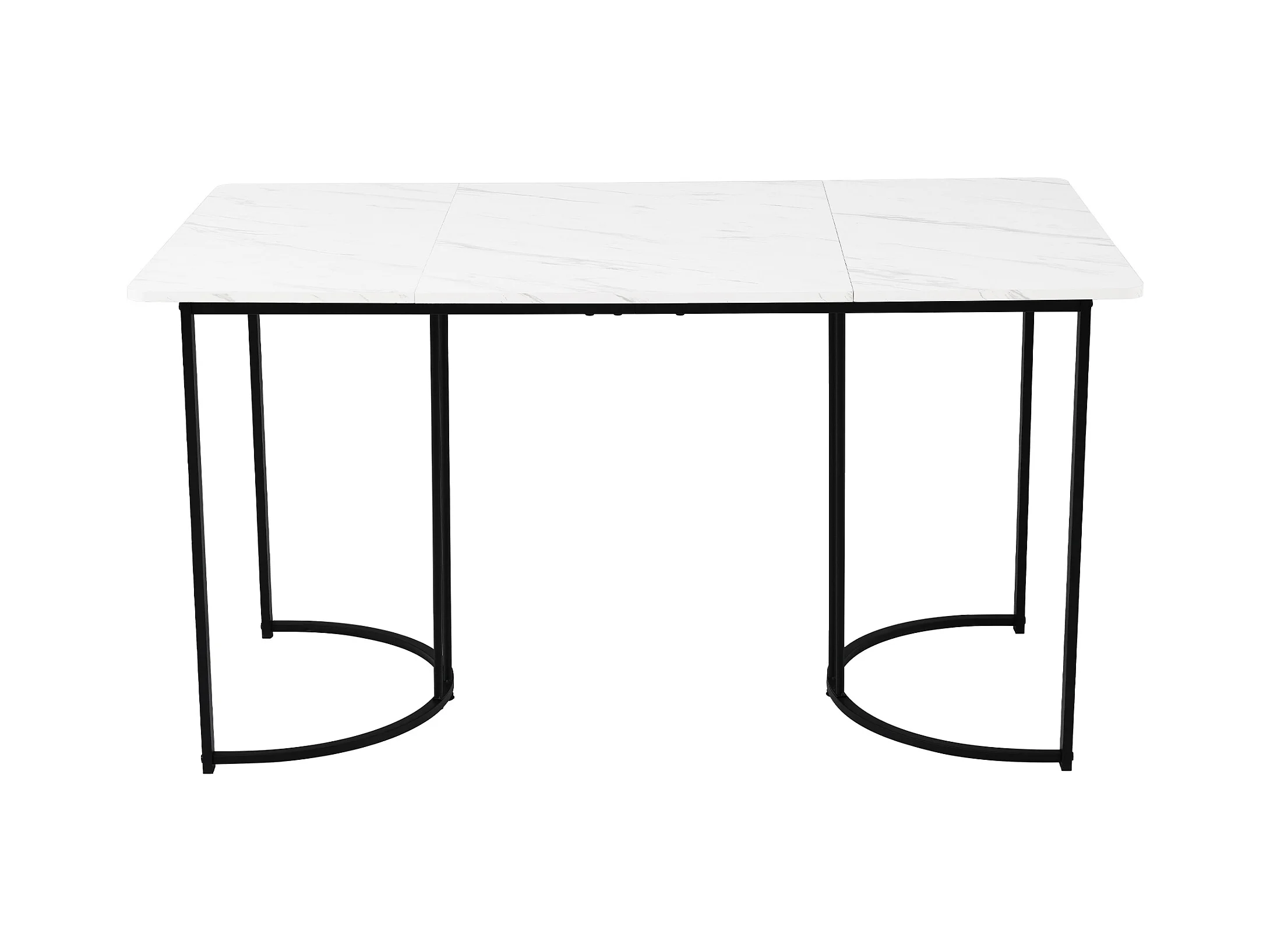 Eetkamerset (5-delig), Klaptafel 150/180x80x75 cm met 4 linnen stoelen, Wit MDF blad, Zwarte metalen poten