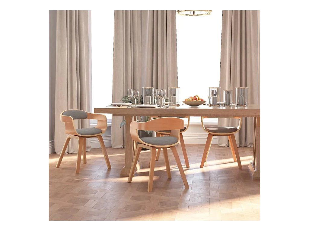 Eetkamerstoel 4 st gebogen hout en stof taupe