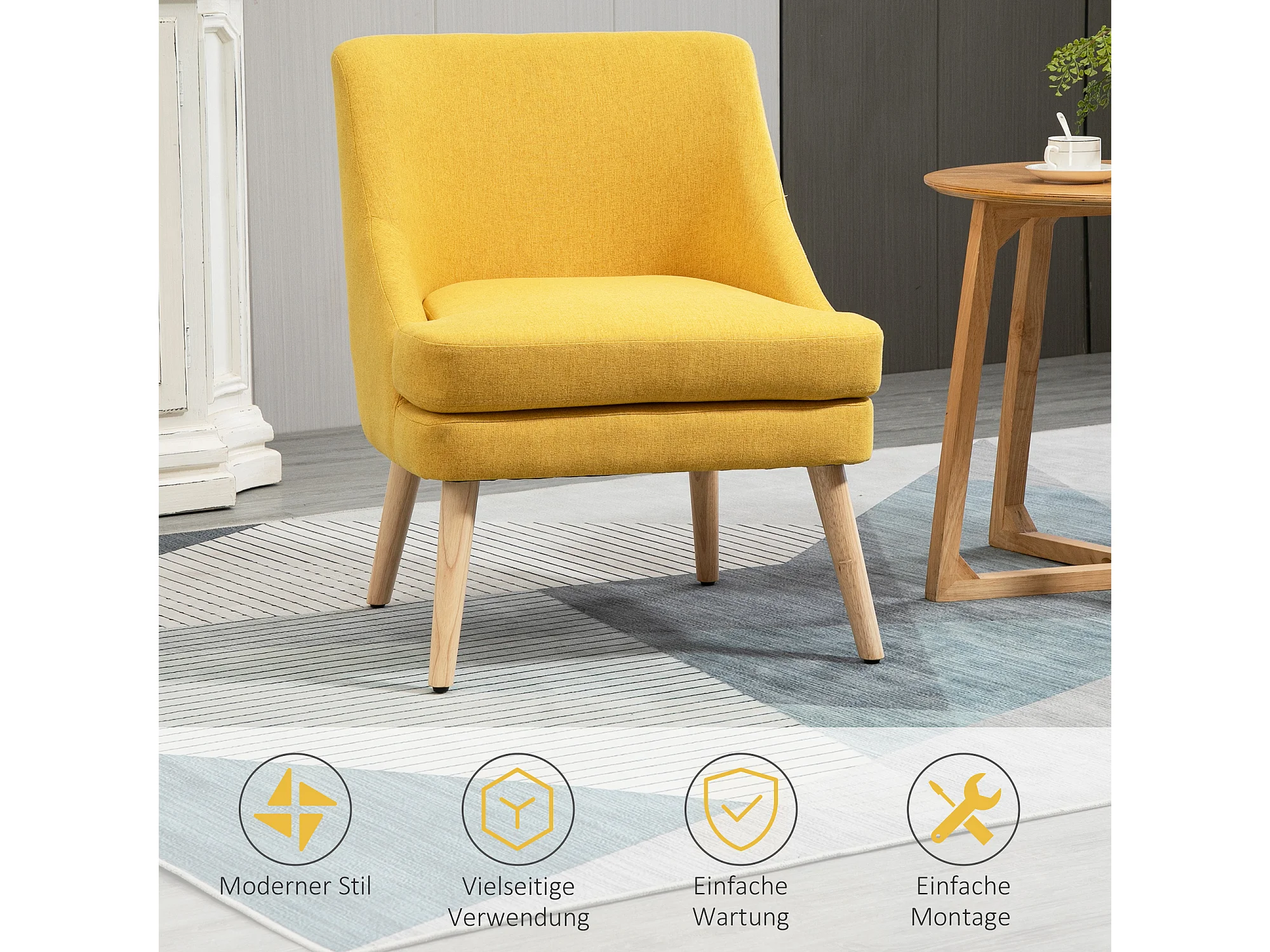 Eetkamerstoel met armleuningen, linnen bekleding, gele houten poten (63x69x79,5cm)