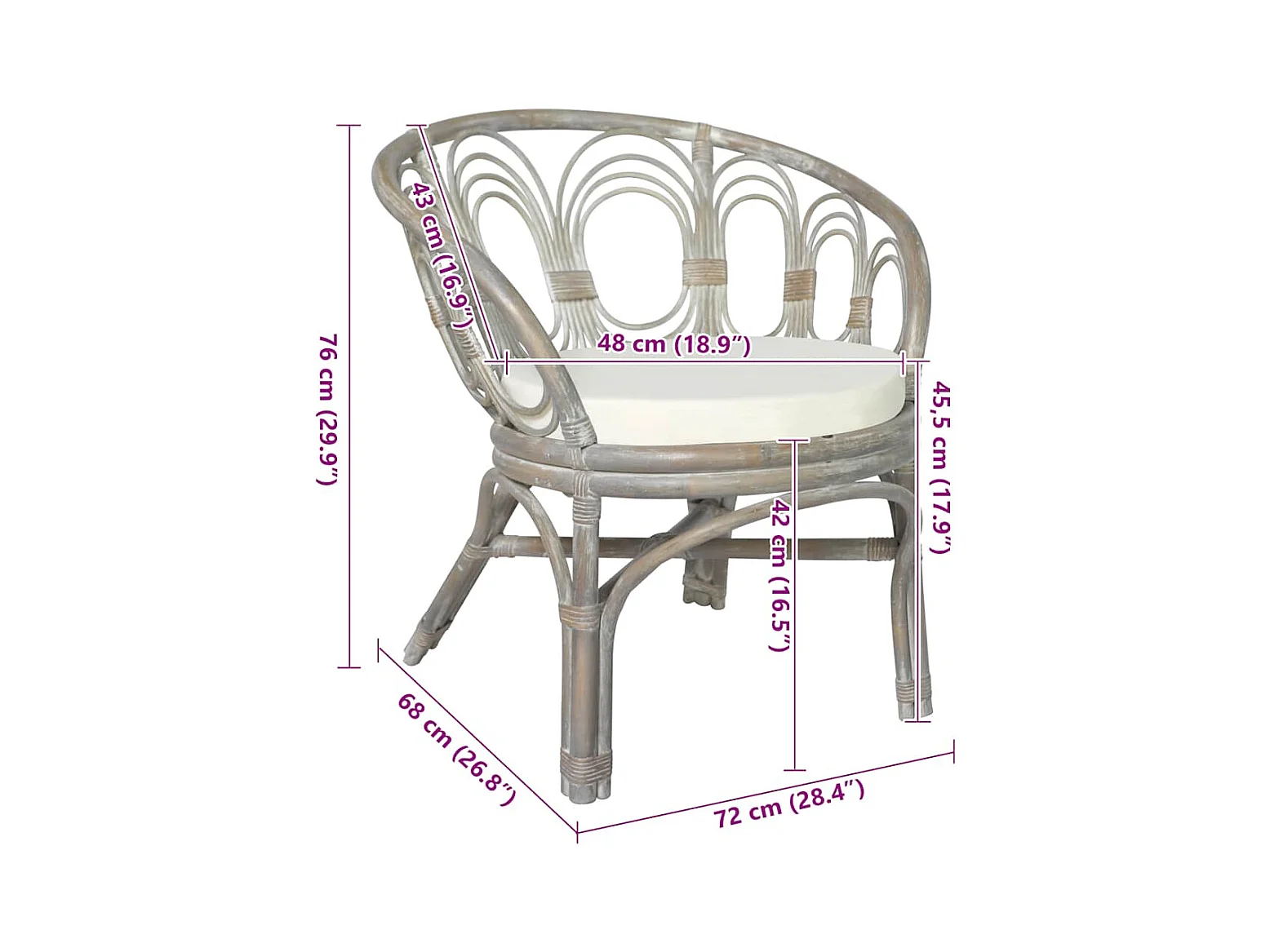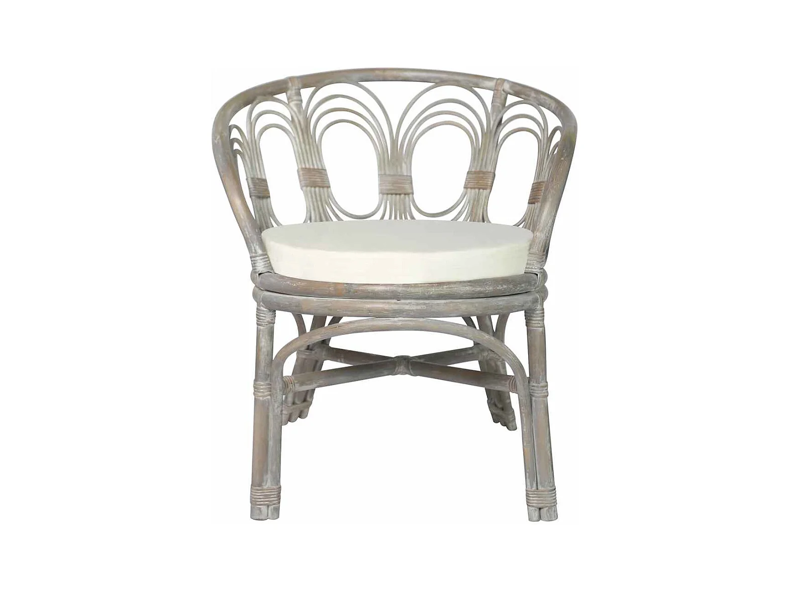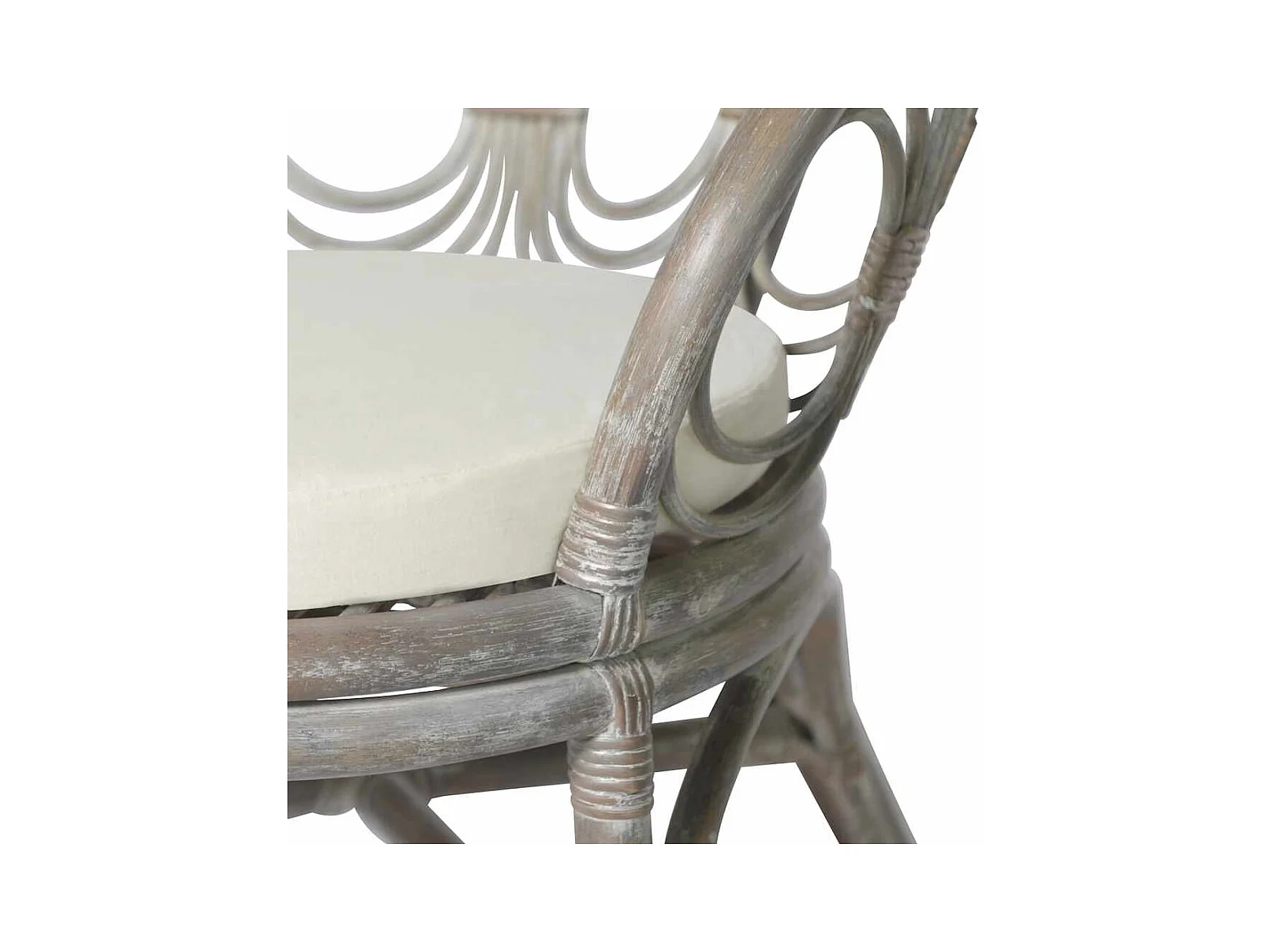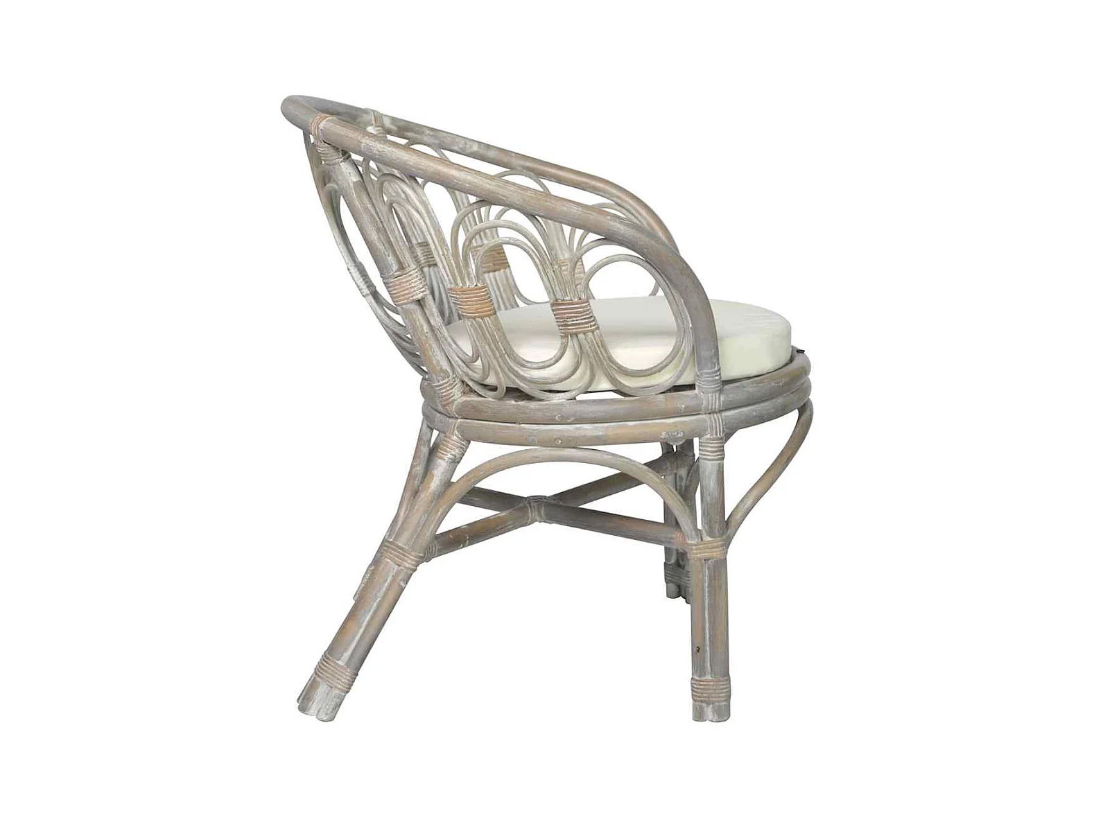 Eetkamerstoel met grijs kussen Natuurlijk rotan en linnen