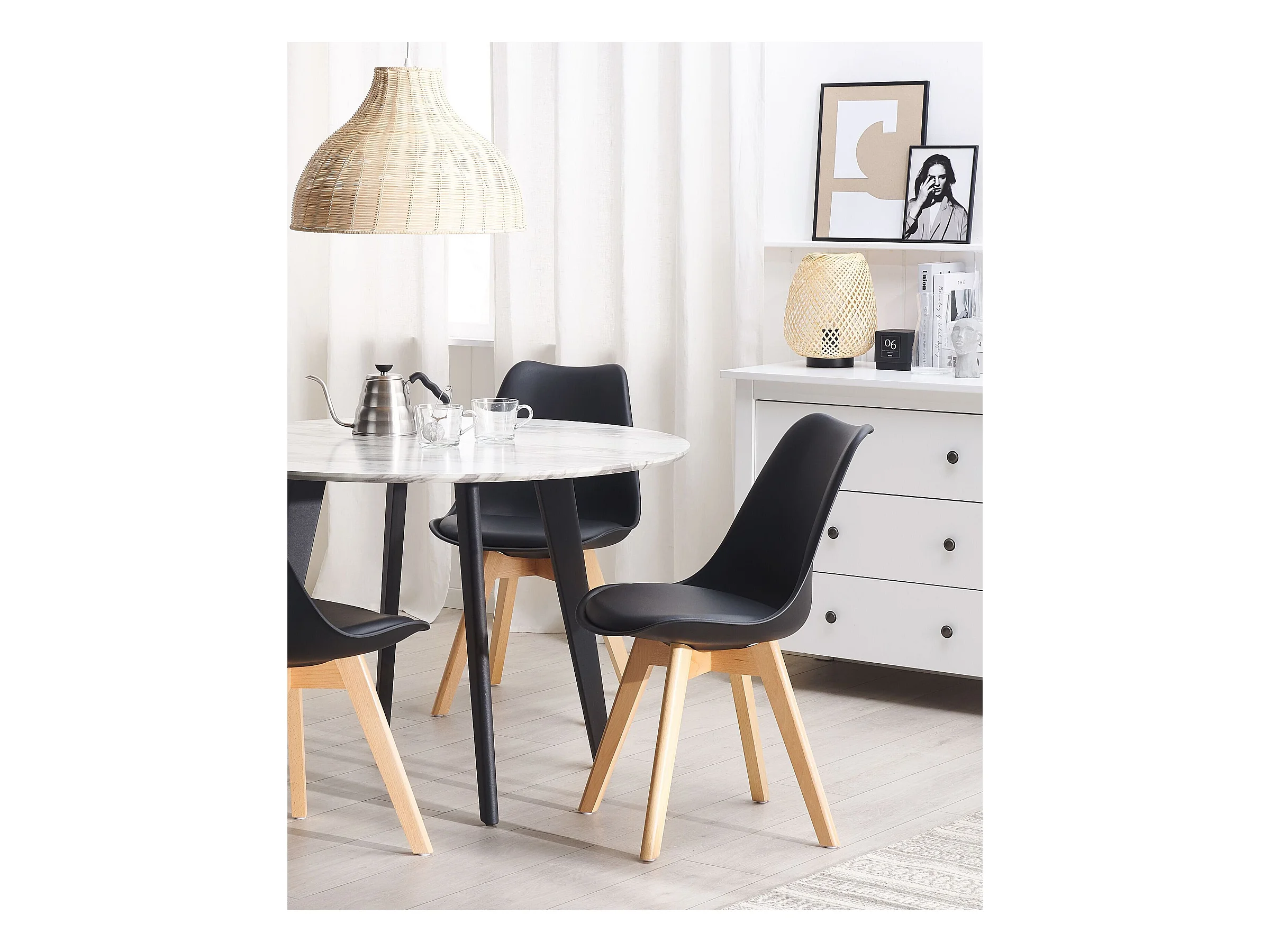 Retro ronde eettafel met natuurlijke rotan details (80cm) - North - Zwart