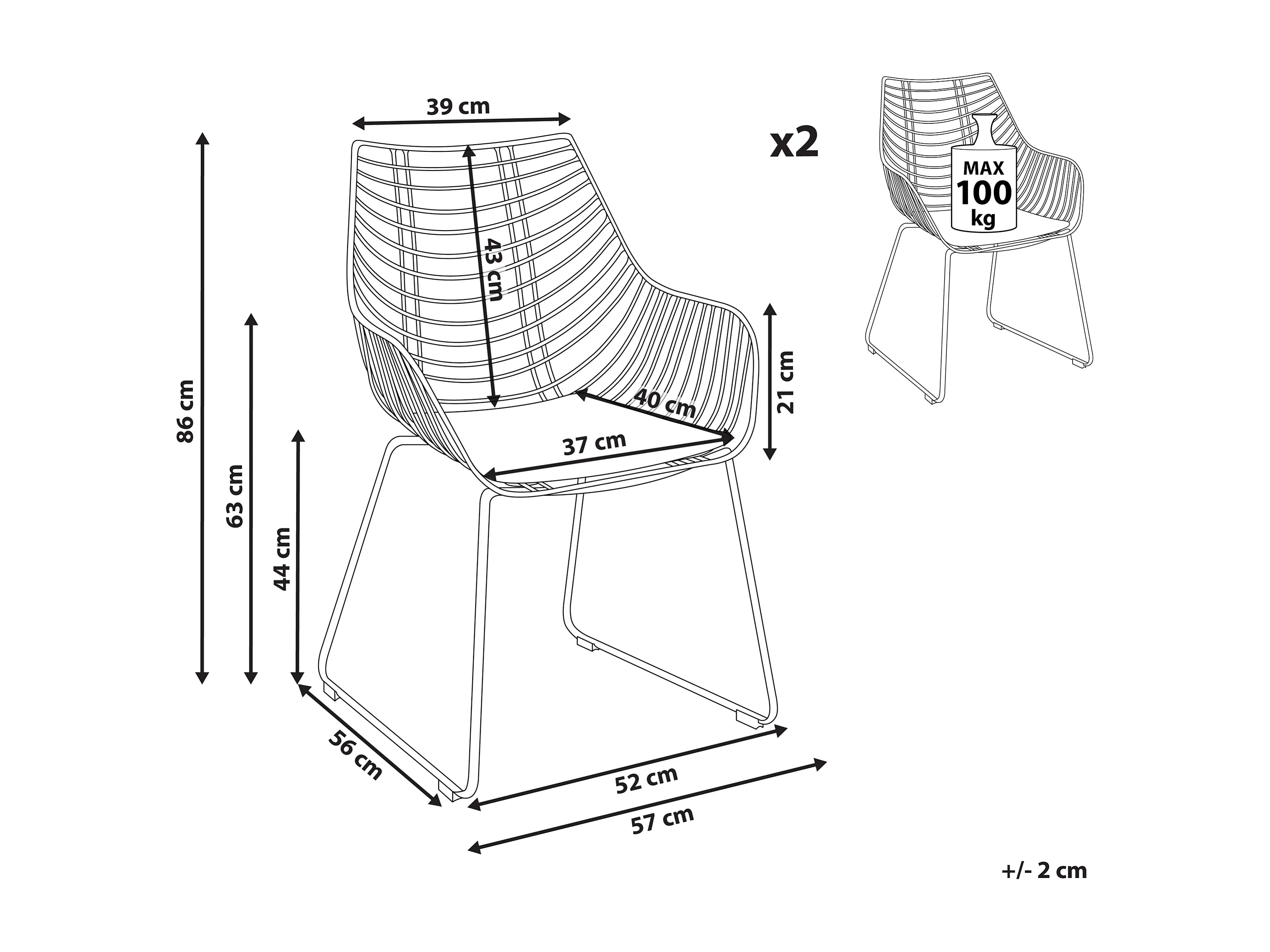 Set van 2 eetkamerstoelen ANNAPOLIS Metaal Zwart