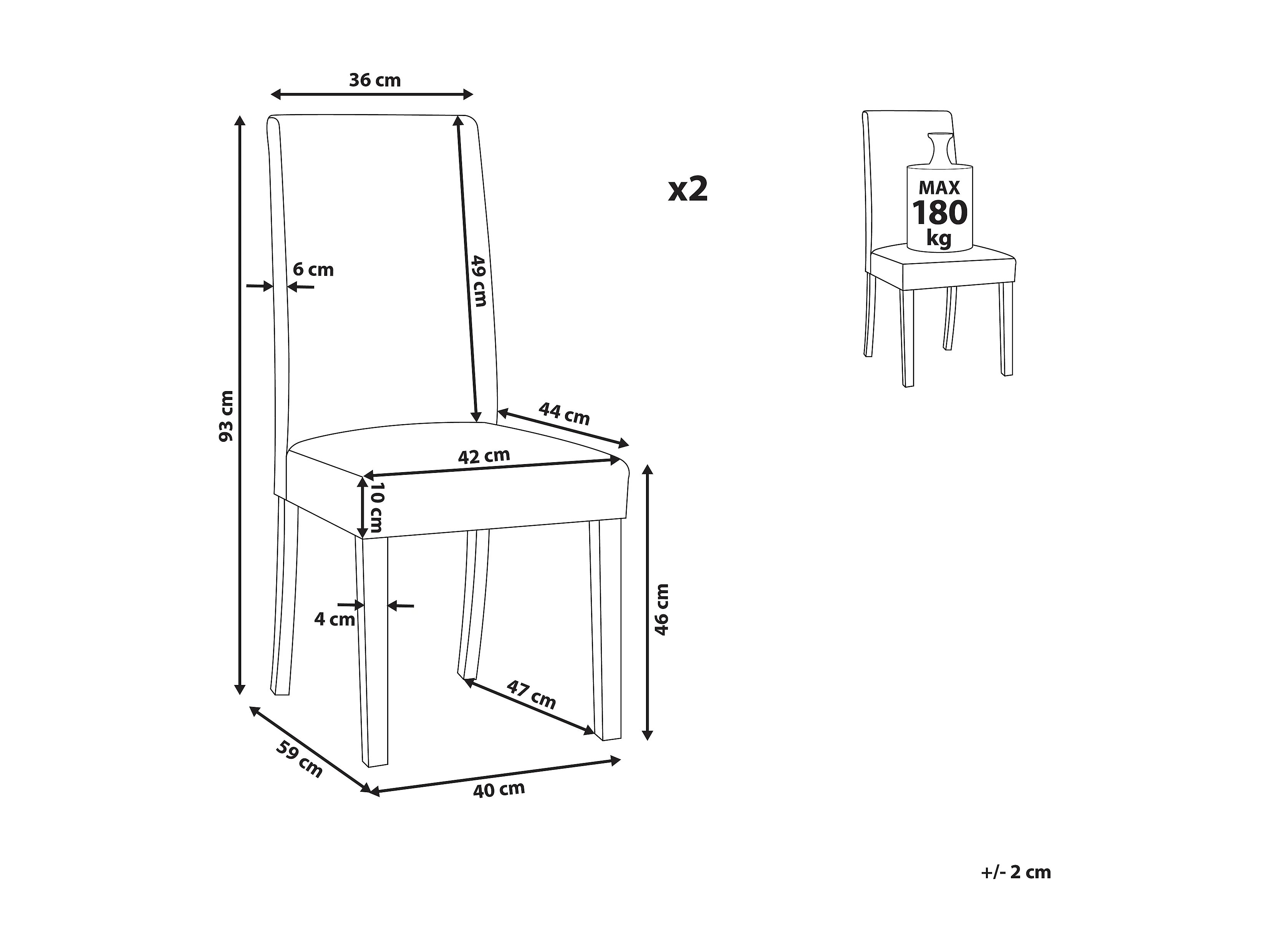 Set van 2 eetkamerstoelen BROADWAY Stof Donkergrijs