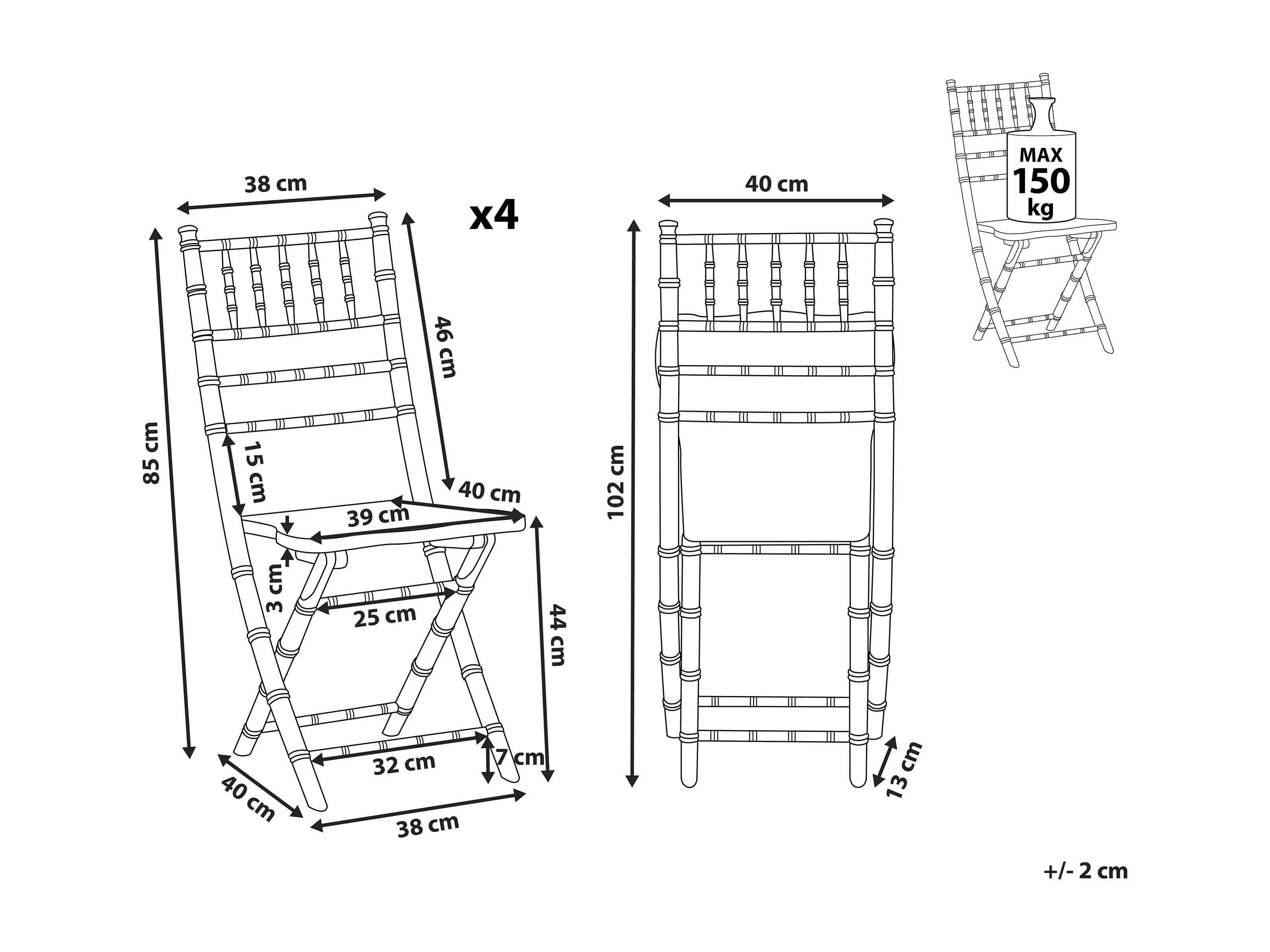 Set van 4 eetkamerstoelen MACHIAS Beukenhout Zilver