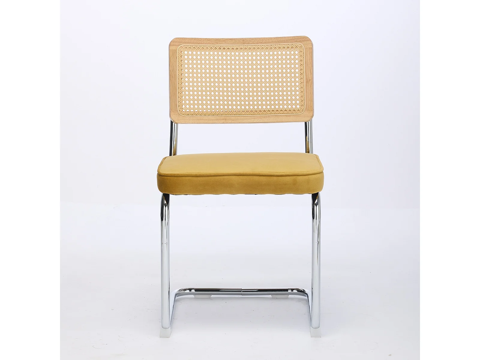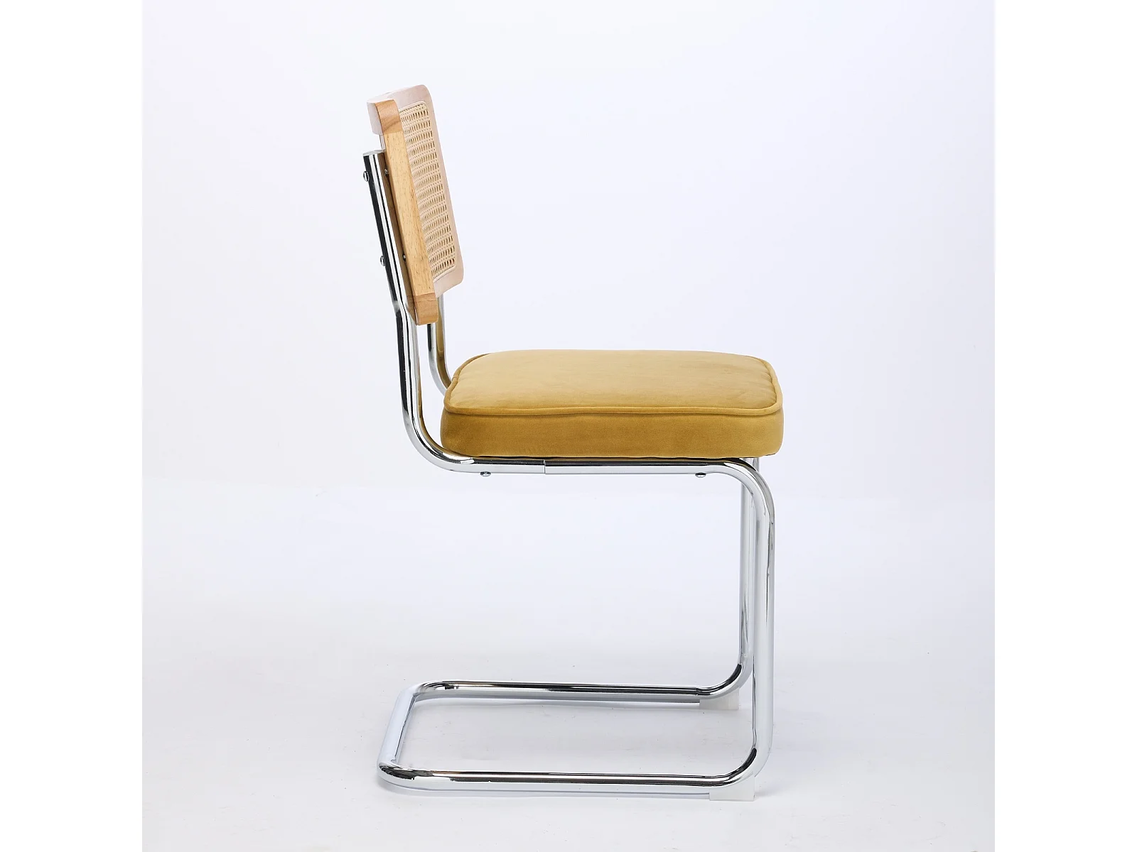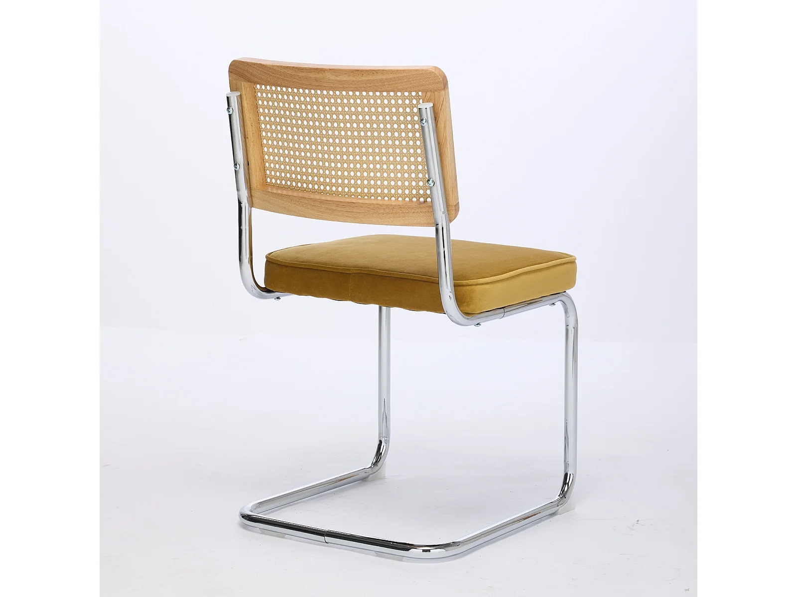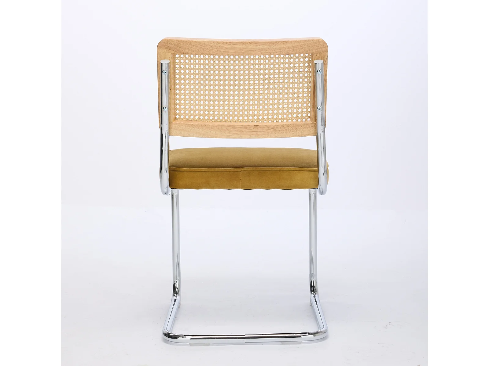 Eetkamerstoel - zwevend fluweel met gouden geweven rotan rugleuning