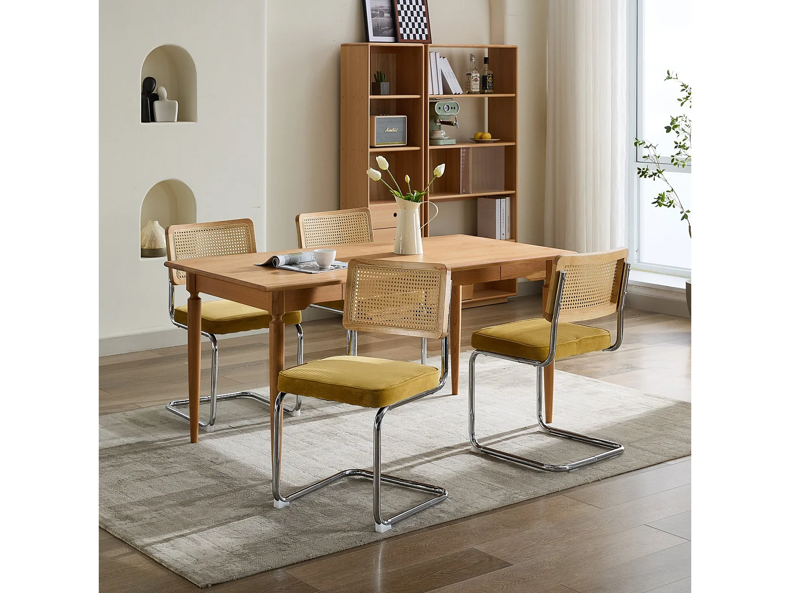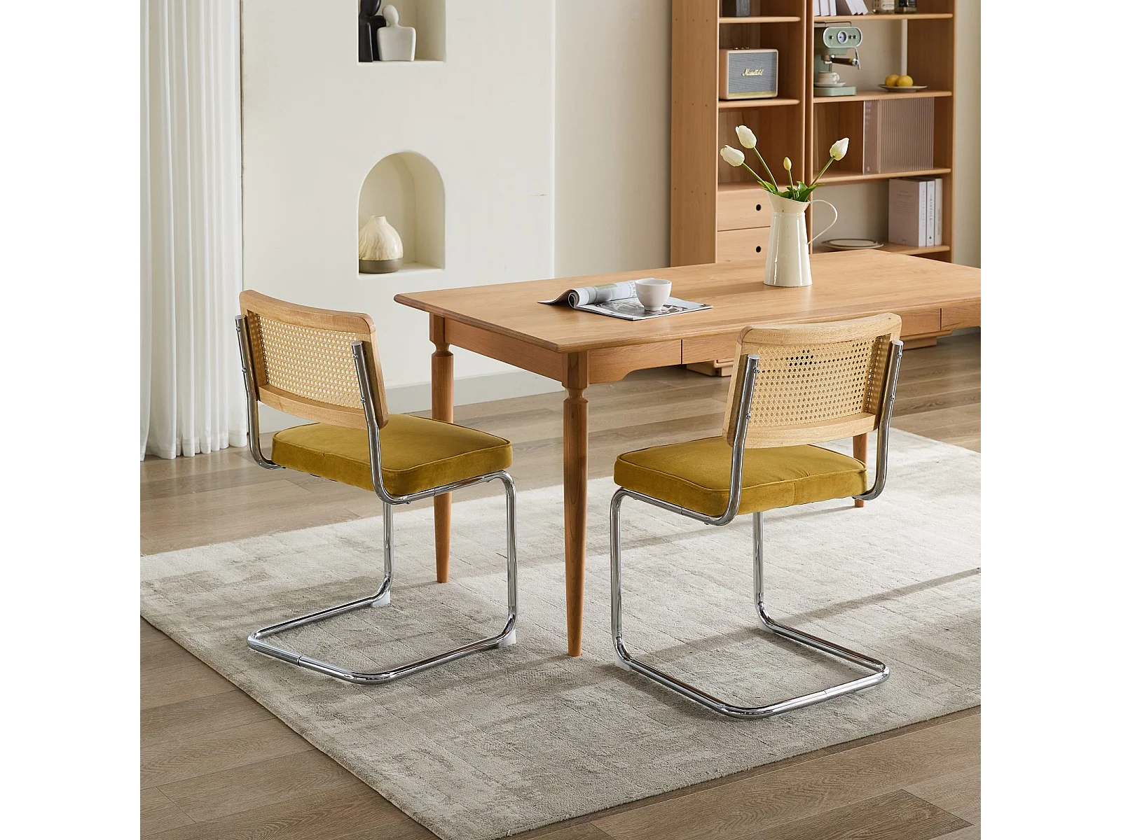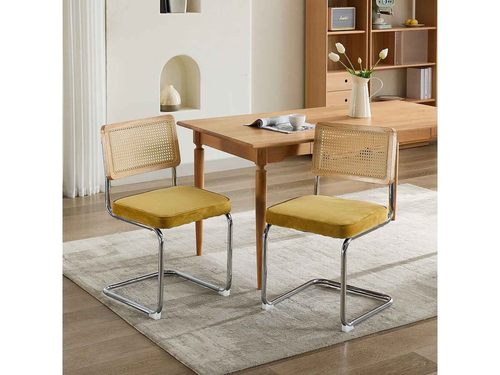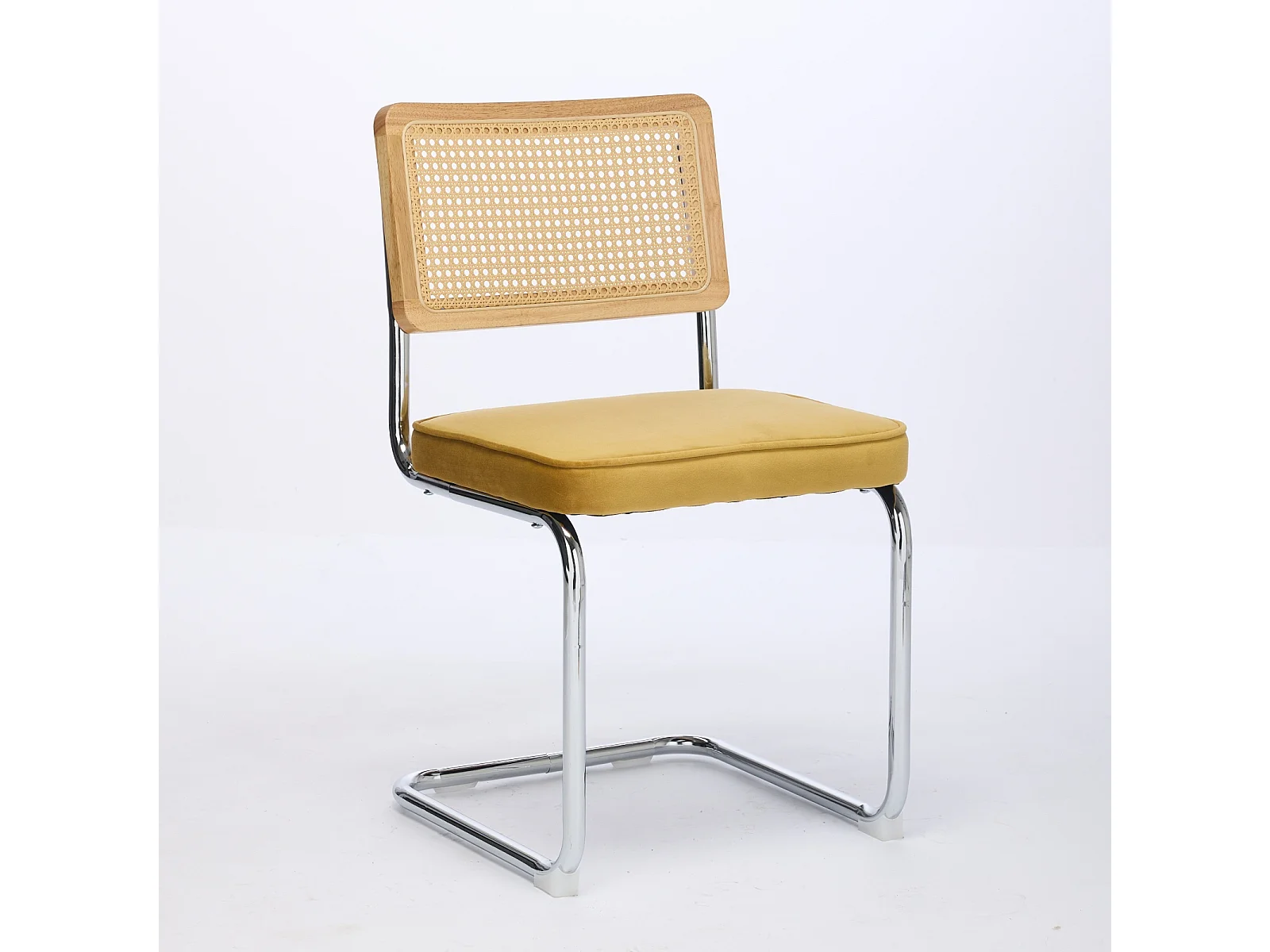 Eetkamerstoel - zwevend fluweel met gouden geweven rotan rugleuning