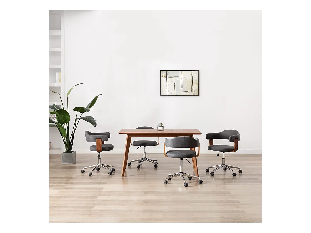 Eetkamerstoelen 4 st draaibaar gebogen hout en stof grijs