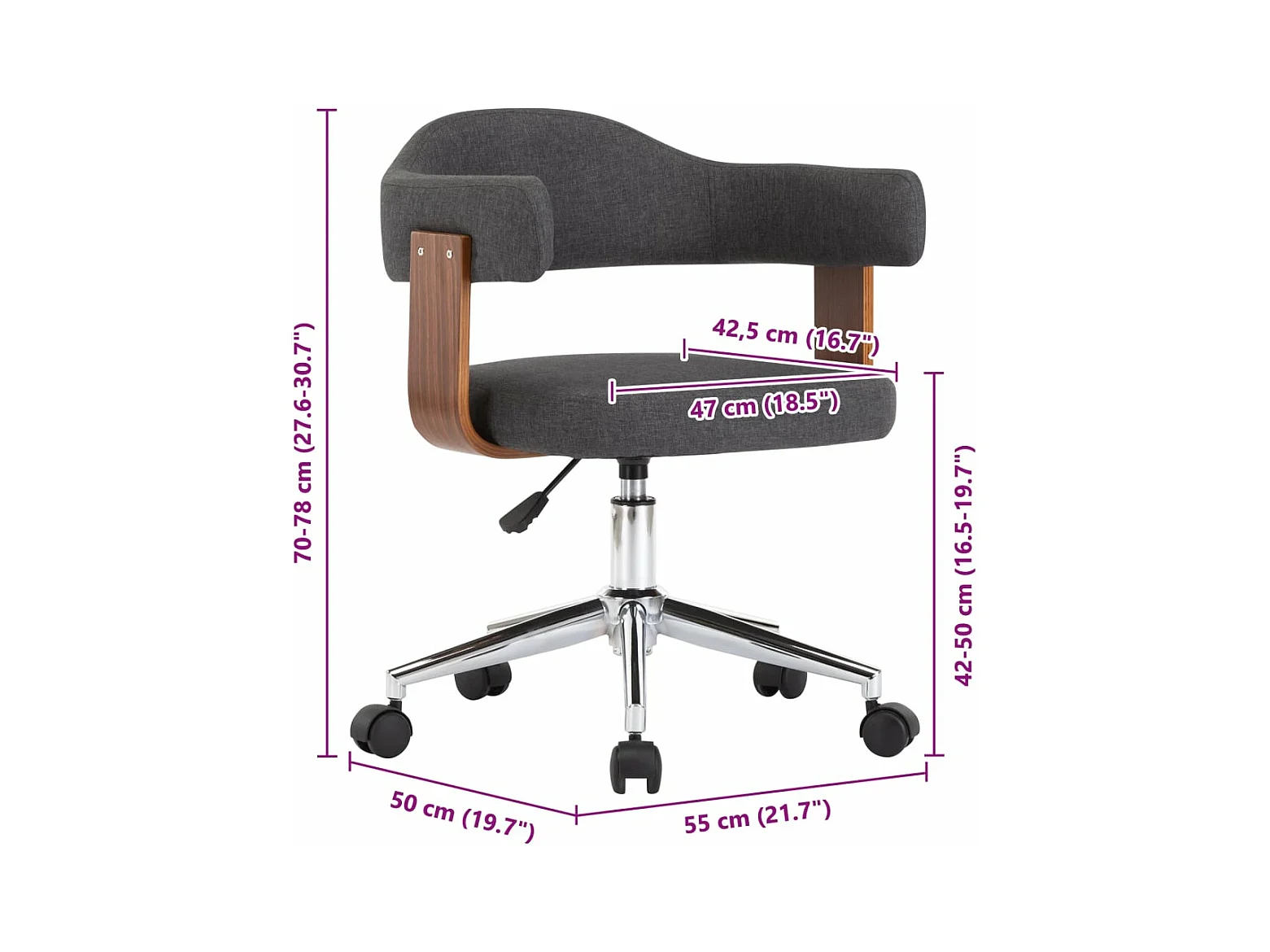 Eetkamerstoelen 2 st draaibaar gebogen hout en stof grijs