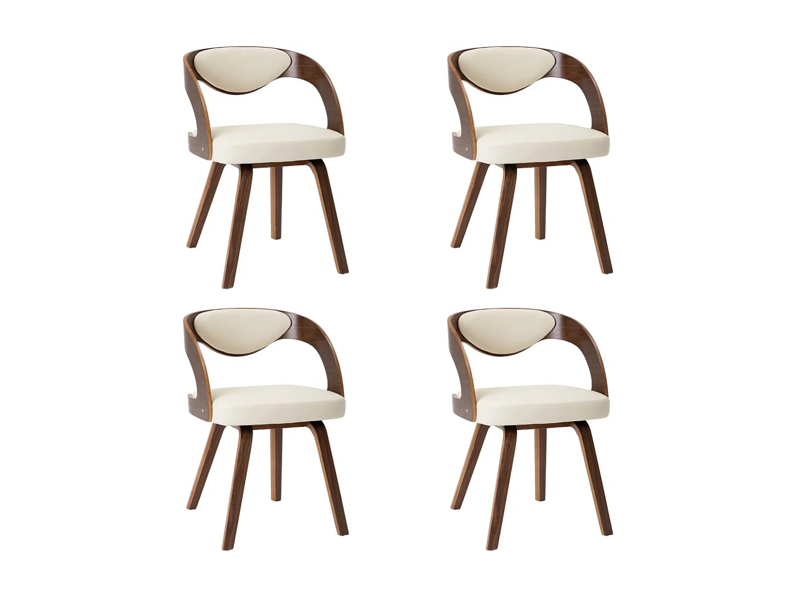 Eetkamerstoelen 4 st gebogen hout en kunstleer crèmekleurig